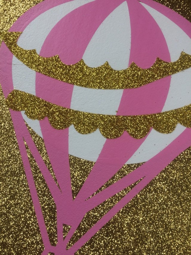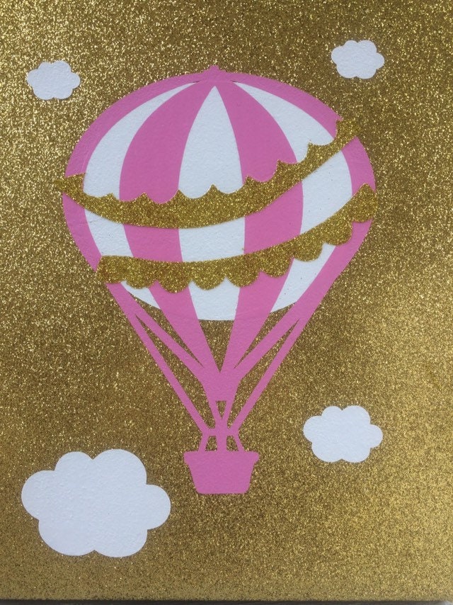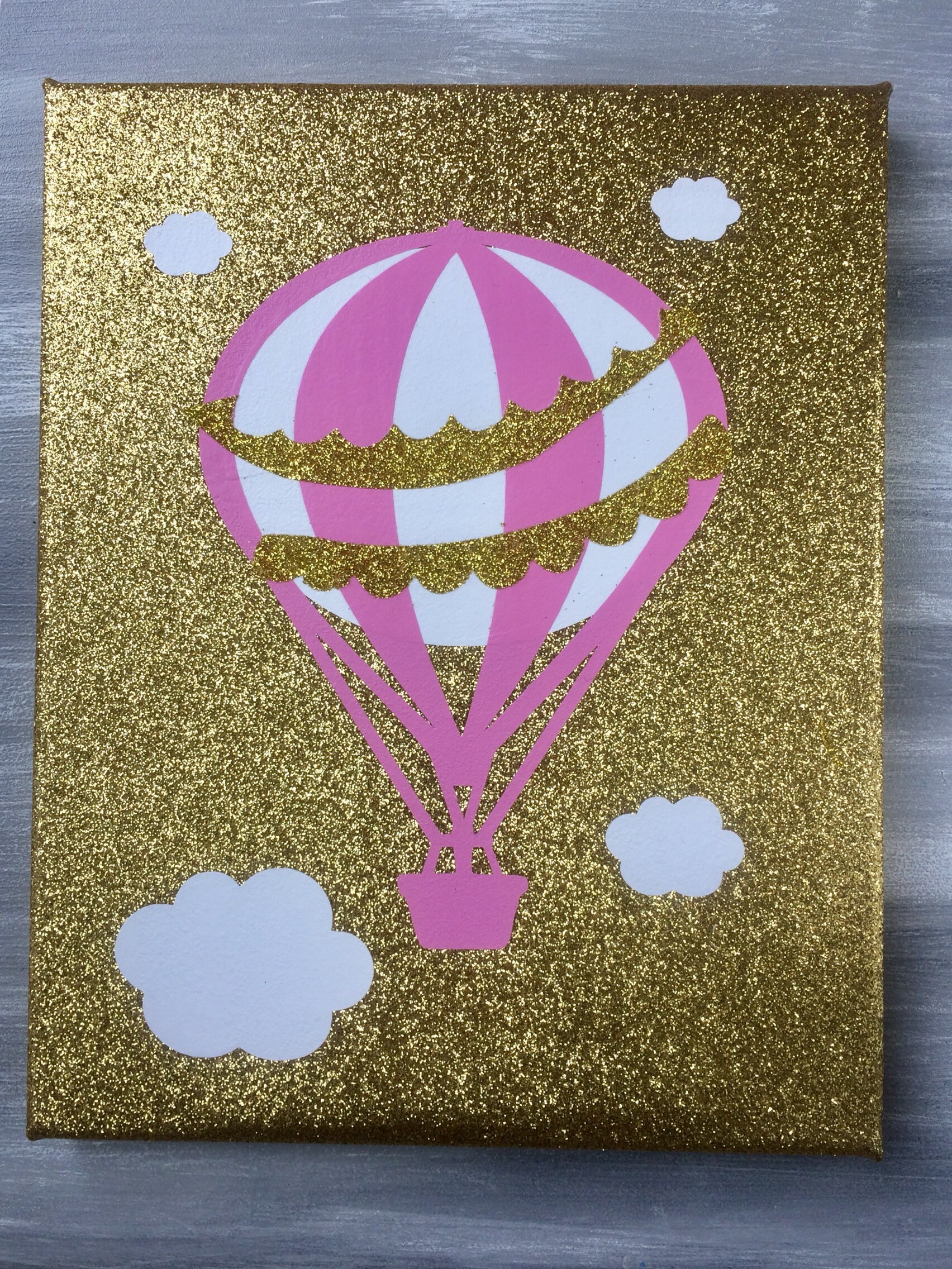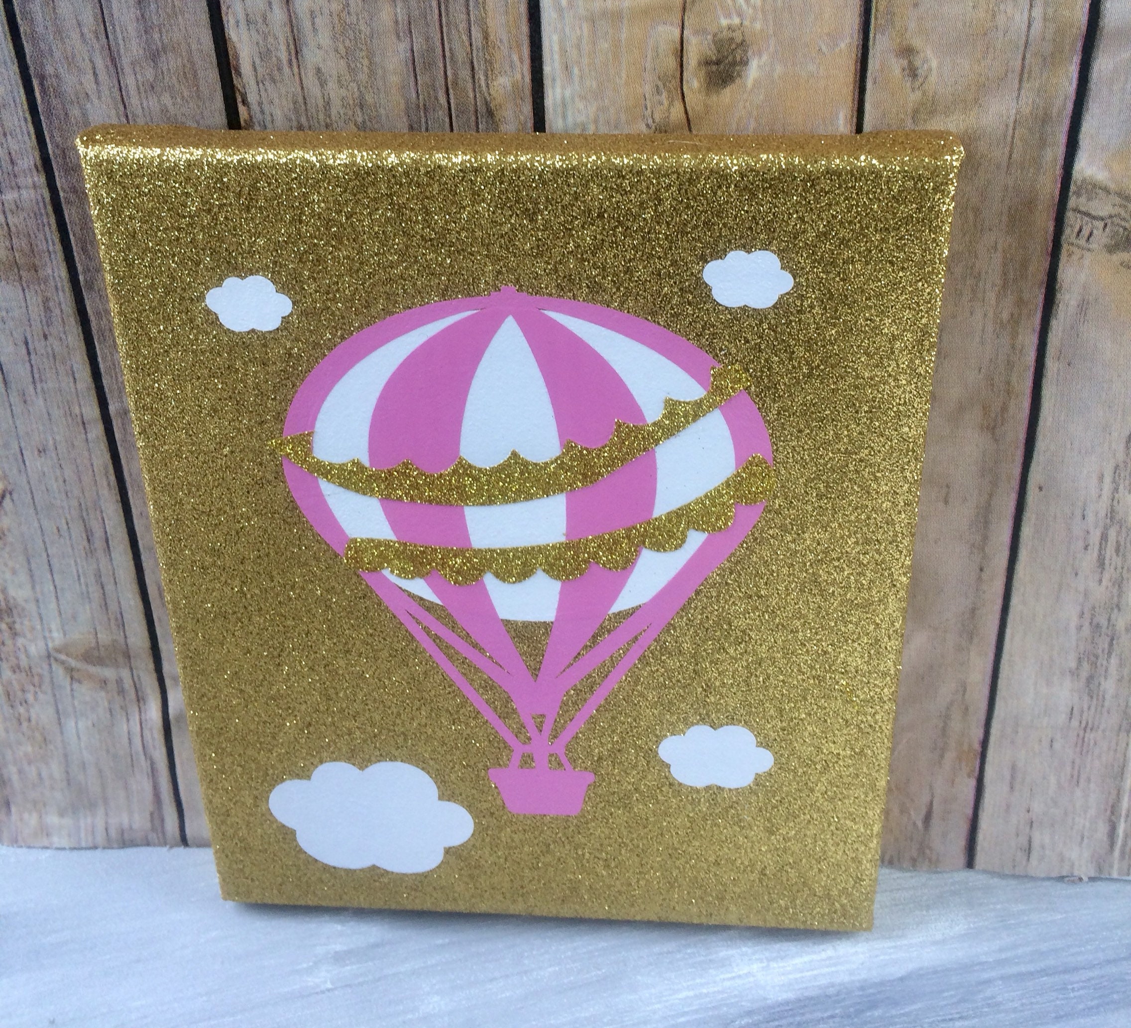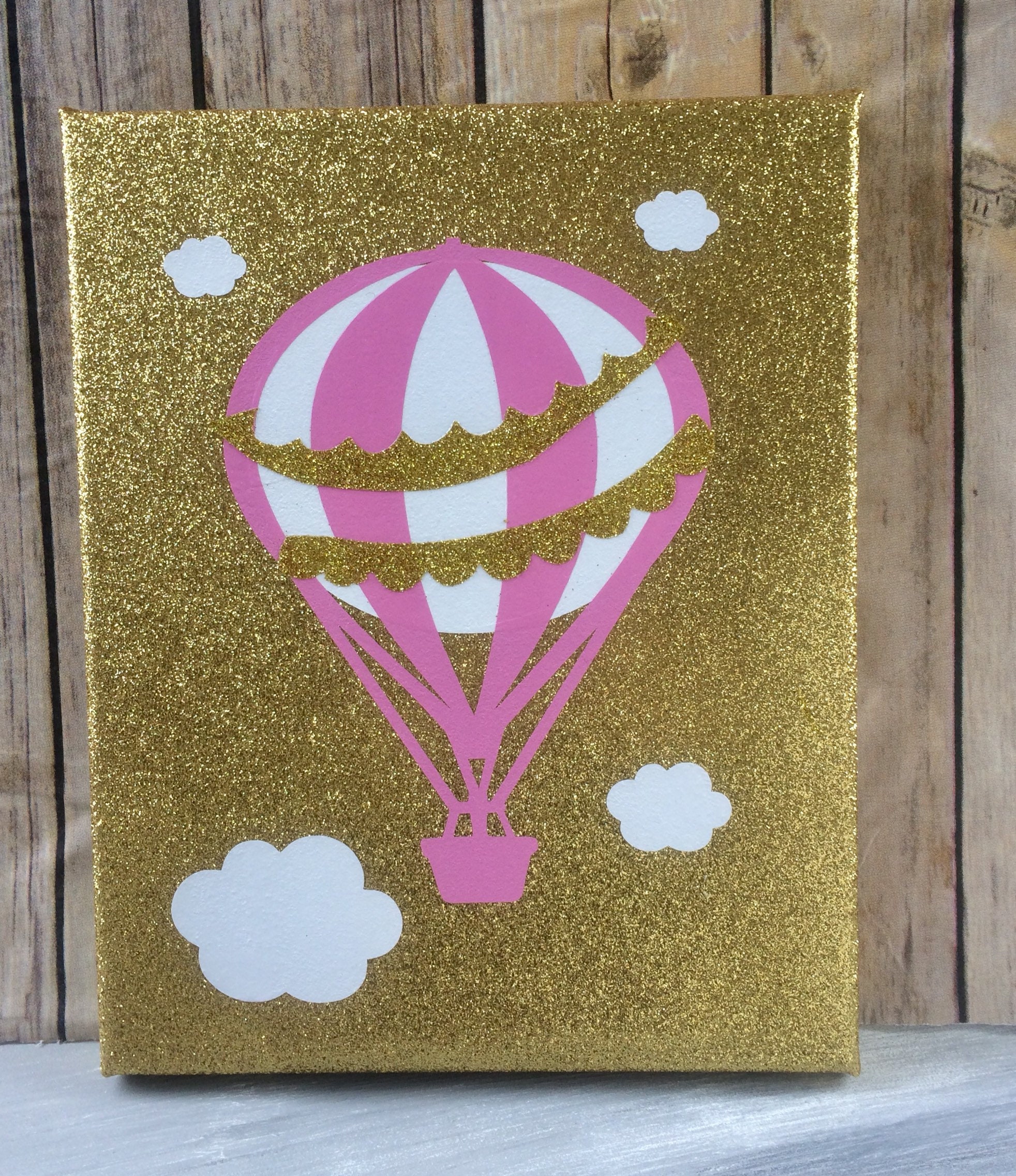 Hot Air Balloon Decor, Hot Air Balloon Canvas, Glitter Canvas, Girls Room Nursery Decor, Wall Art, Canvas Wall Decor, Pink & Gold Decor