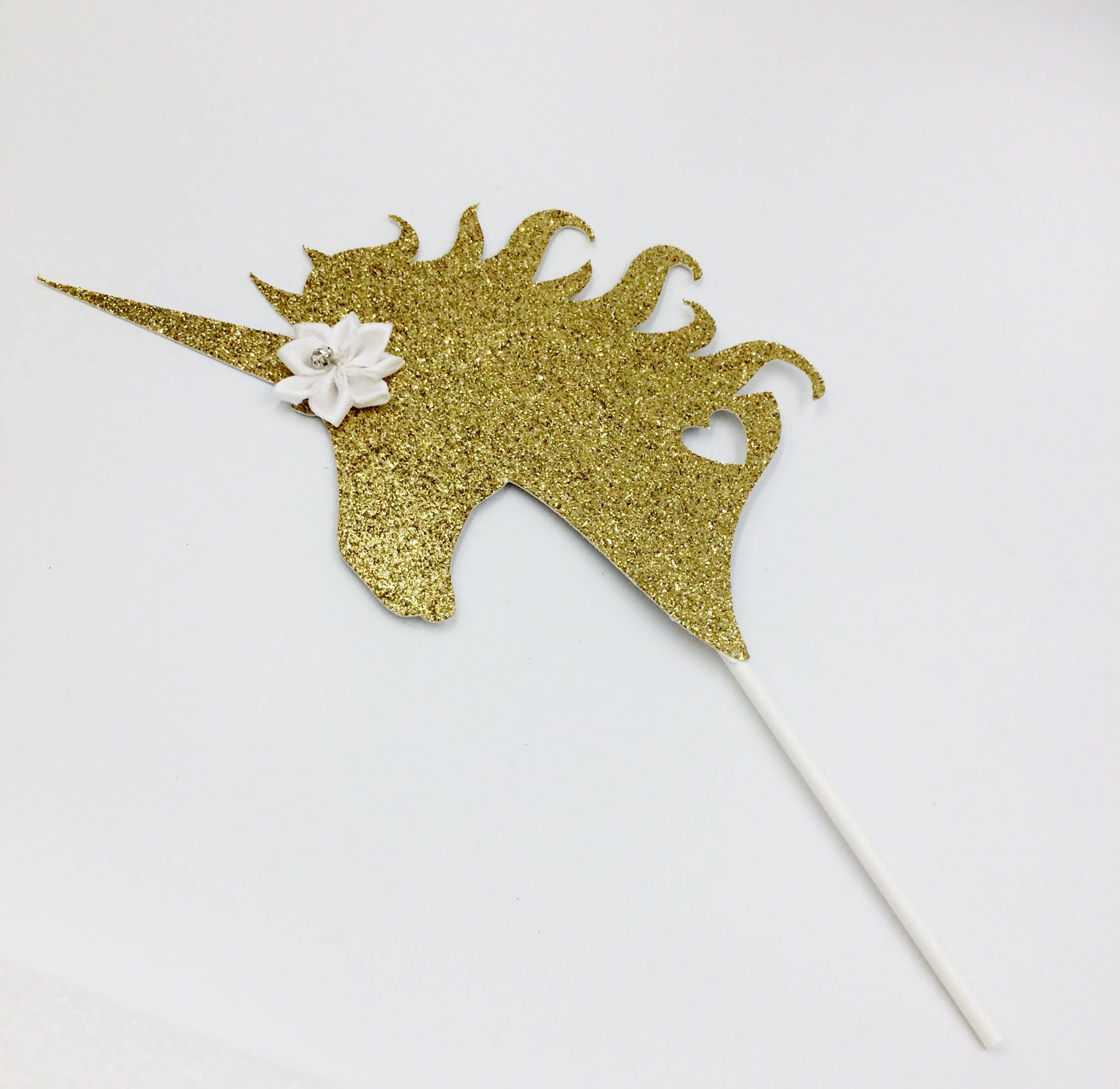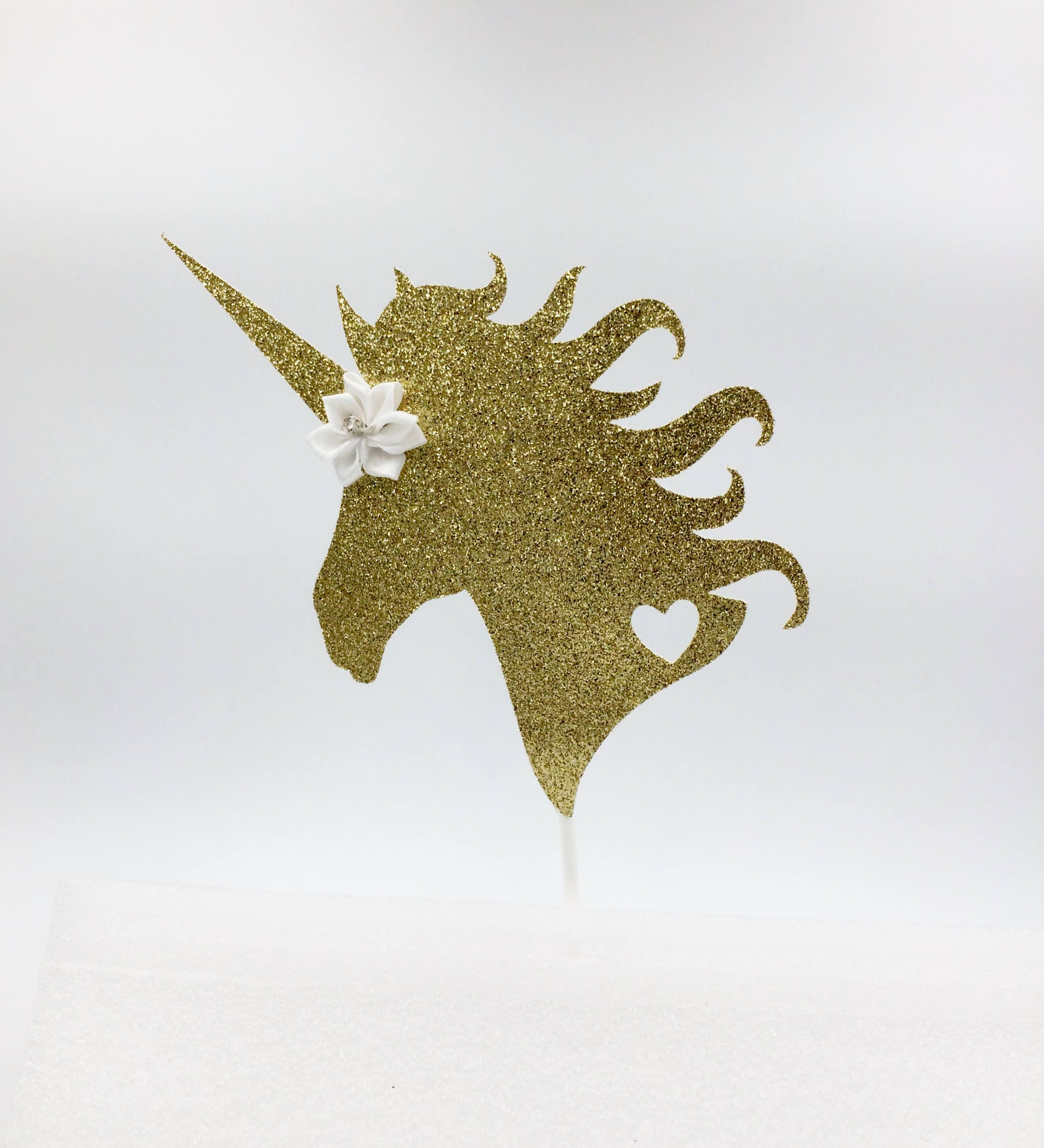 Unicorn Head Cake Topper, Gold & White Cake Topper, Glitter Cake Topper, Party Decorations, Birthday Cake Topper, Gold Unicorn,