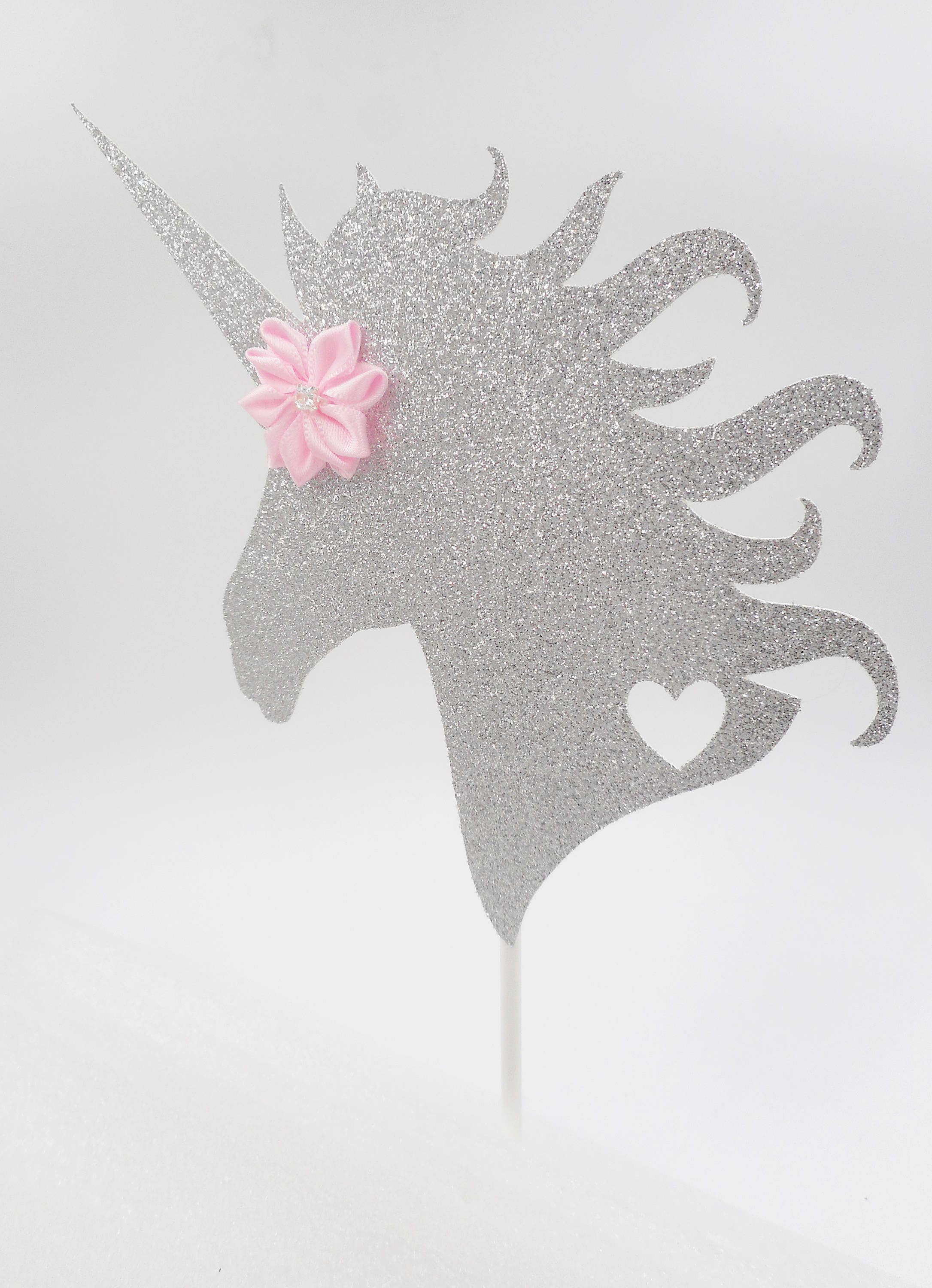 Unicorn Head Cake Topper, Silver & Pink Cake Topper, Glitter Cake Topper, Party Decorations, Birthday Cake Topper, Silver Unicorn, Unicorns