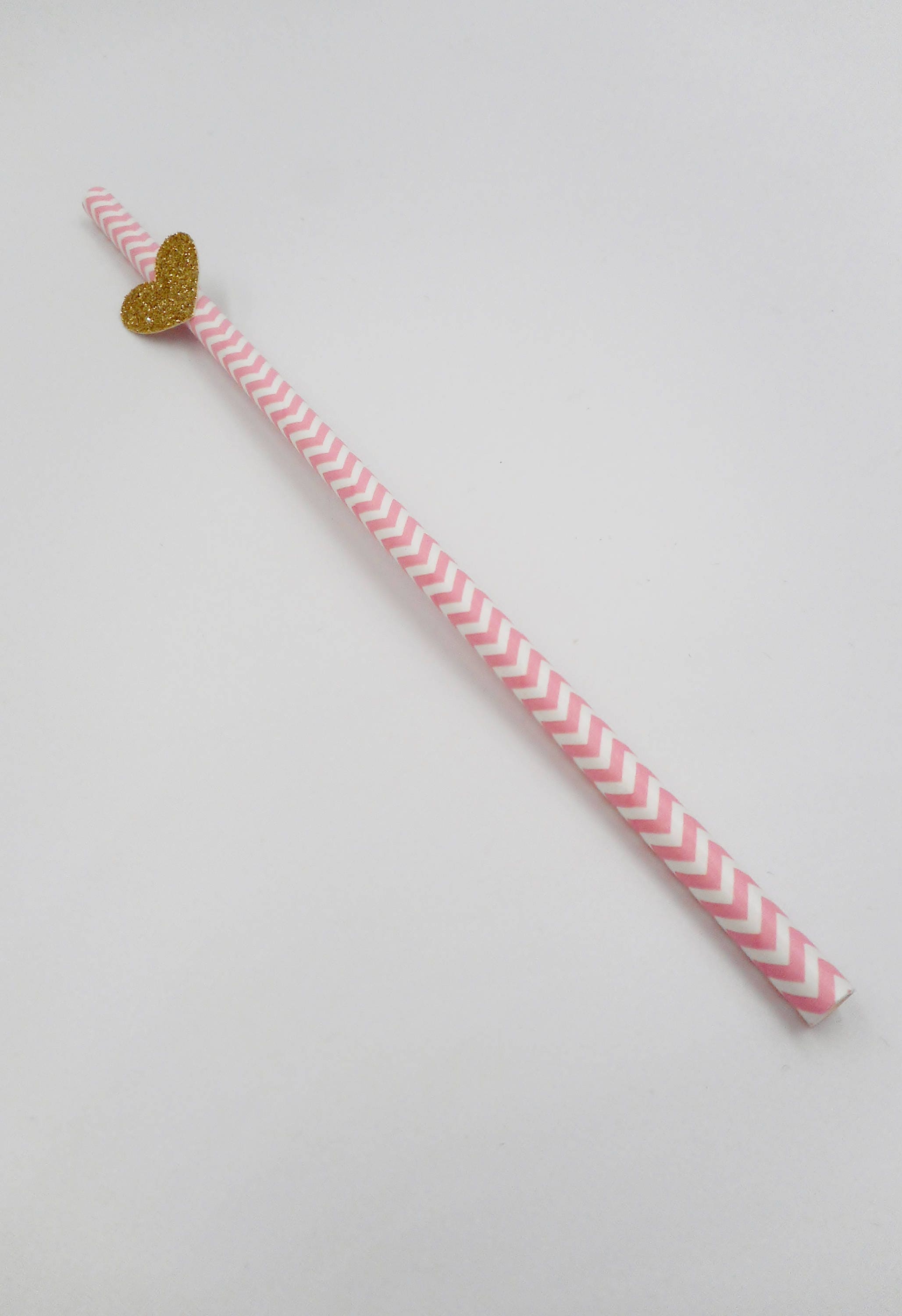 Gold and Pink, Gold Glitter Heart Party Straw, Heart Straws, Bridal Shower, Baby Shower, Party Straws, Party Supplies, Heart Birthday Theme