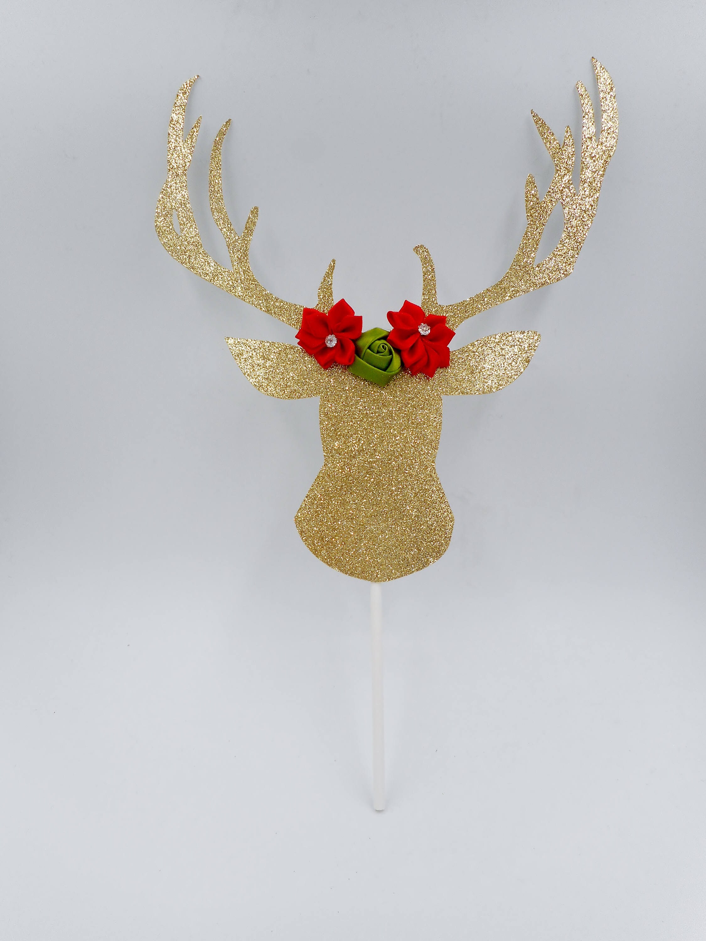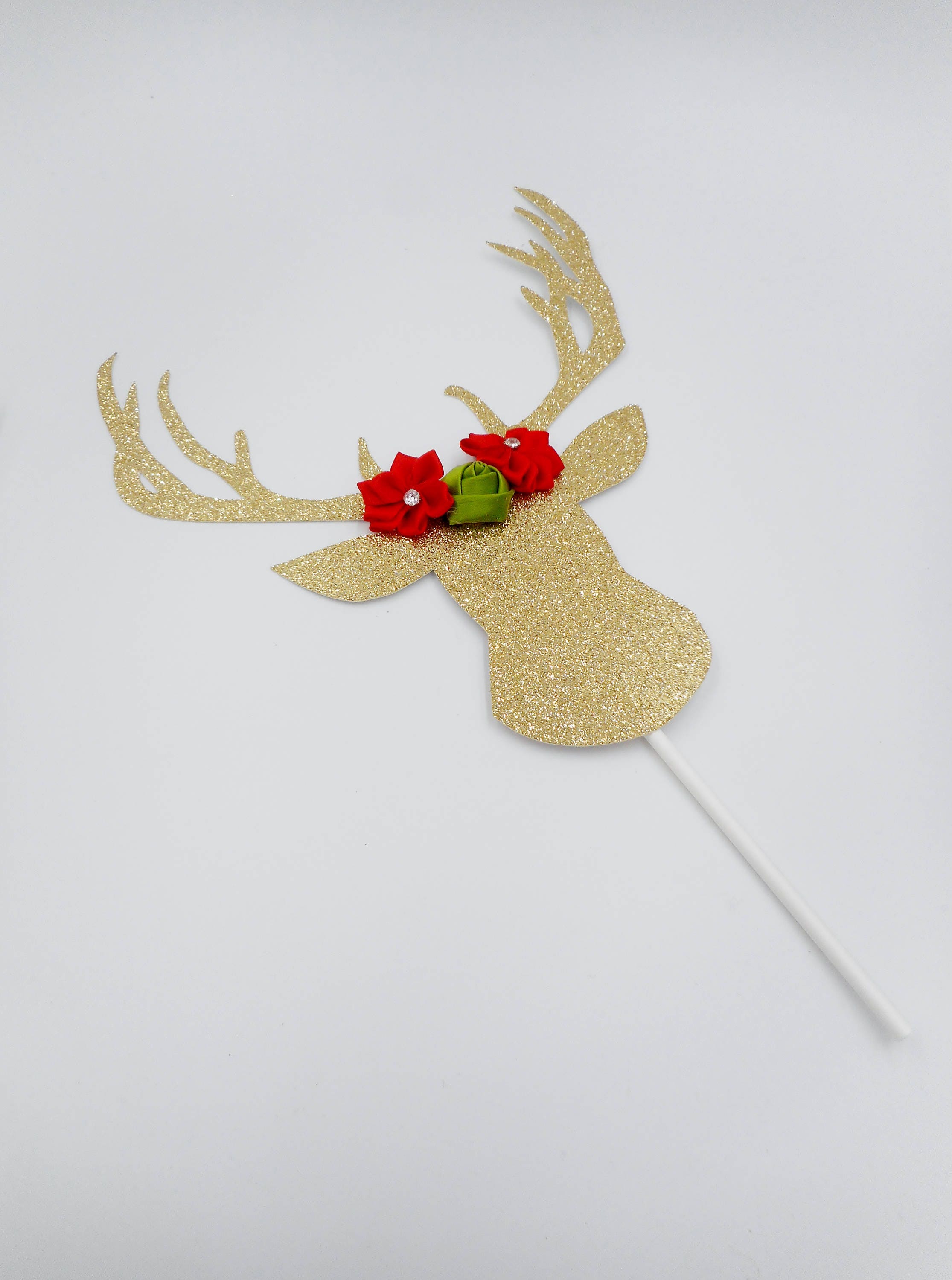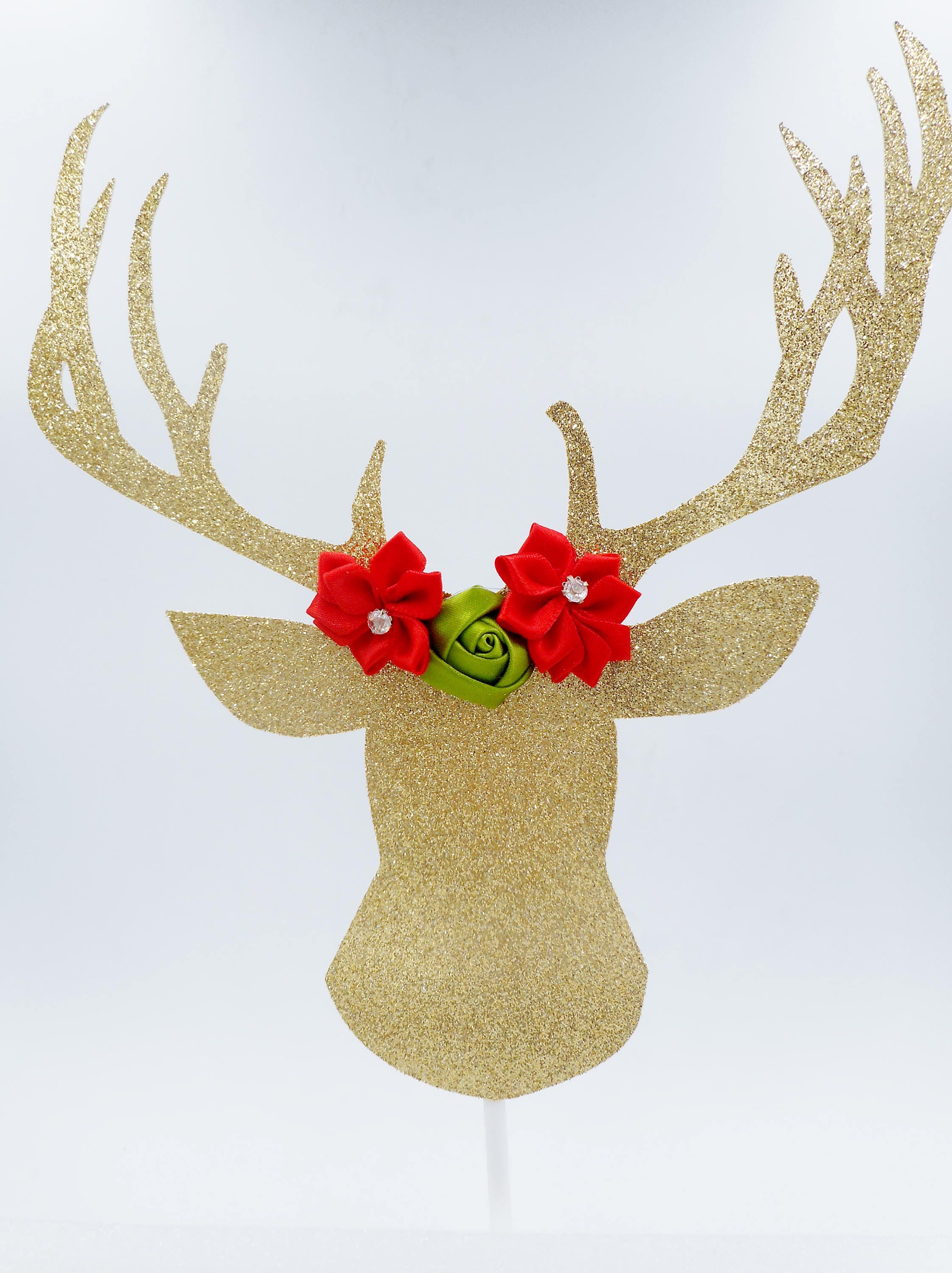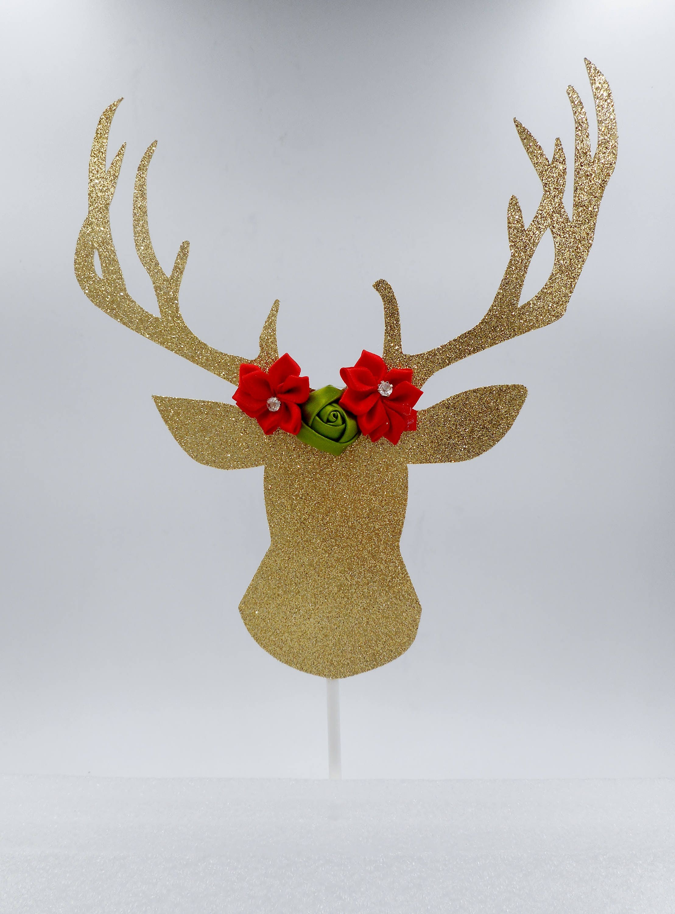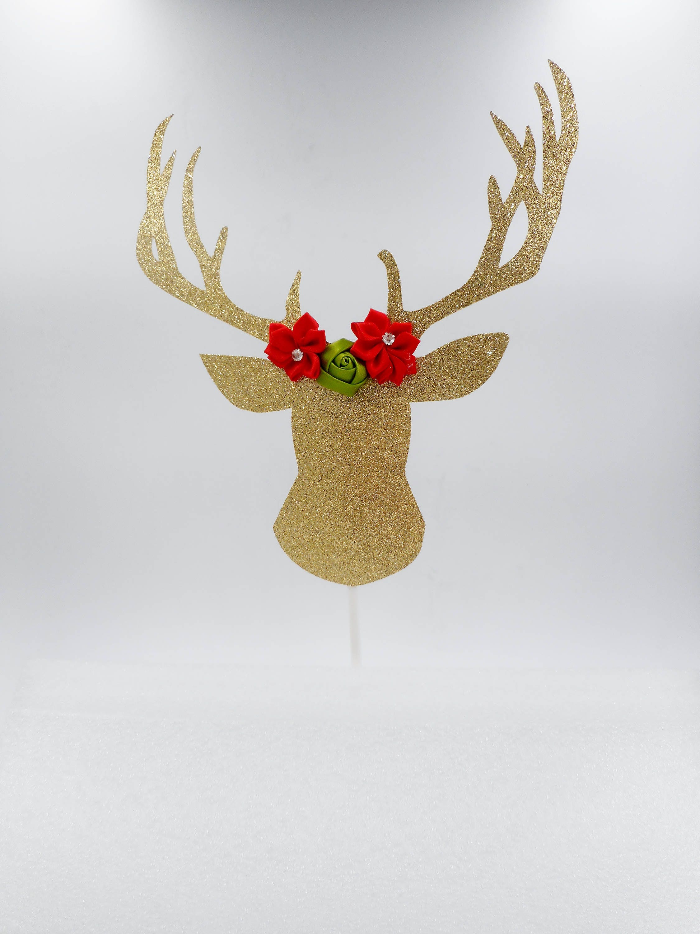 Christmas Cake Topper, Gold Deer Cake Topper, Glitter Cake Topper, Christmas Decorations, Deer Cake Topper, Boho Christmas, Christmas Decor