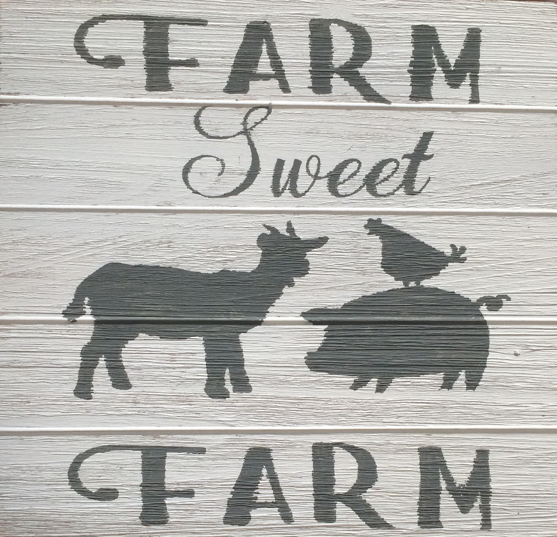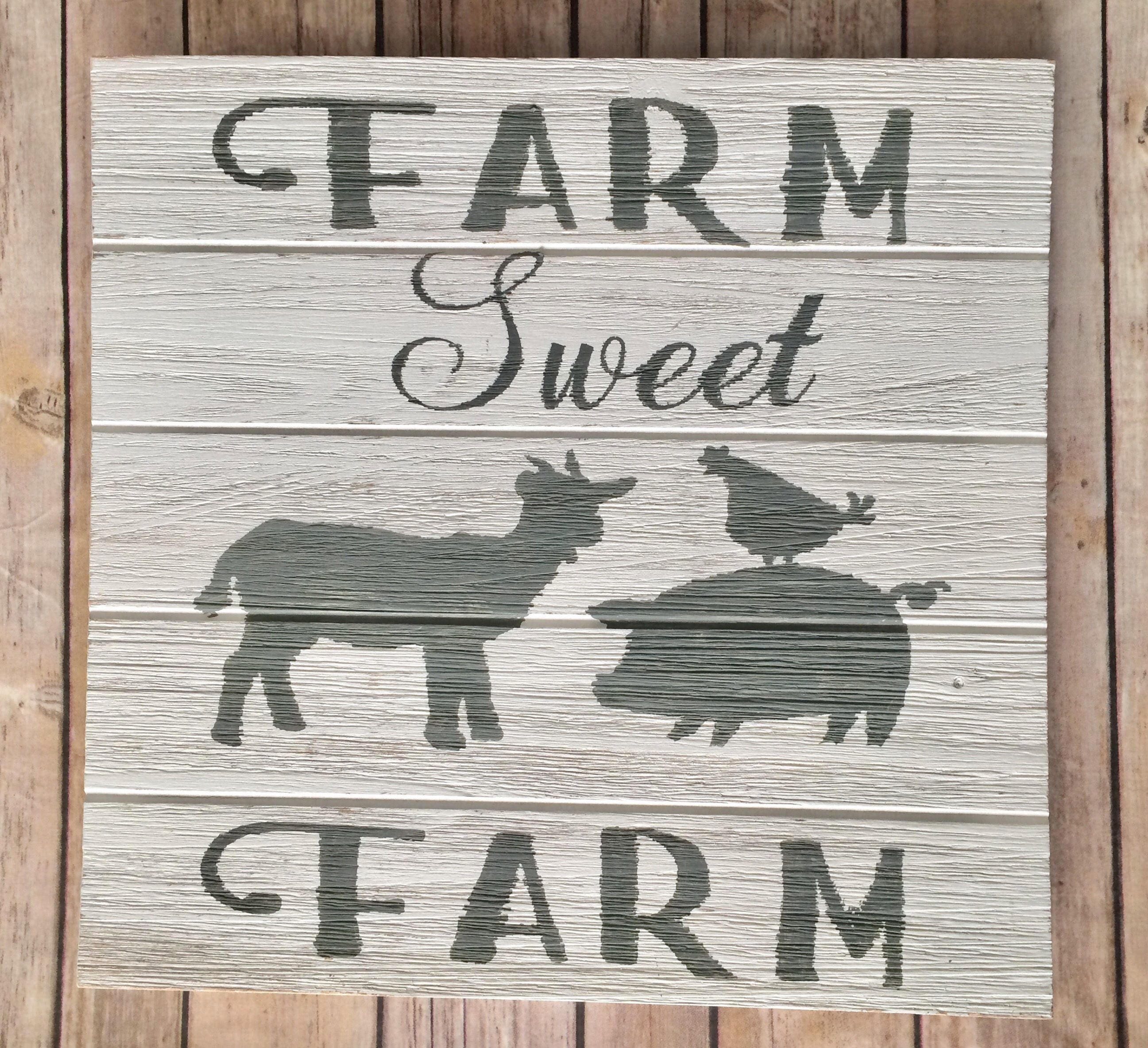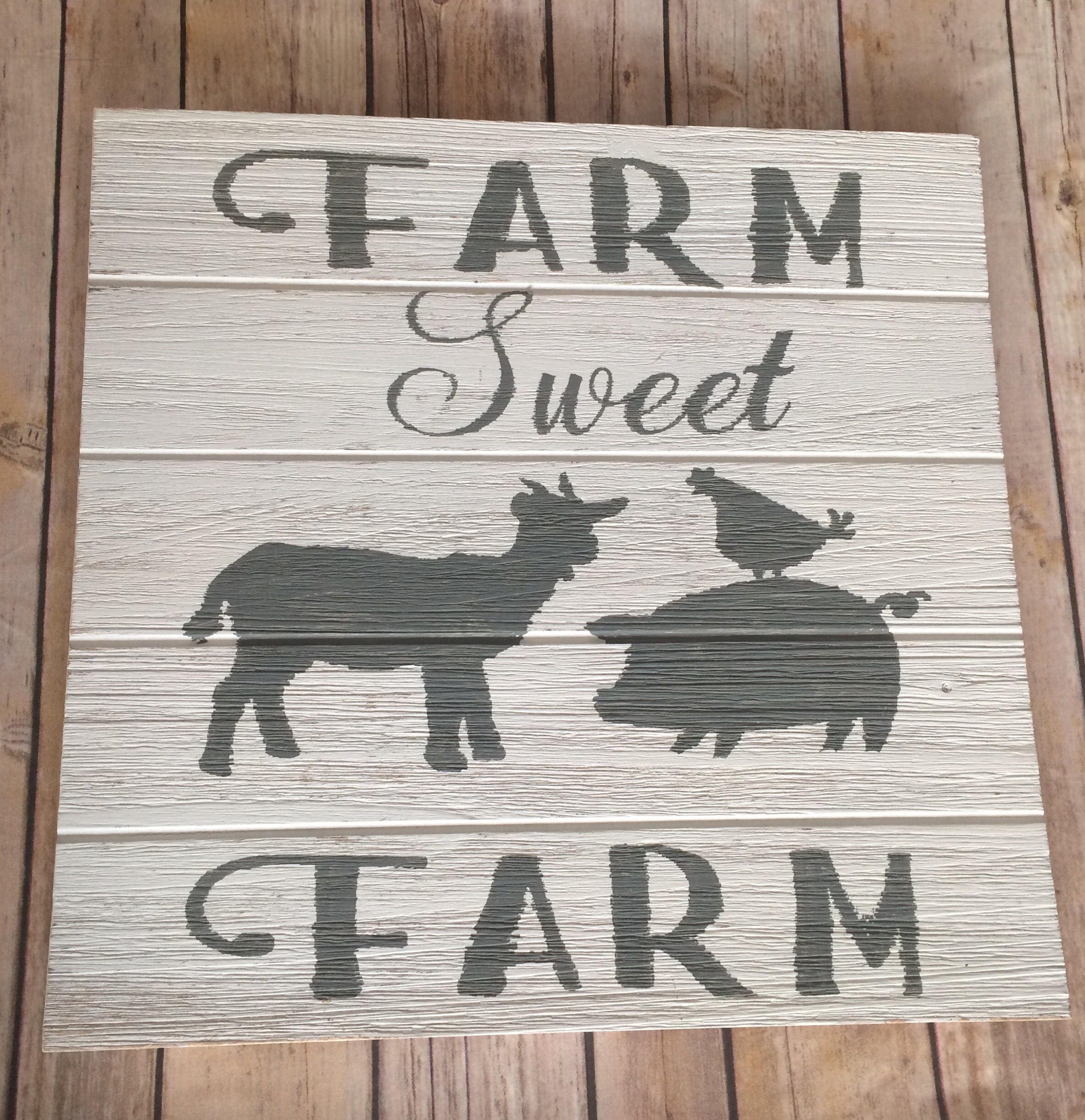 Farm Sweet Farm Wood Sign, Farmhouse Wall Decor, Farm Sign, Country Decor, Rooster Decor, Pallet Wood Sign, Farm Decor, 14"x14"