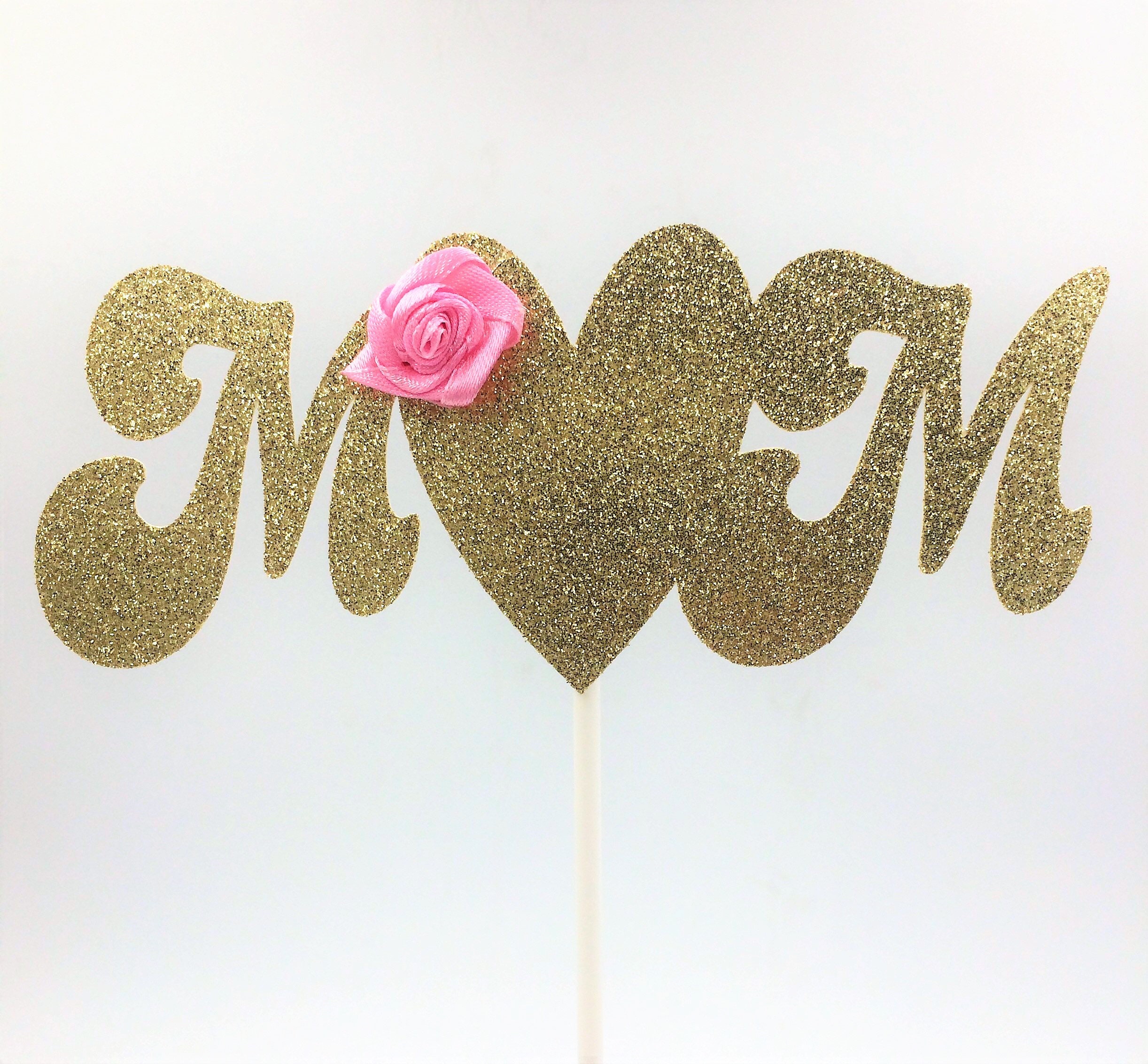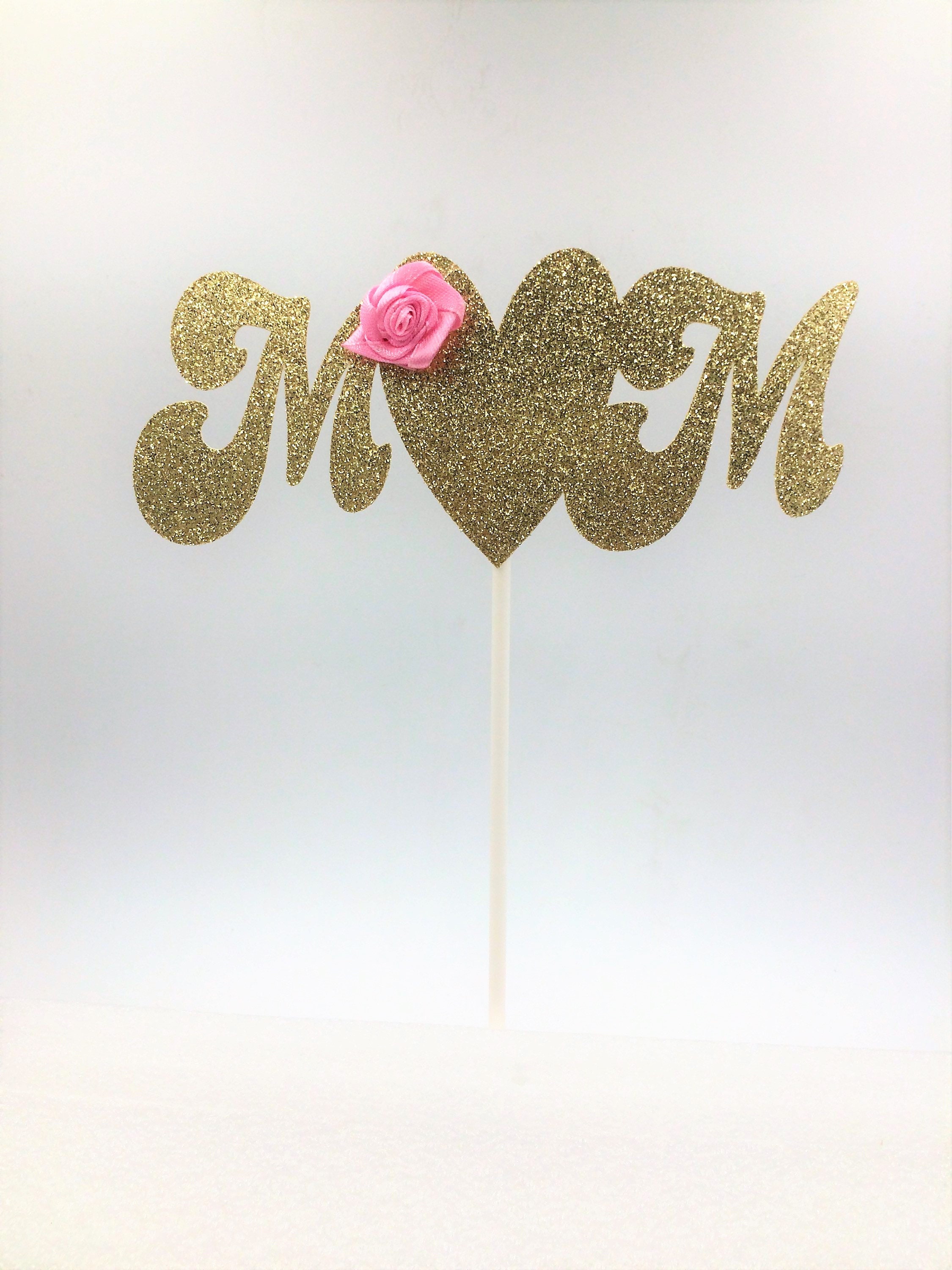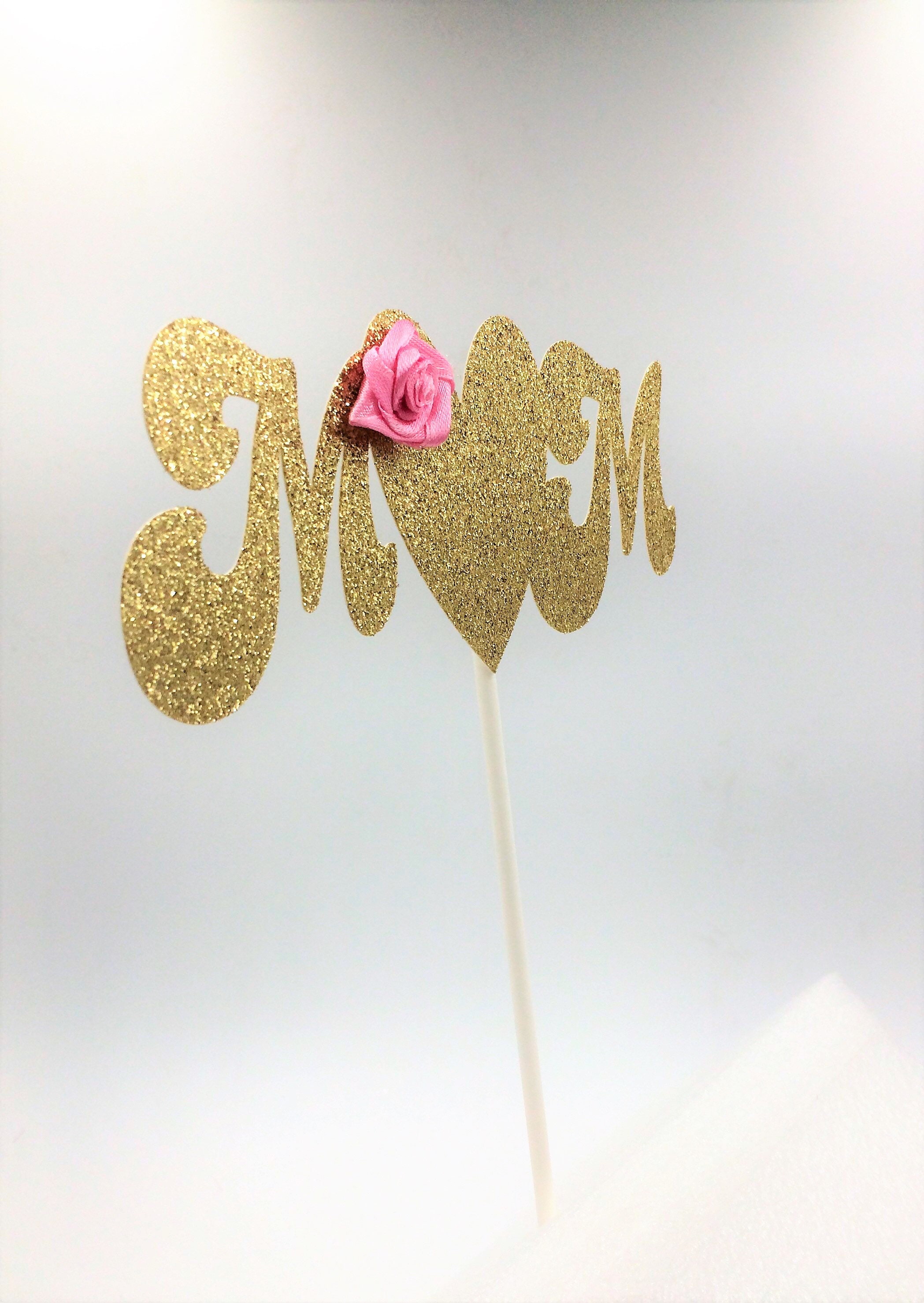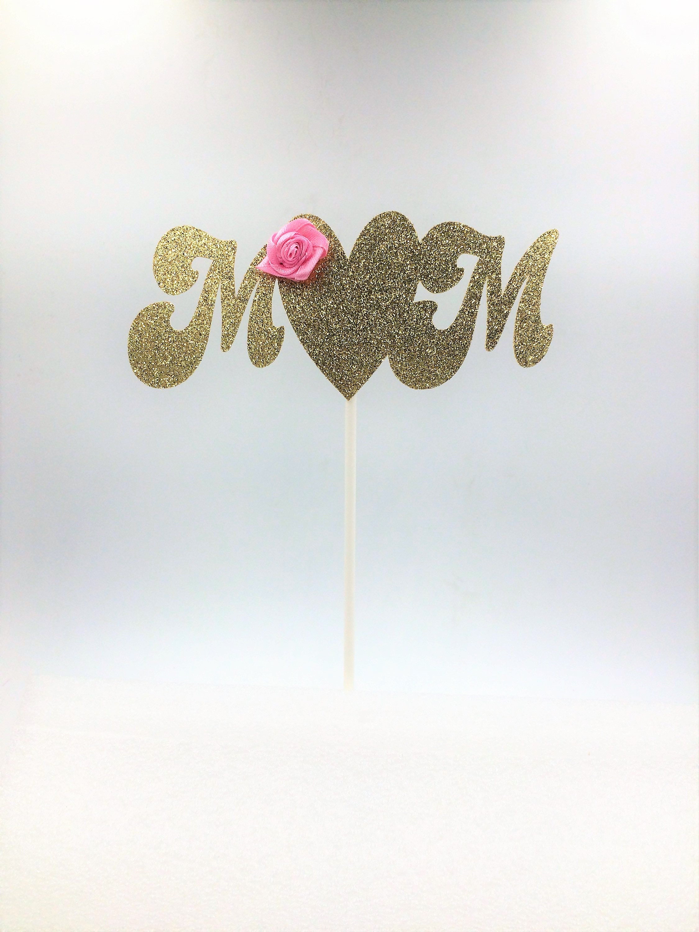 Mom Cake Topper, Gold & Pink Cake Topper, Glitter Cake Topper, Mothers Day, Gold Cake Topper, Mom Birthday, Party Decorations, Mom Cake Pick