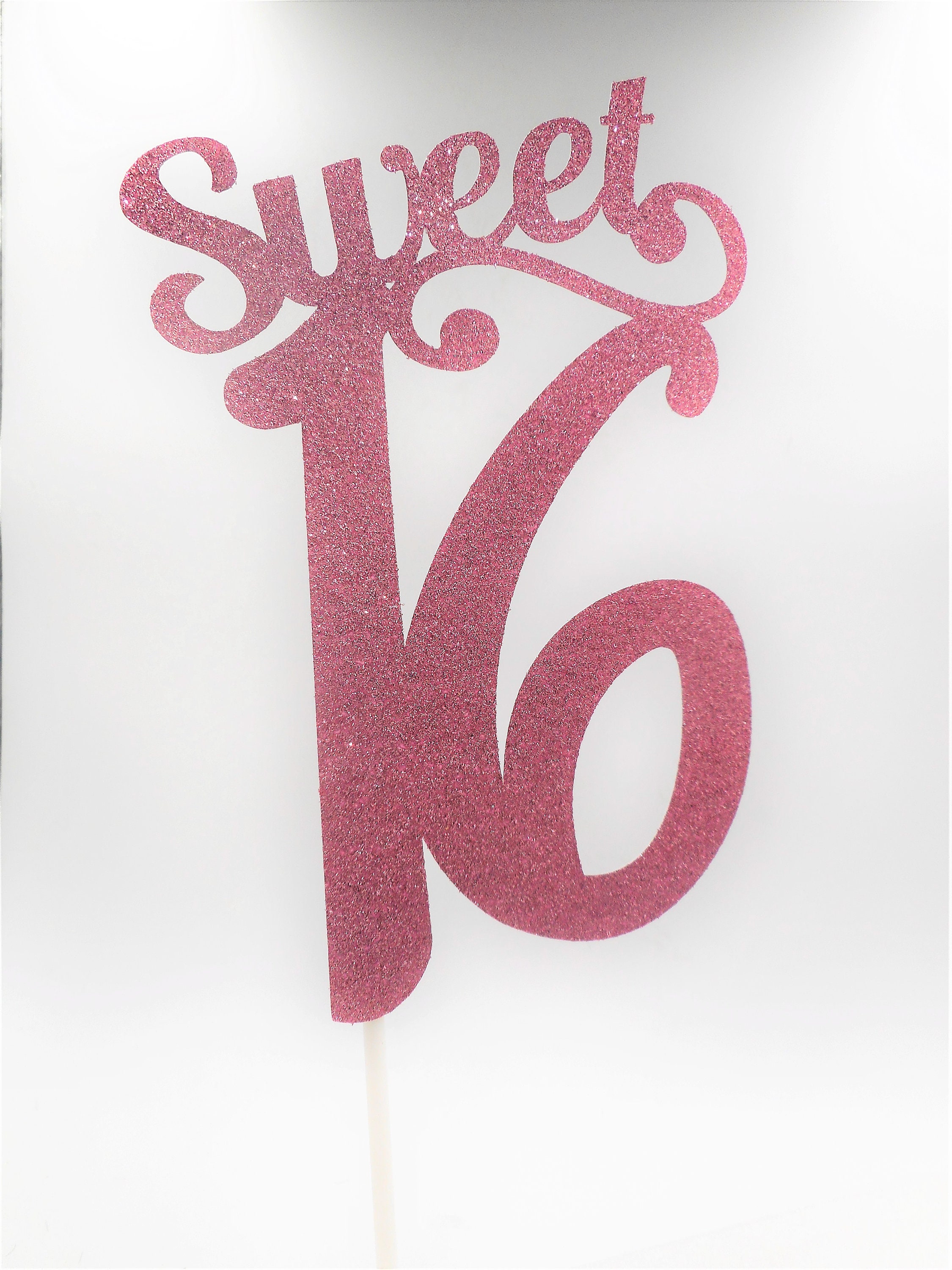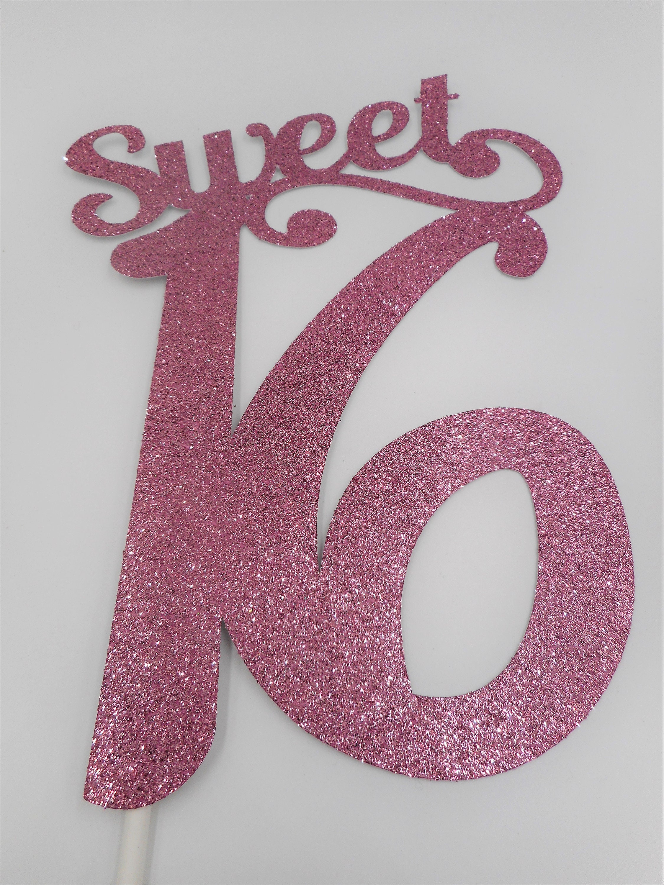 Sweet Sixteen Cake Topper, Pink 16 Cake Topper, Glitter Cake Topper, 16th birthday cake topper, Pink Cake Topper, Glam Birthday