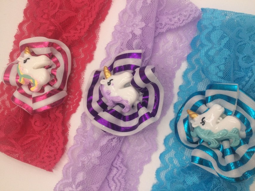 Unicorn headband Set, Lavender, Pink Stretch Headband, photo prop headband, Baby headband, baby shower gift, Unicorn Birthday Favors