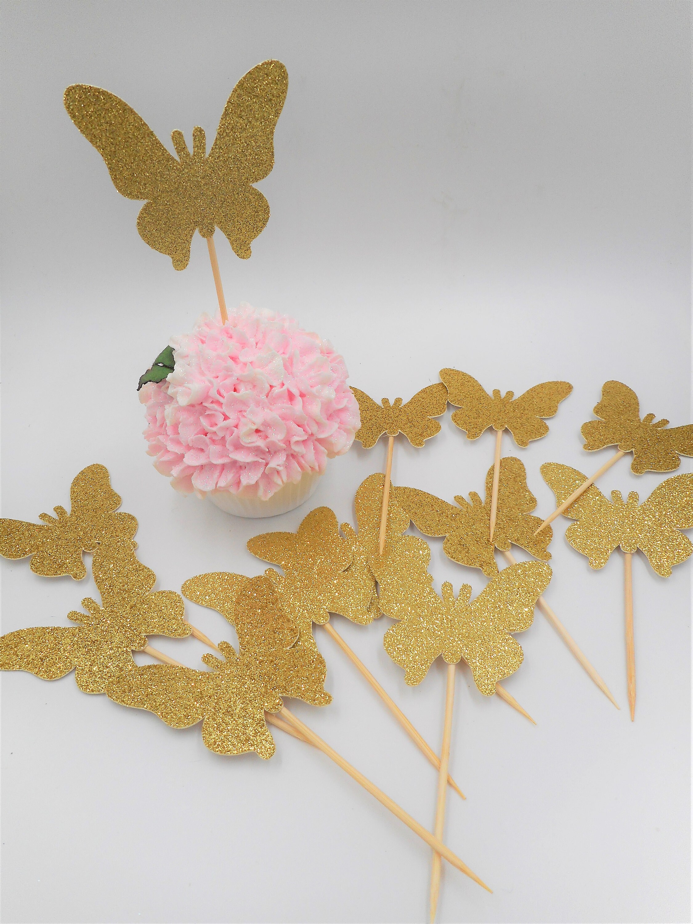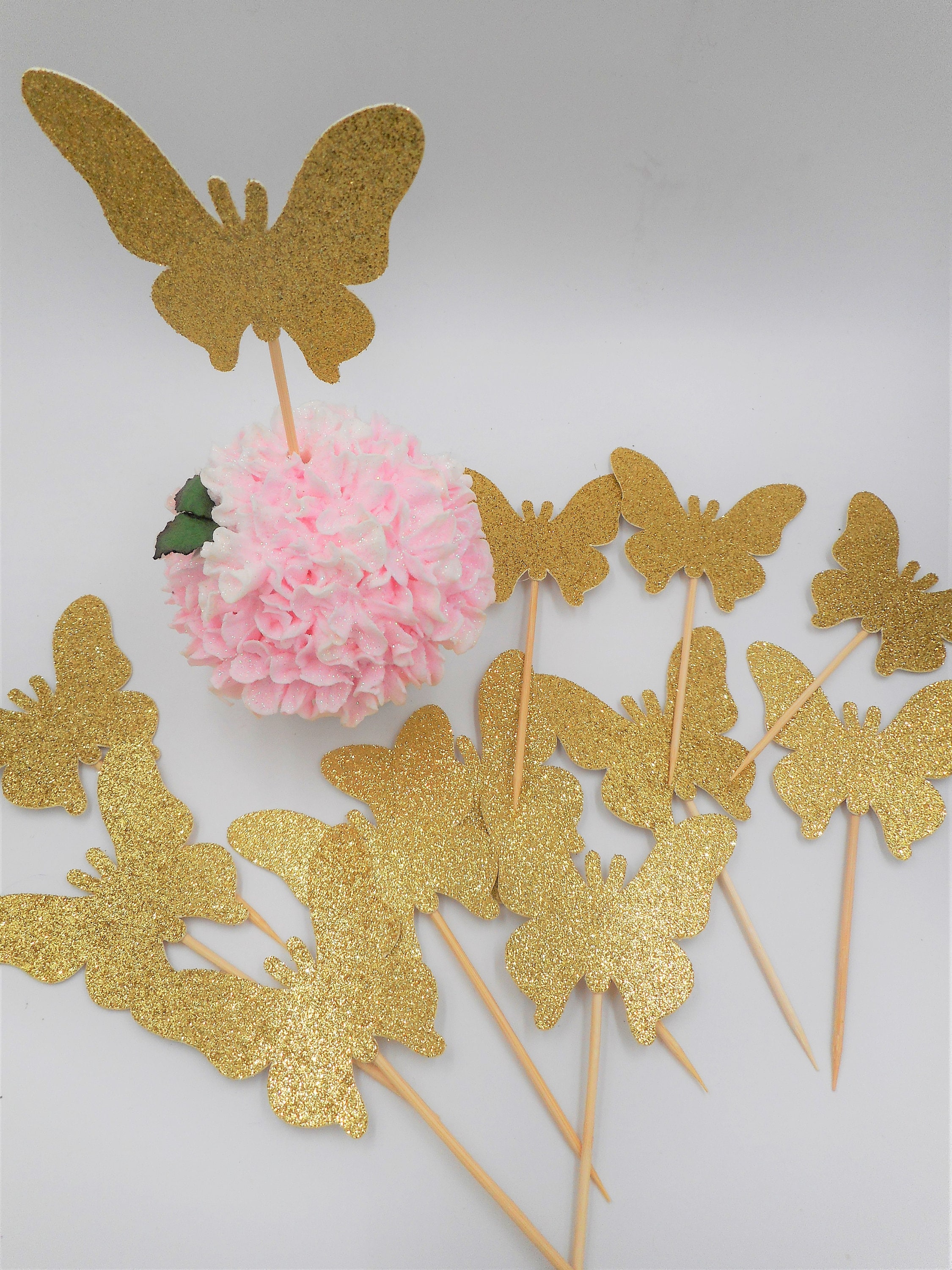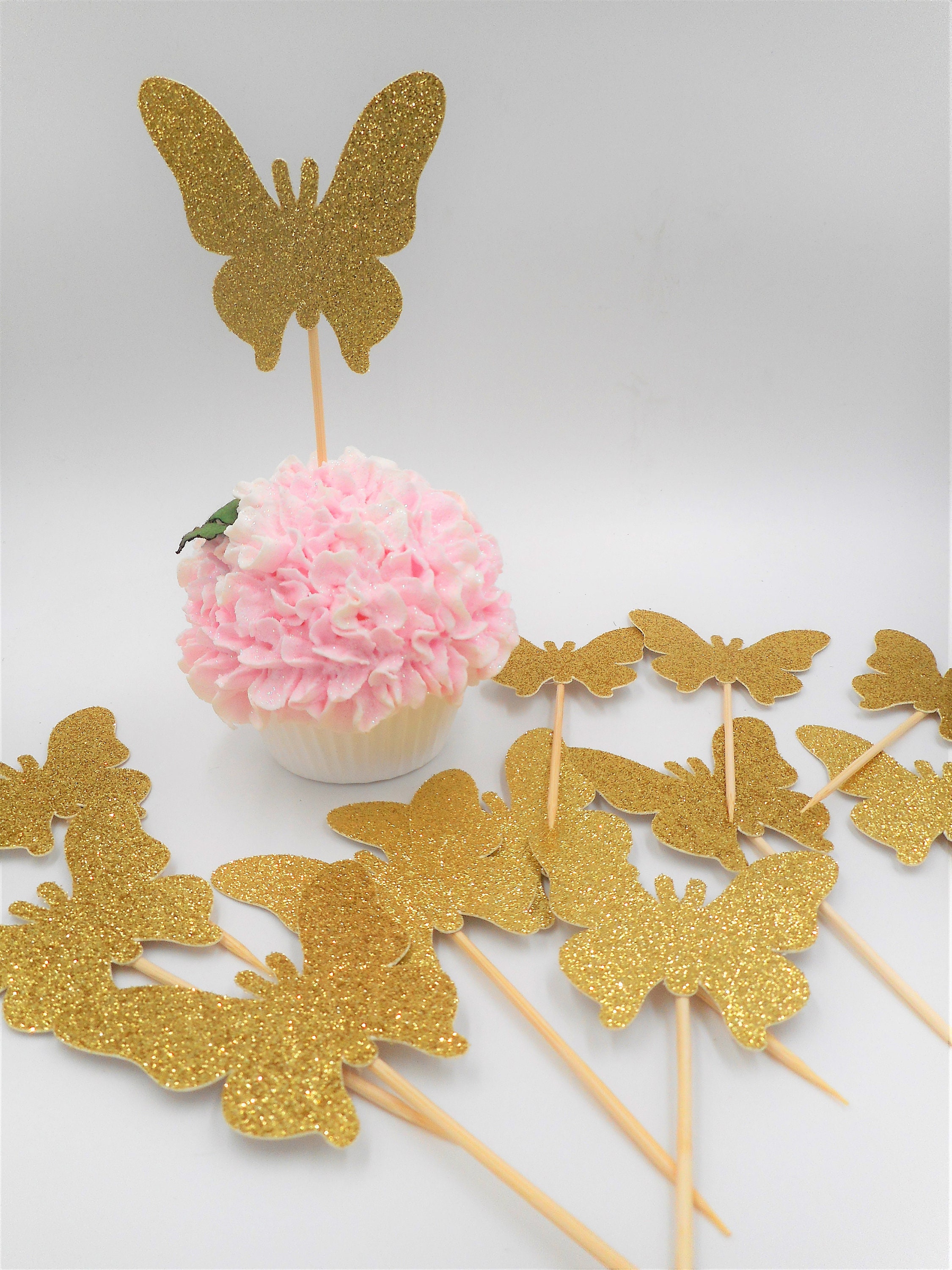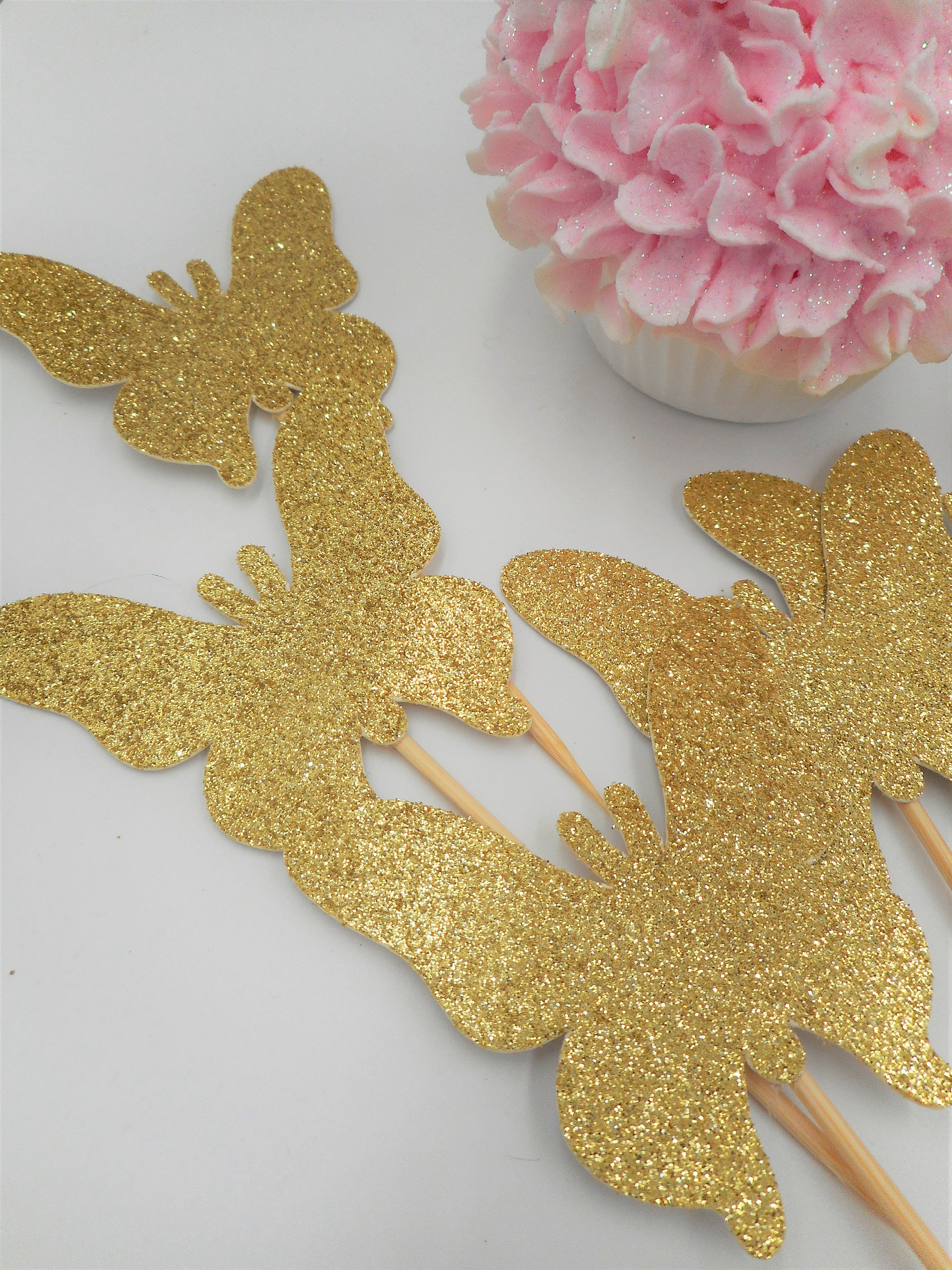 Butterfly Cupcake Topper, Gold Butterfly Cupcake Topper, Glitter Cupcake Topper, Glitter Cupcake Topper, Baby Shower Decor, Butterflies