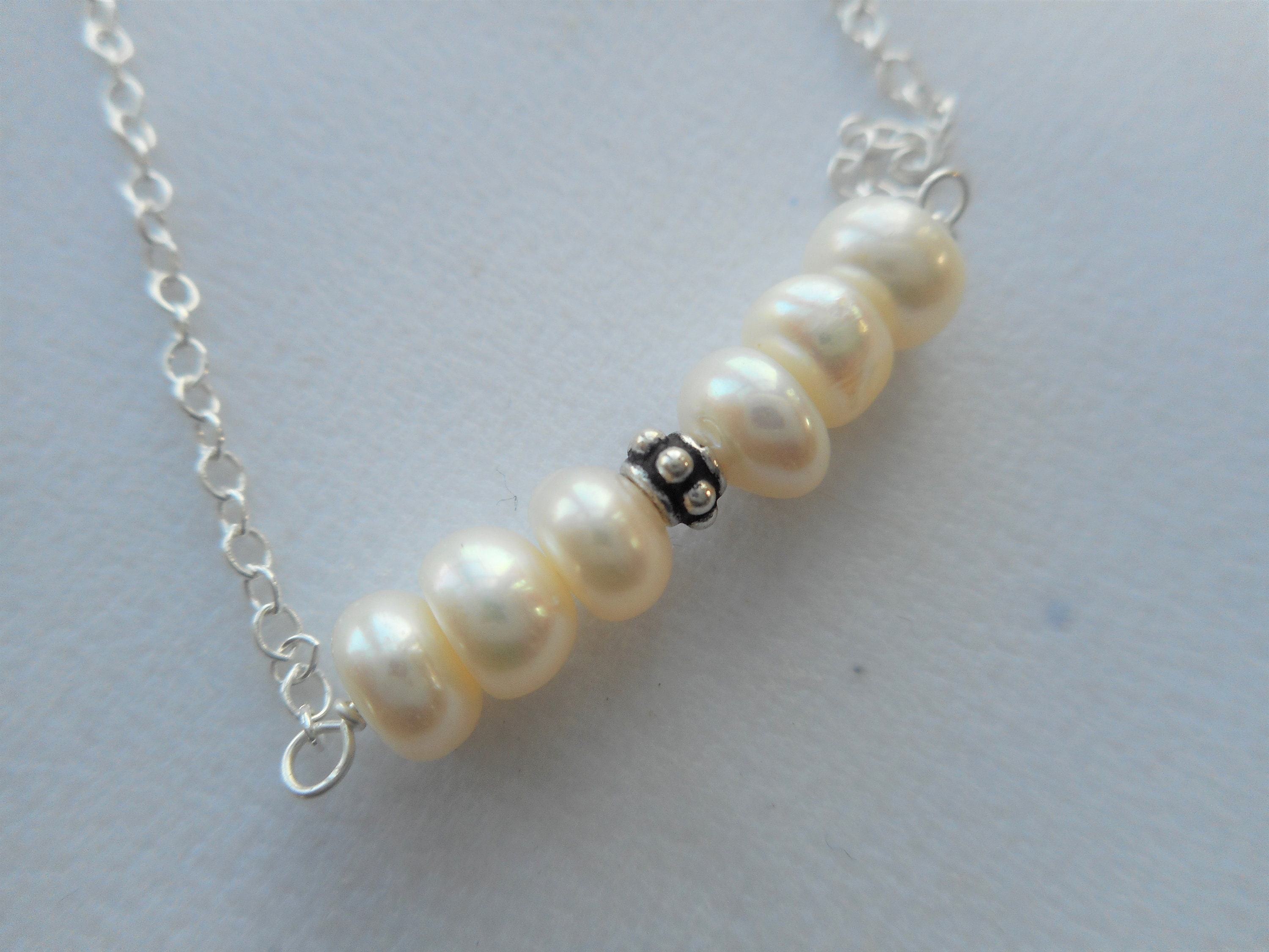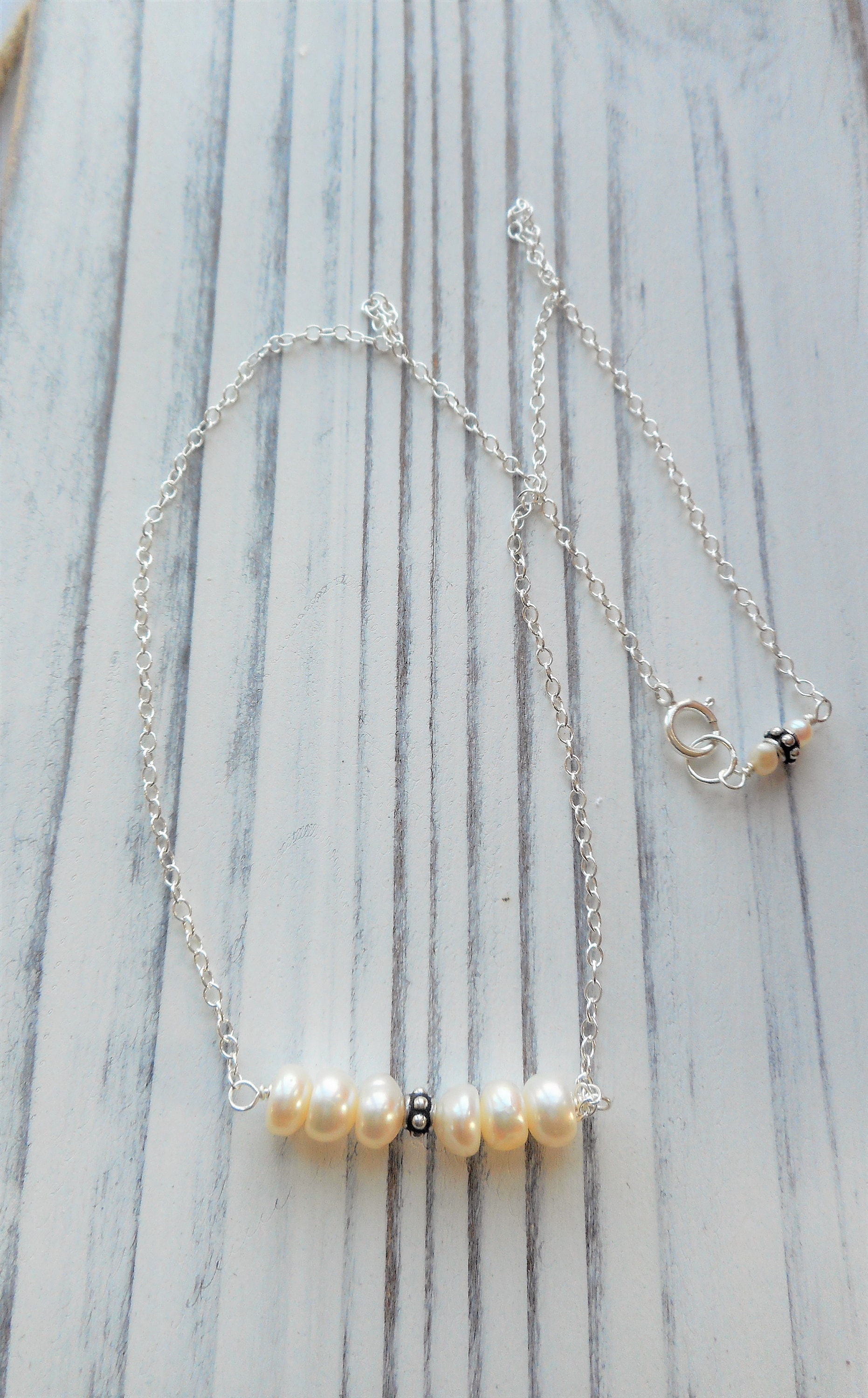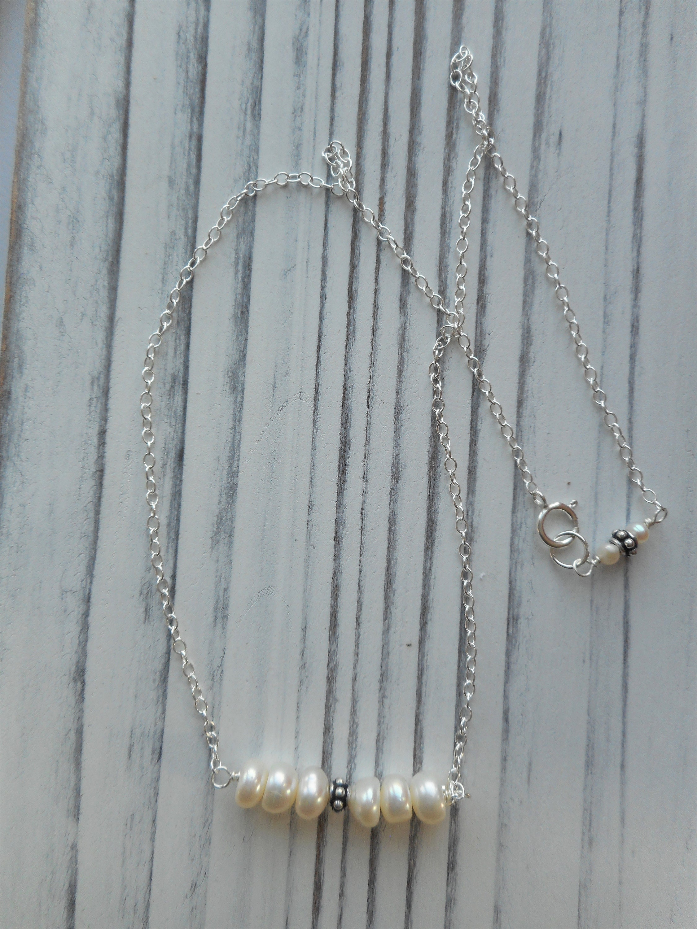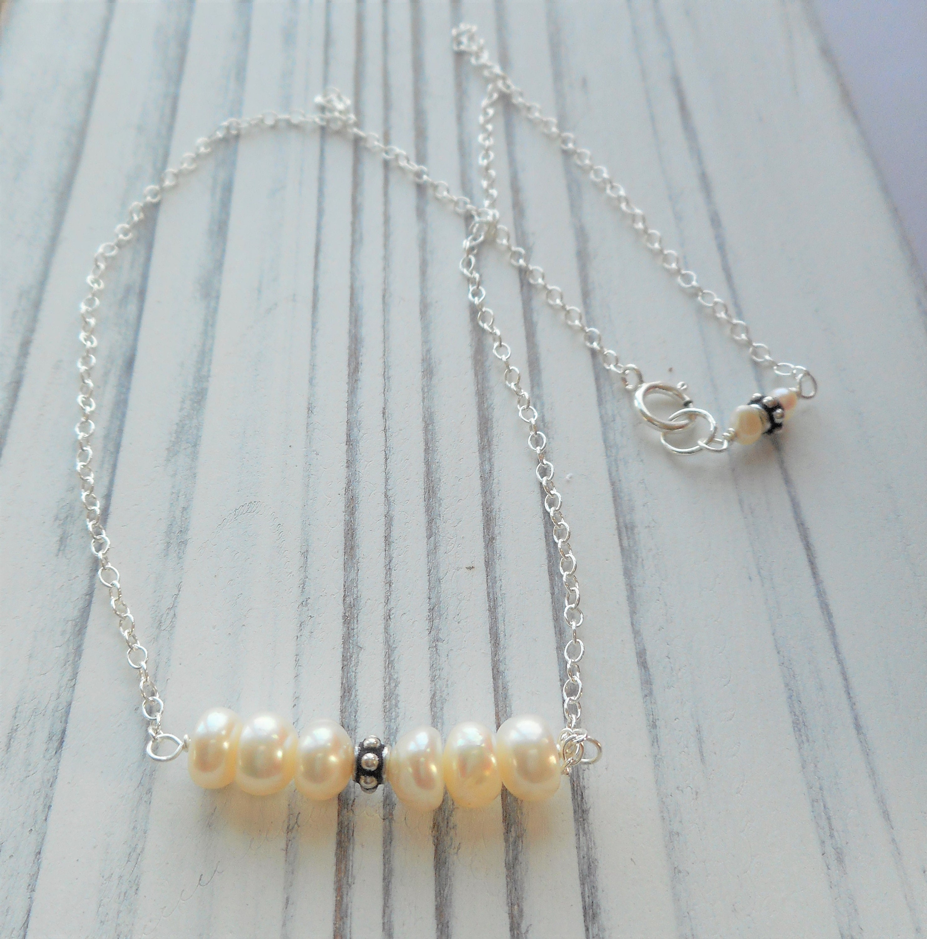 Pearl Silver Necklace, Freshwater Pearl Necklace, Pearl Bar Necklace, Sterling Silver Pendant Necklace, Boho Jewelry, Bridesmaid Gifts