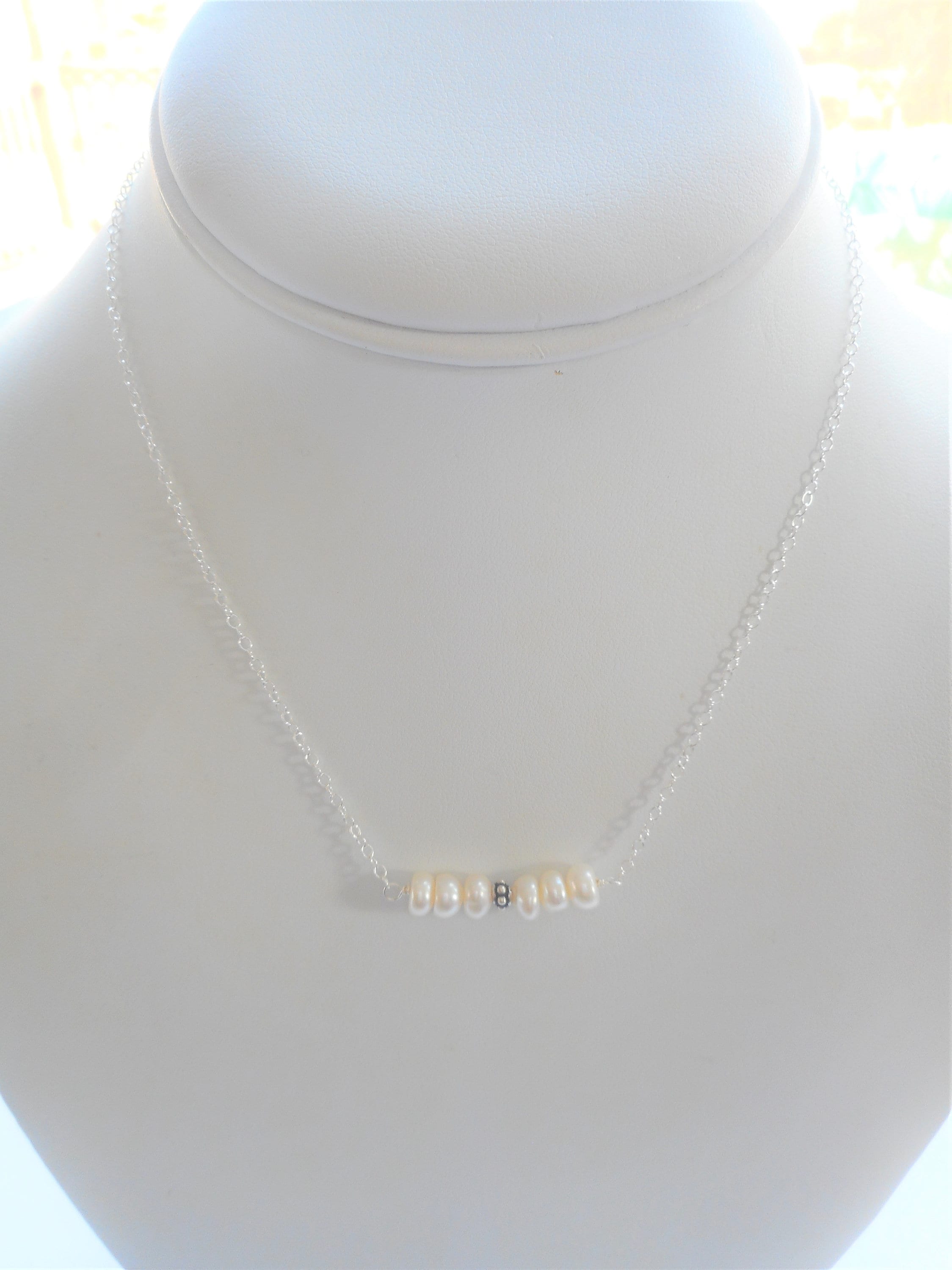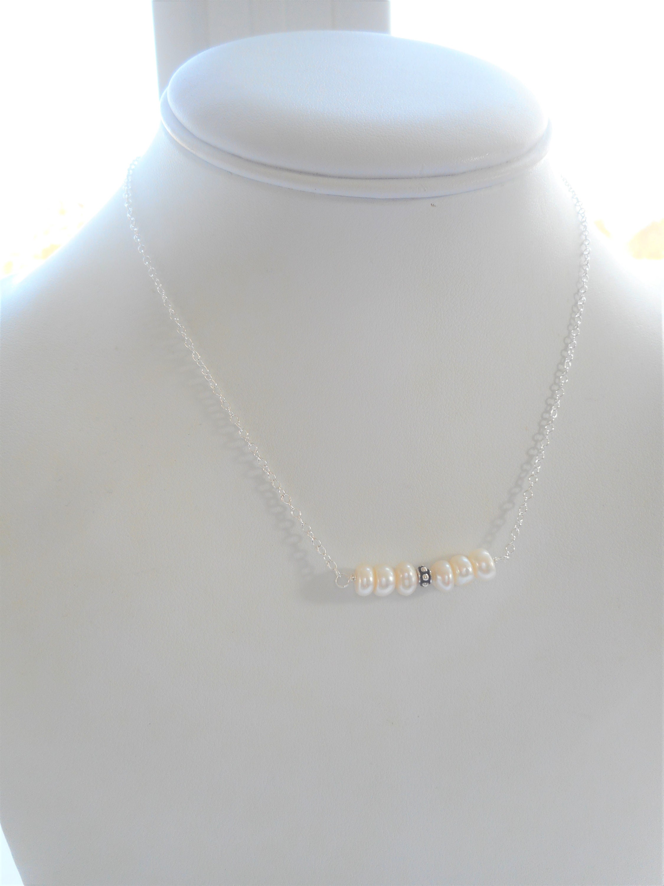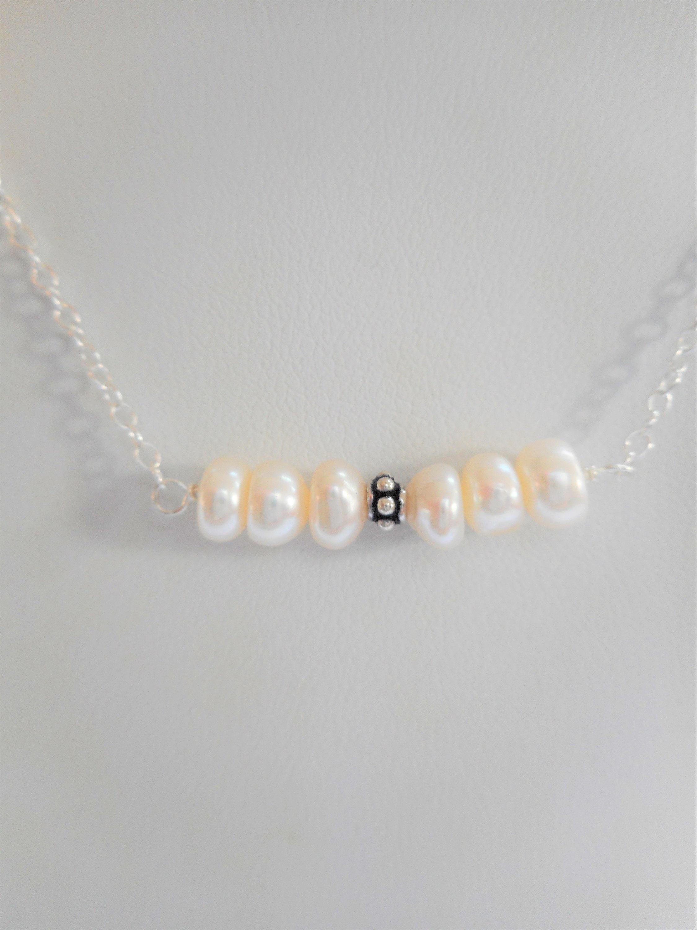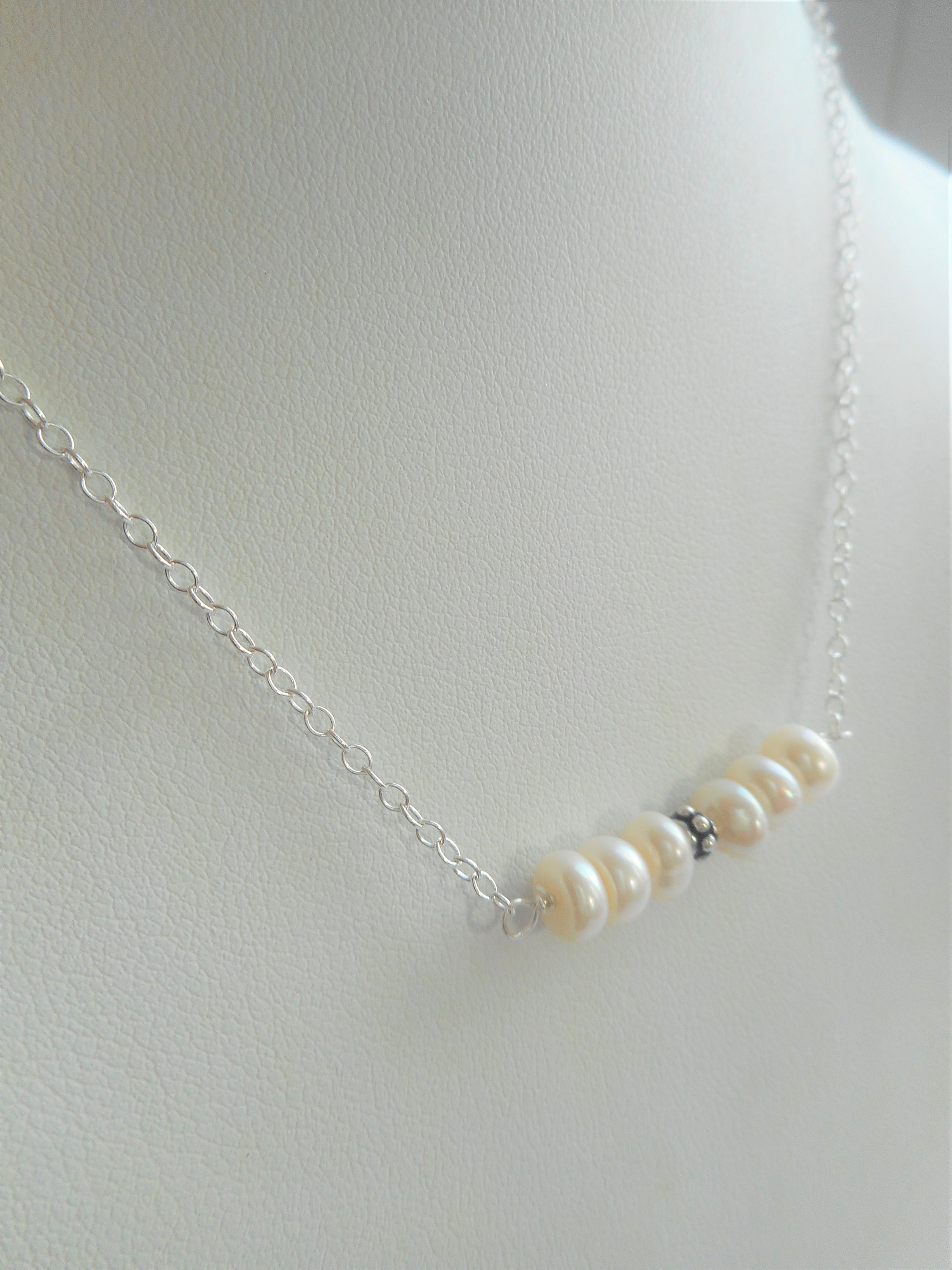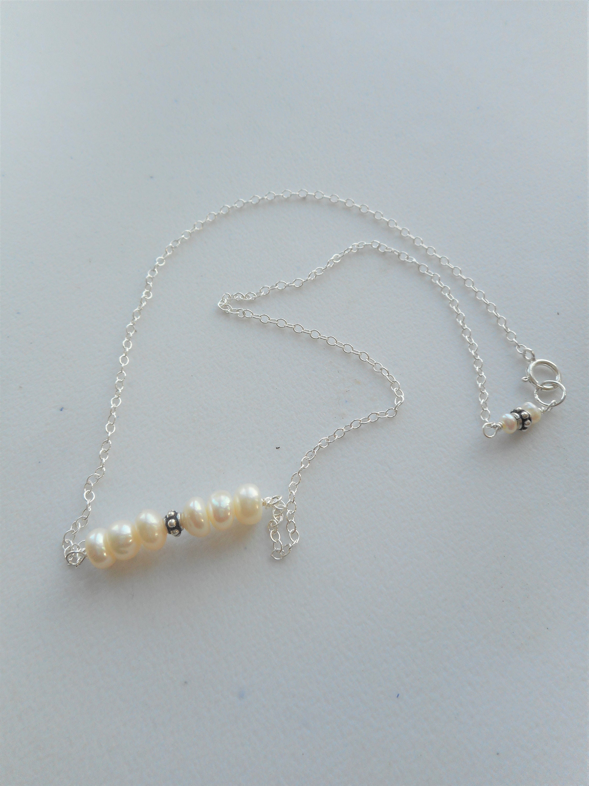 Pearl Silver Necklace, Freshwater Pearl Necklace, Pearl Bar Necklace, Sterling Silver Pendant Necklace, Boho Jewelry, Bridesmaid Gifts