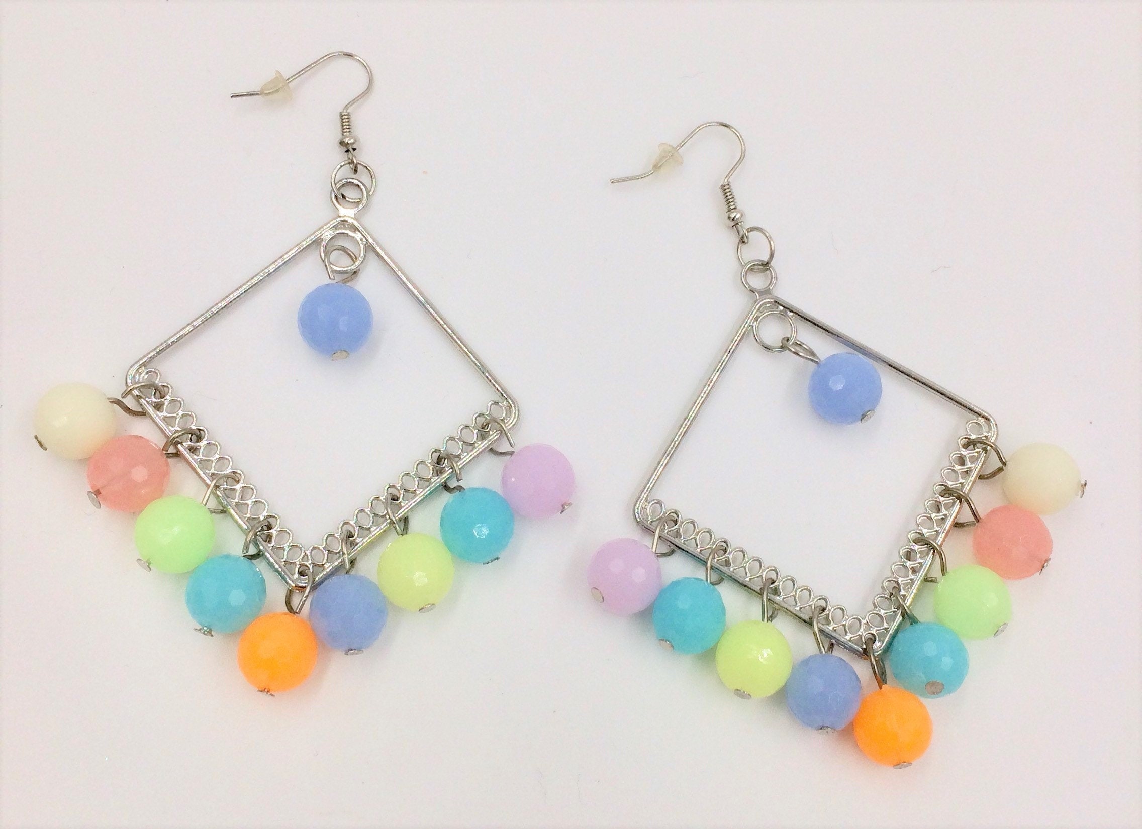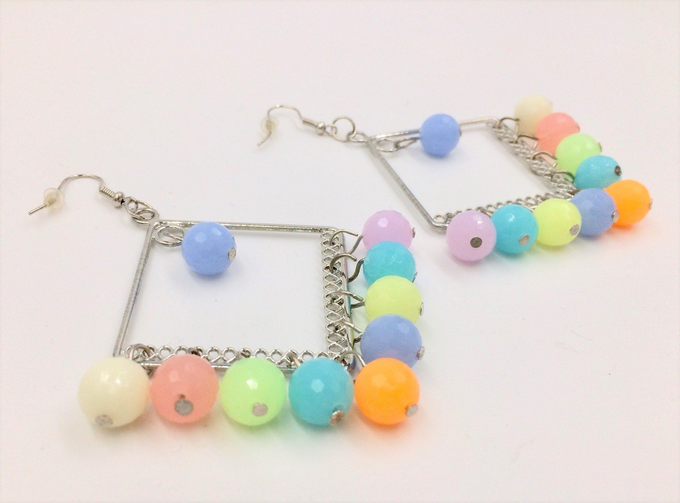 Statement Jewelry, Chunky Beaded Earrings, Multi Color Earrings, Boho Earrings, Summer Jewelry, Rainbow Jewelry, Drop Dangle Earrings