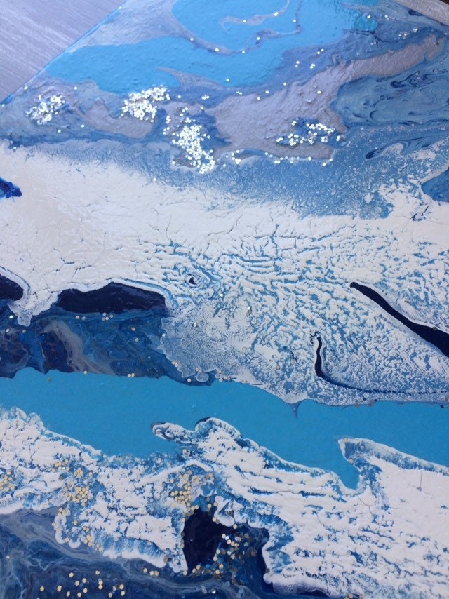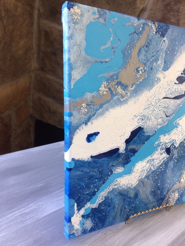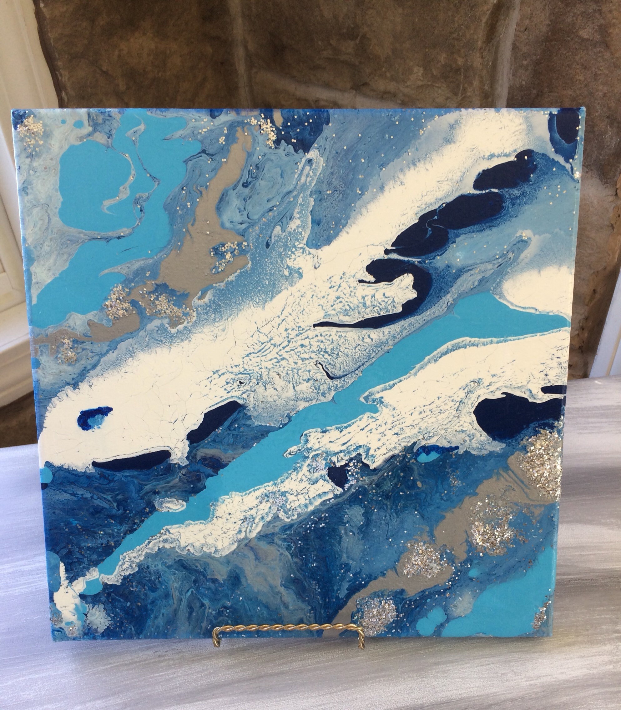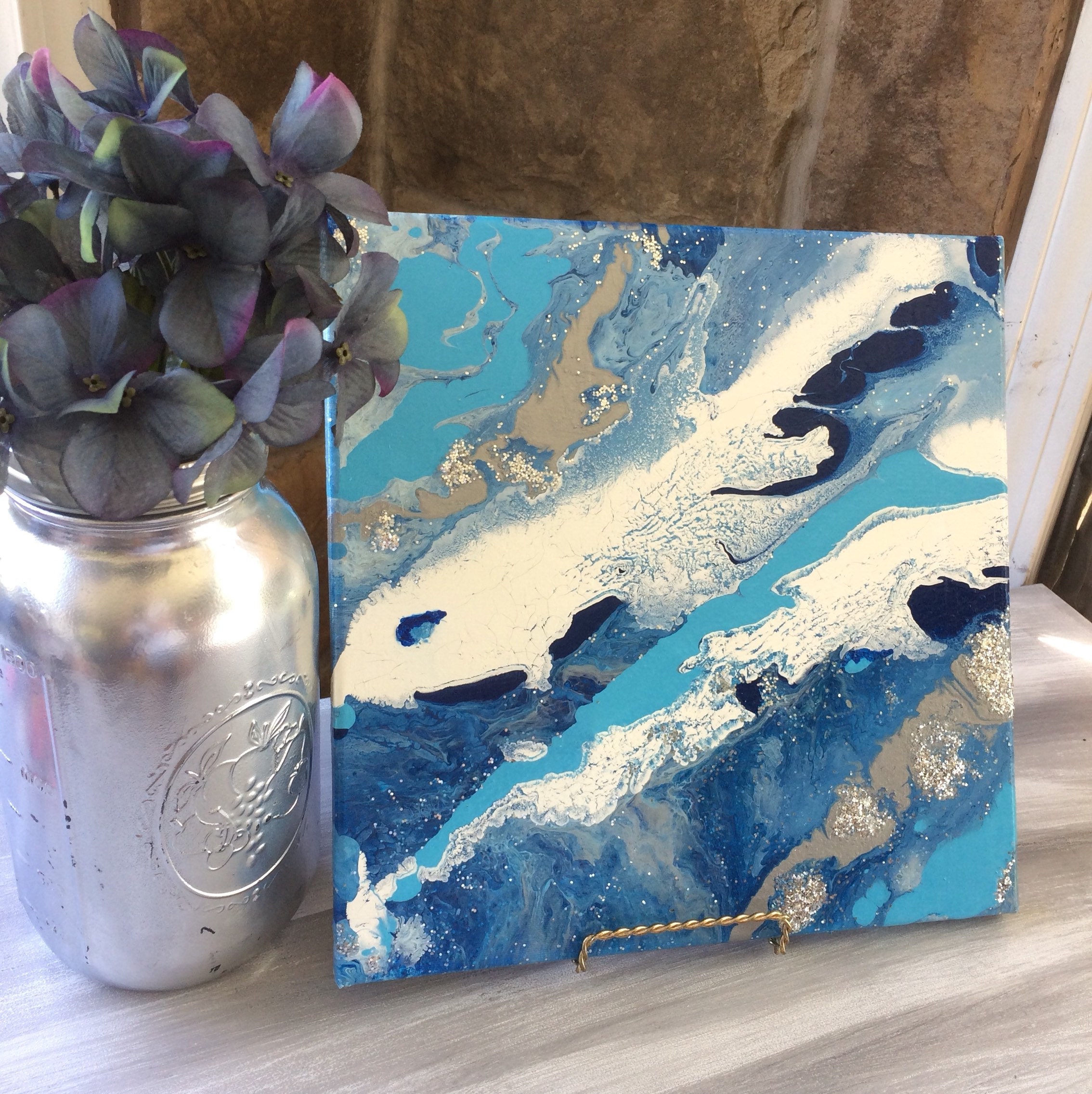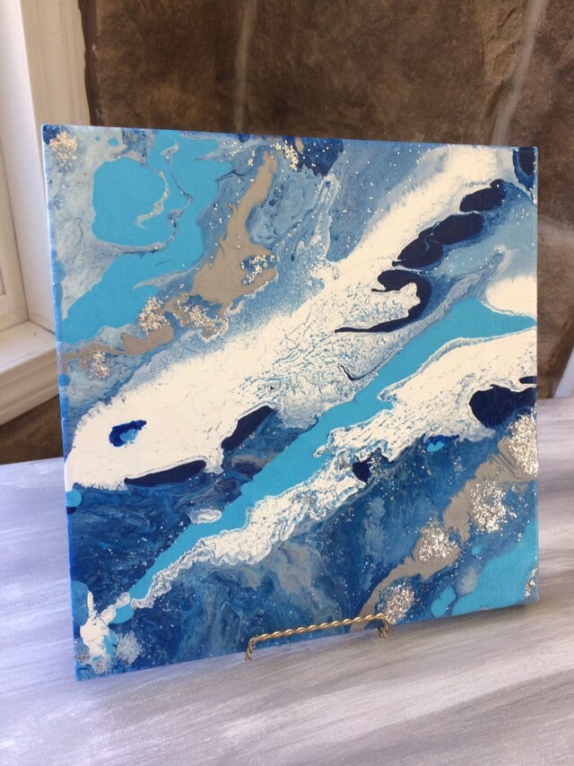 Blue Abstract Canvas Art, Modern Wall Art, Silver White and Blue Canvas, Modern Wall Hanging, Canvas Art, Nautical Decor, 12x12, Blue Decor