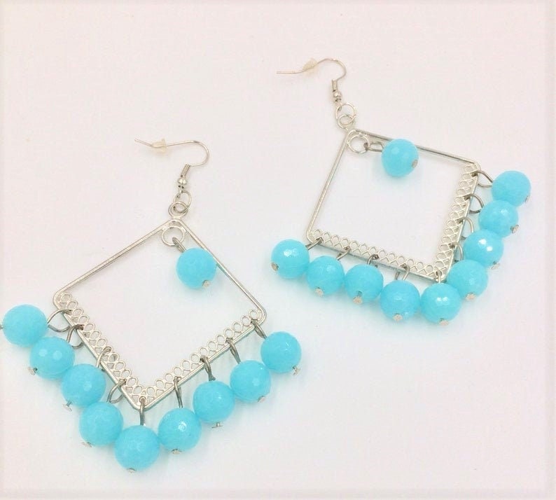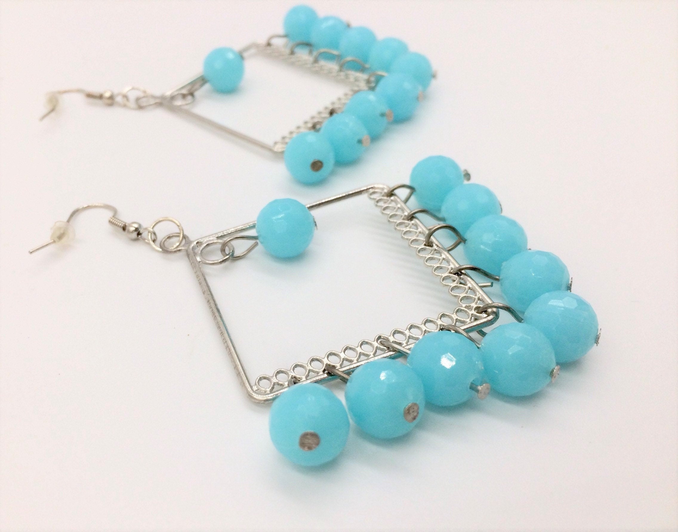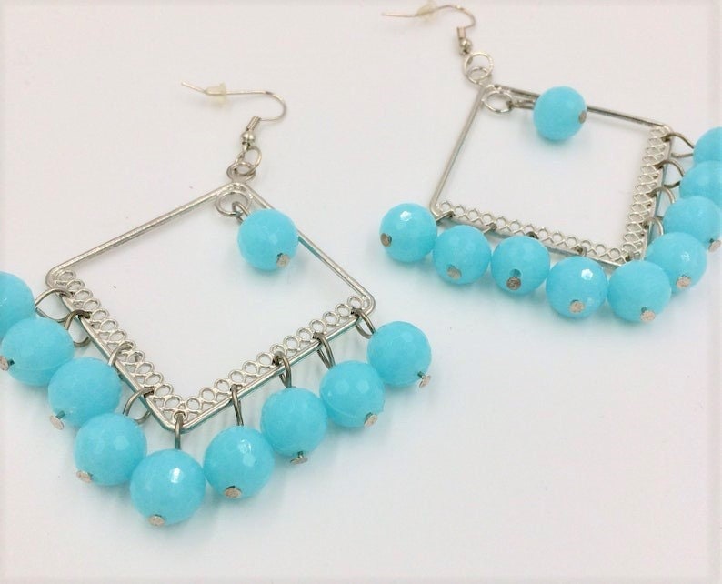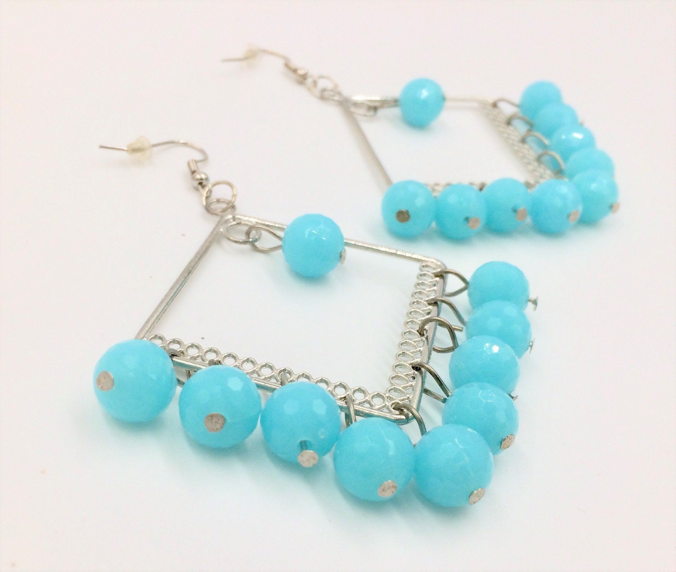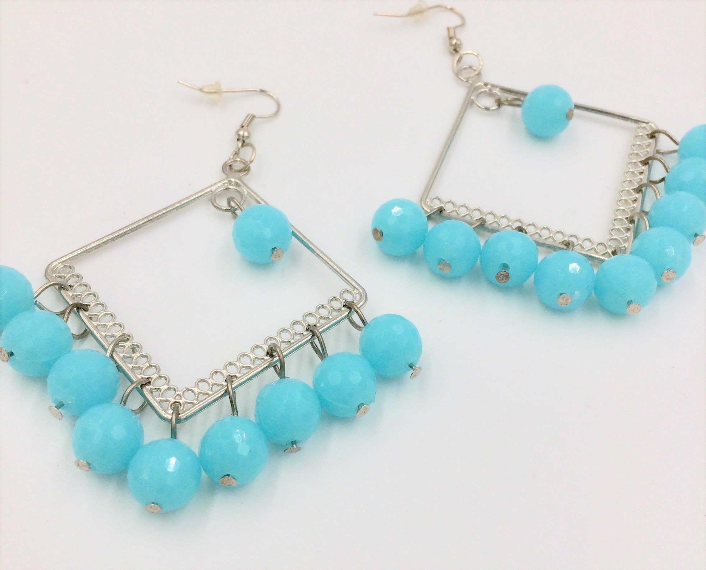 Statement Jewelry, Chunky Beaded Dangle Earrings, Blue Earrings, Boho Jewelry, Summer Earrings, Dangle Drop Earrings, Blue Beaded Earrings