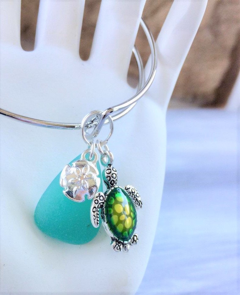 Turtle Jewelry, Turtle Bracelet, nautical jewelry, Nautical gifts, Turtle charm jewelry, Sea Glass Jewelry, Beach jewelry