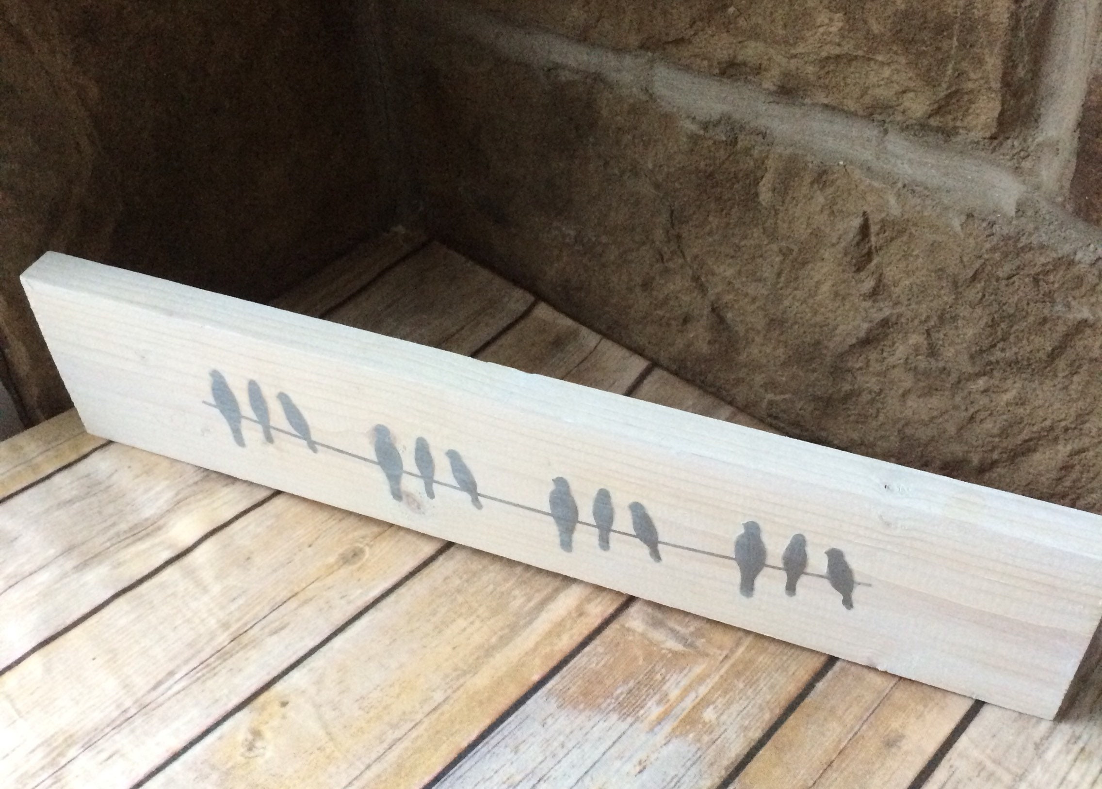 Birds on a Branch Wood Sign, Rustic Decor, White Washed Decor, Wood Sign Shelf Decor, Farmhouse Decor, Birds Wooden Sign, Standing Sign