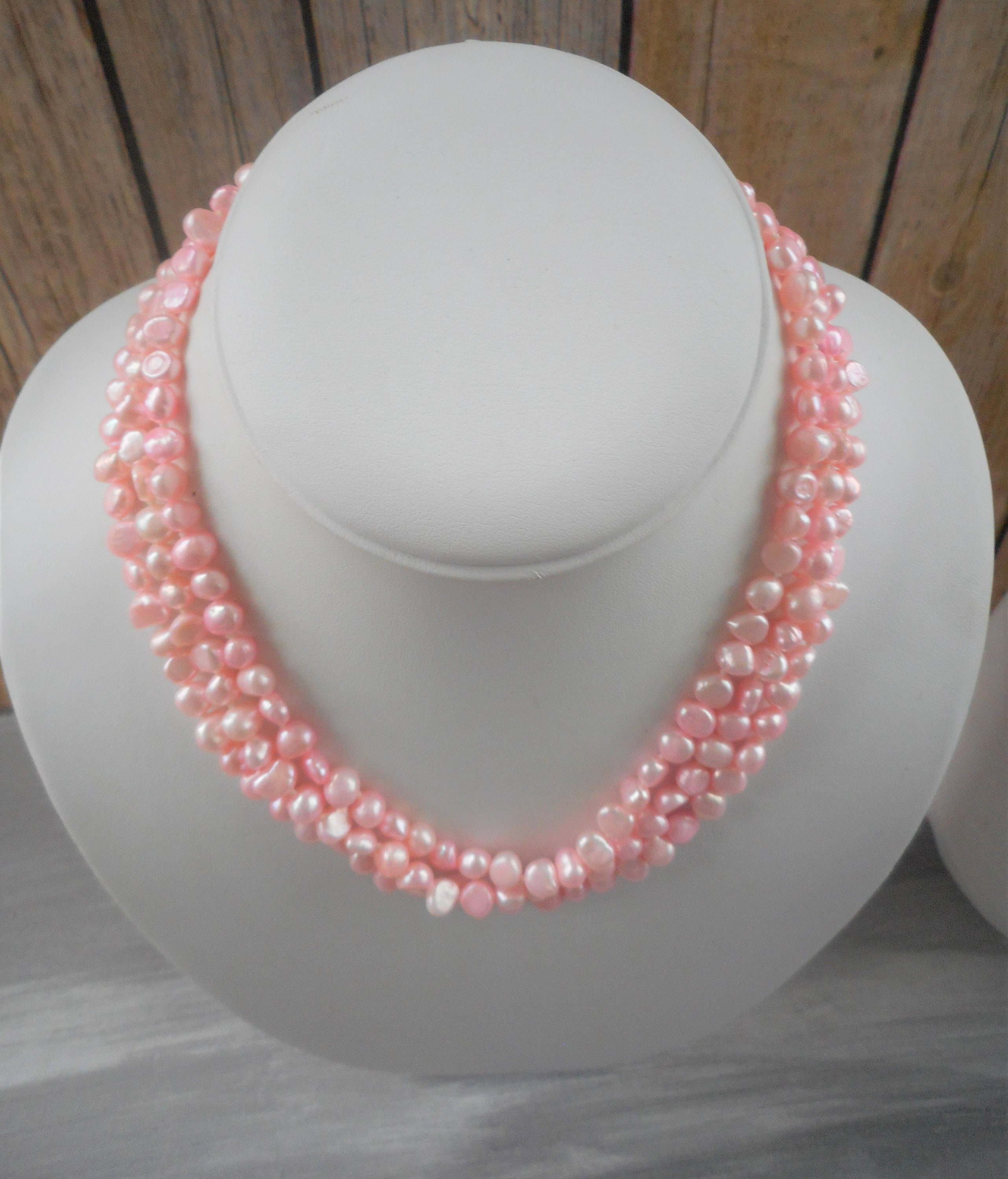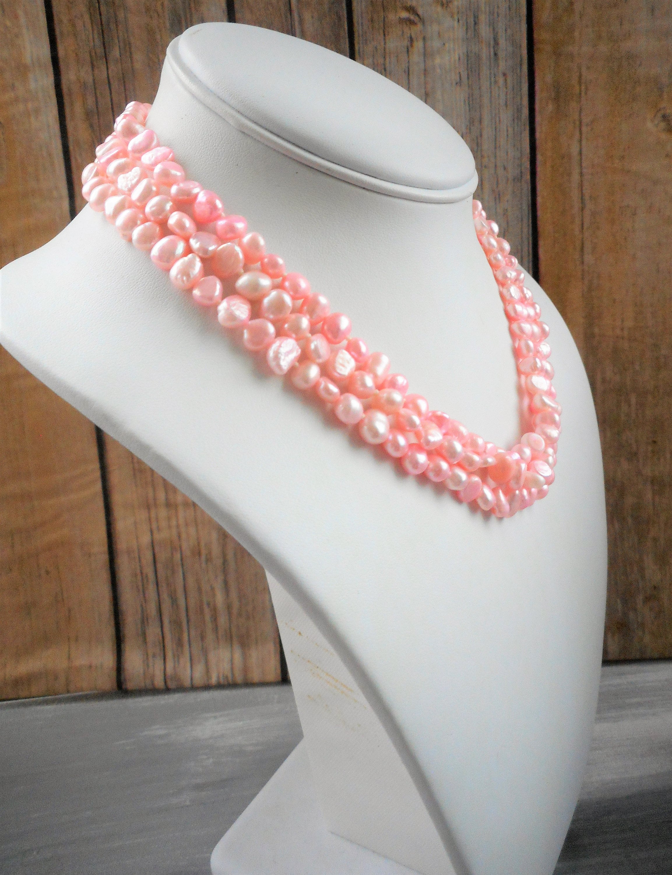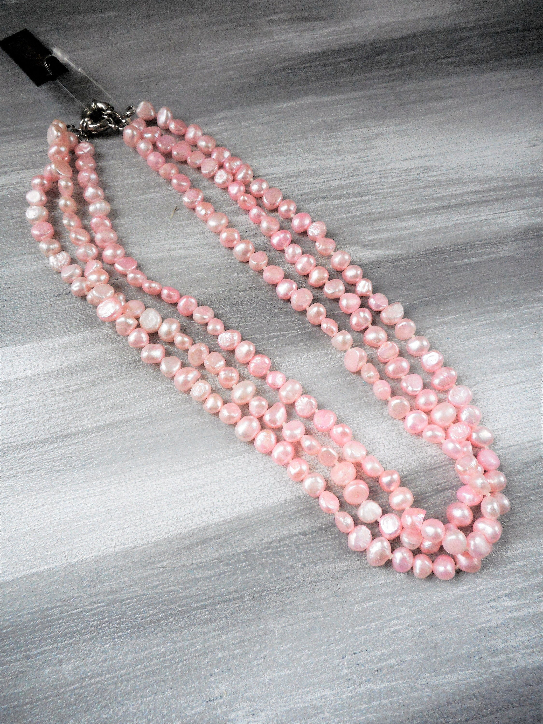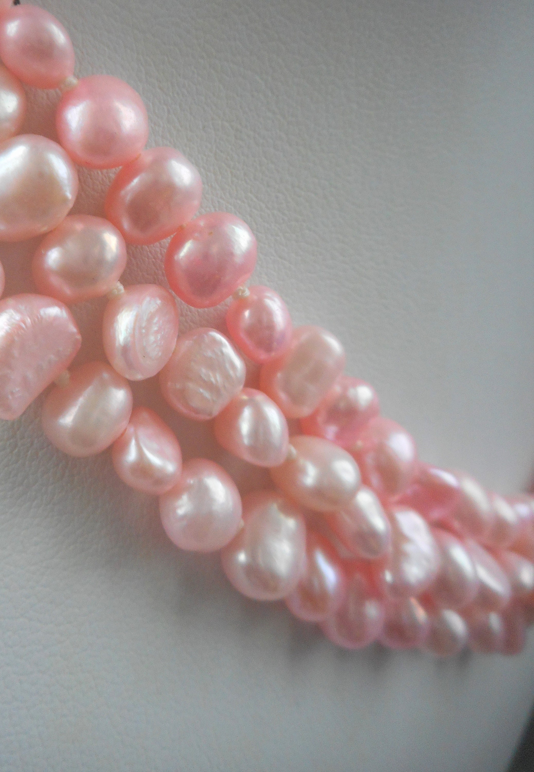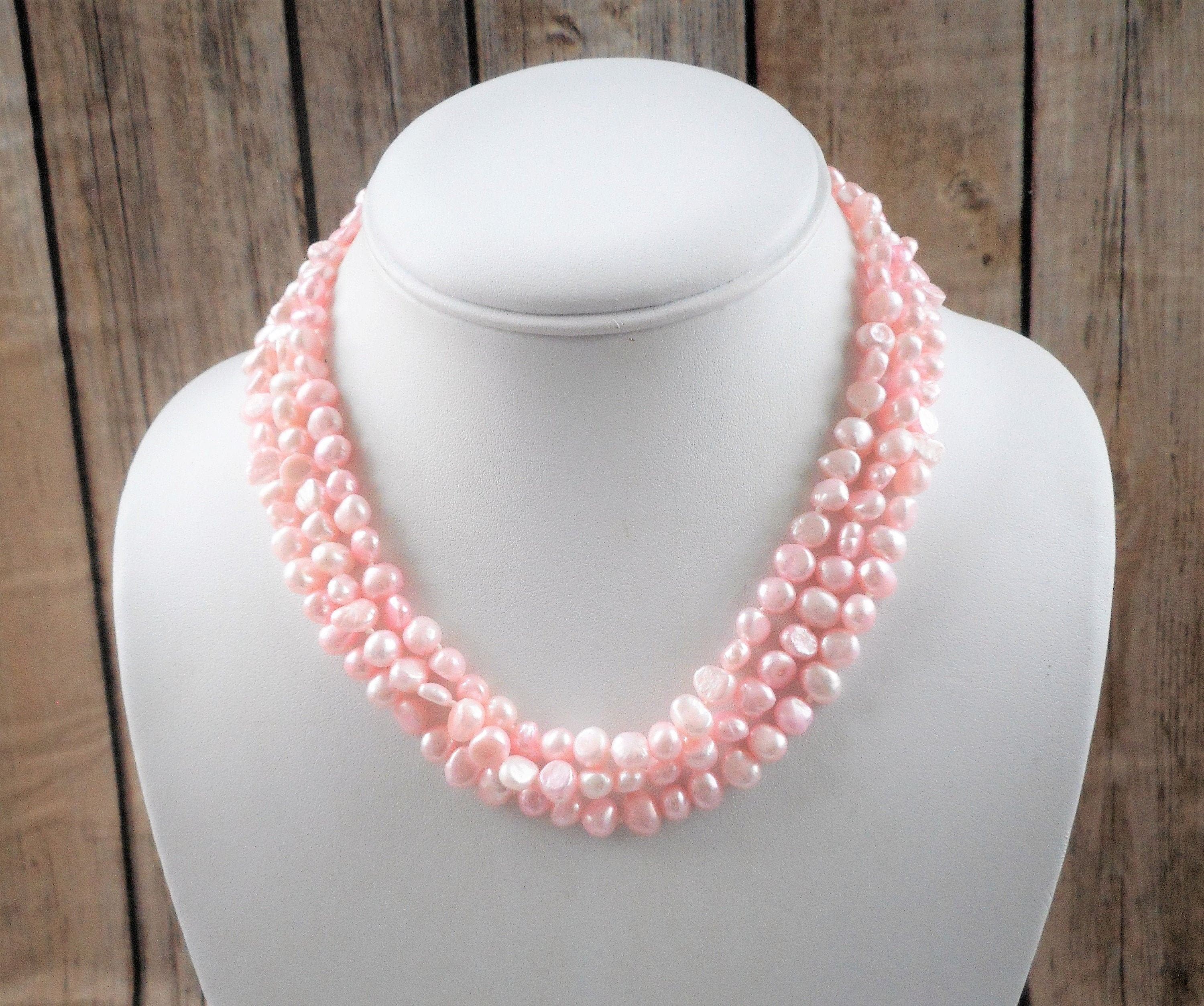 Multi Stand Light Pink Pearl Choker Necklace, 16" 3 Row Baroque C.Freshwater Pearl, Pearl Jewelry, Pink Pearl Necklace, Statement Necklace
