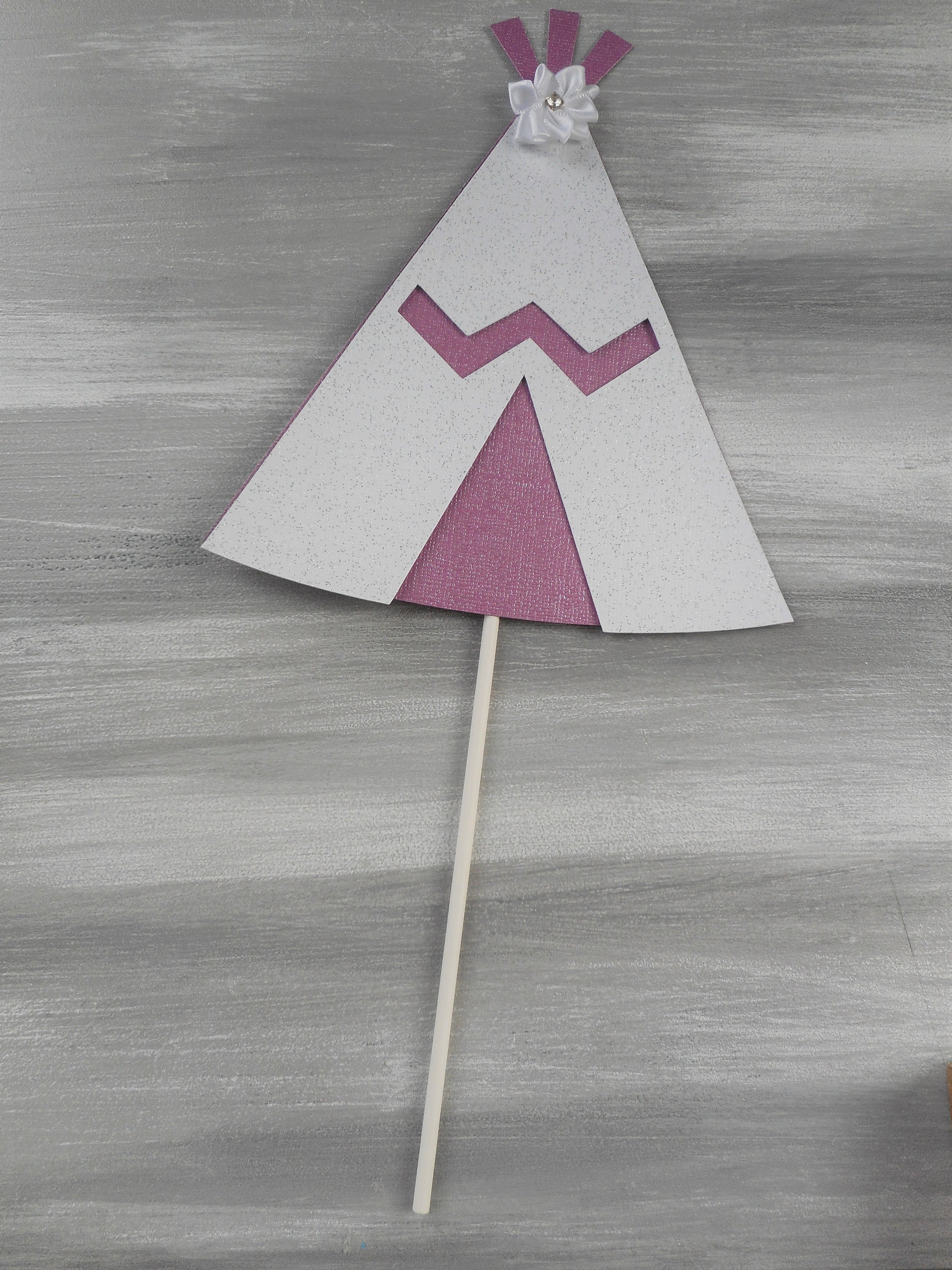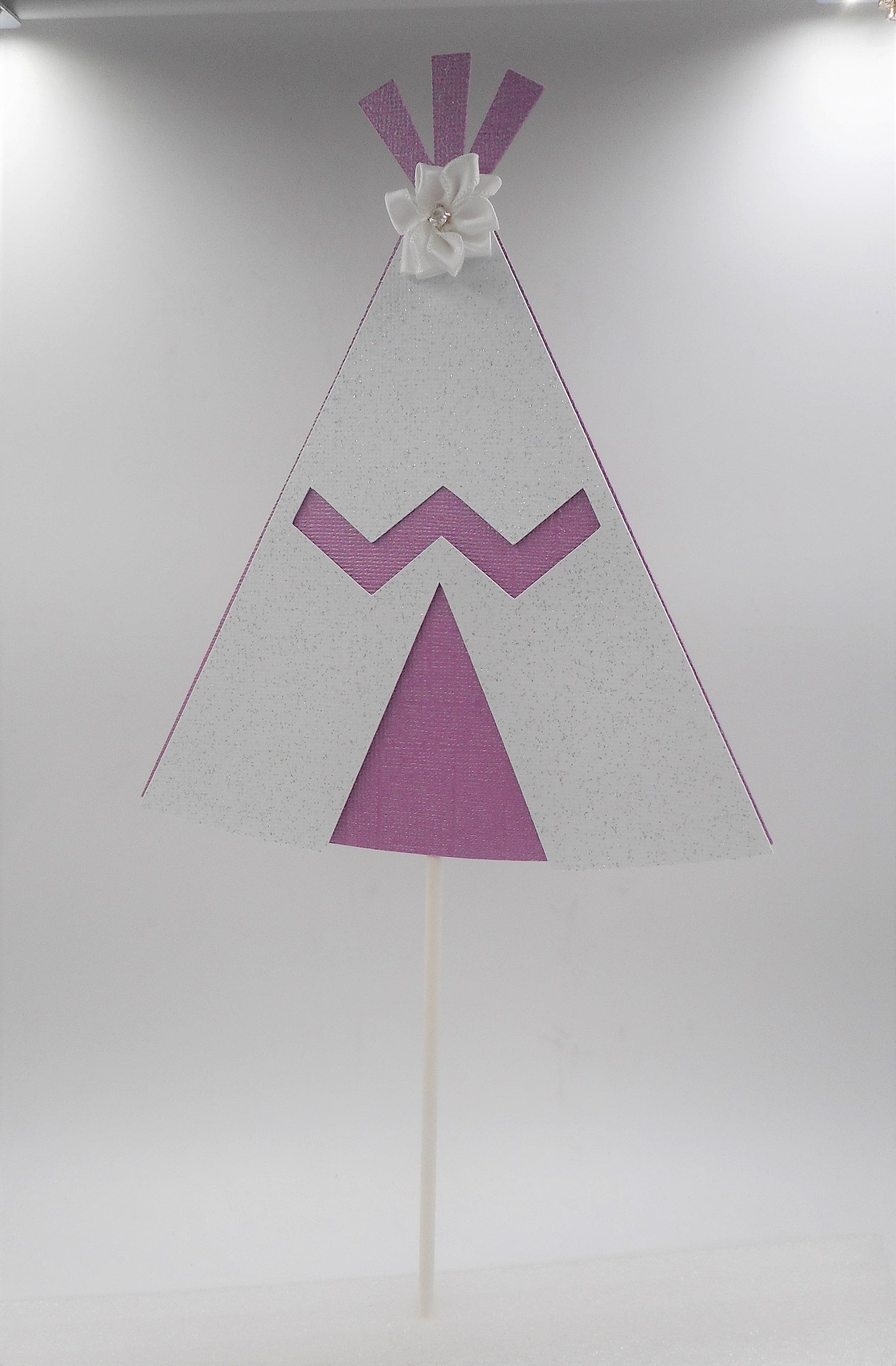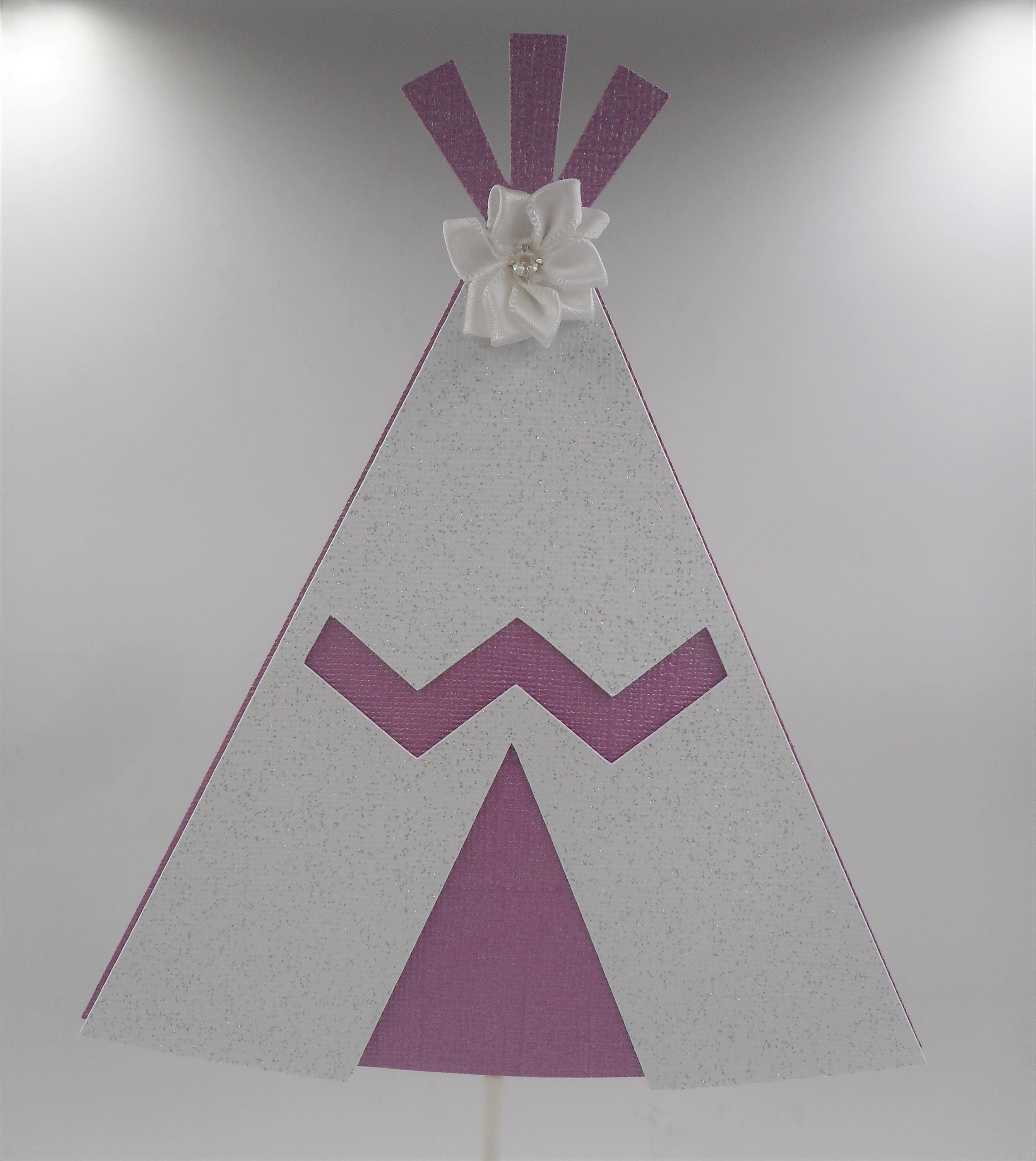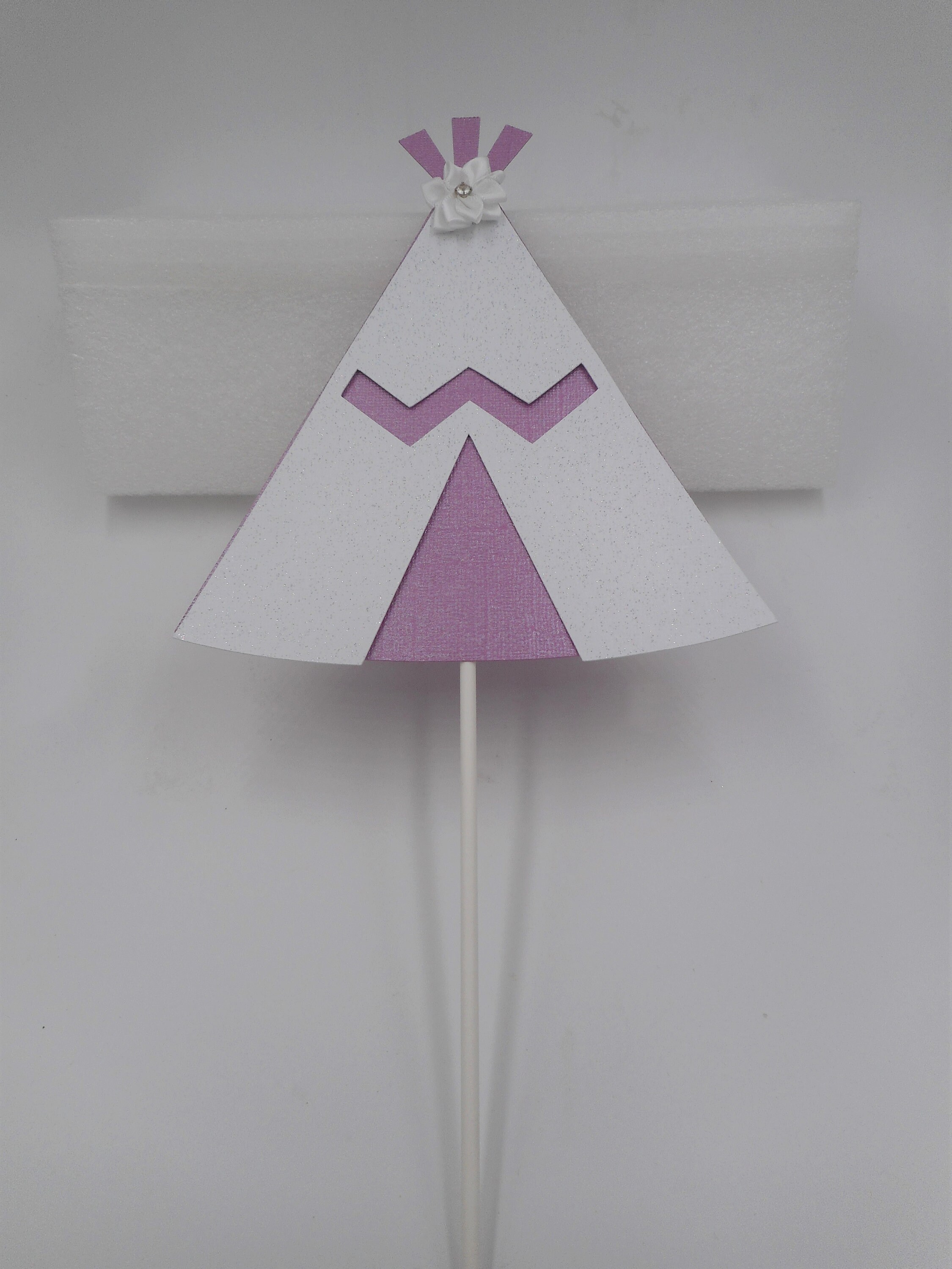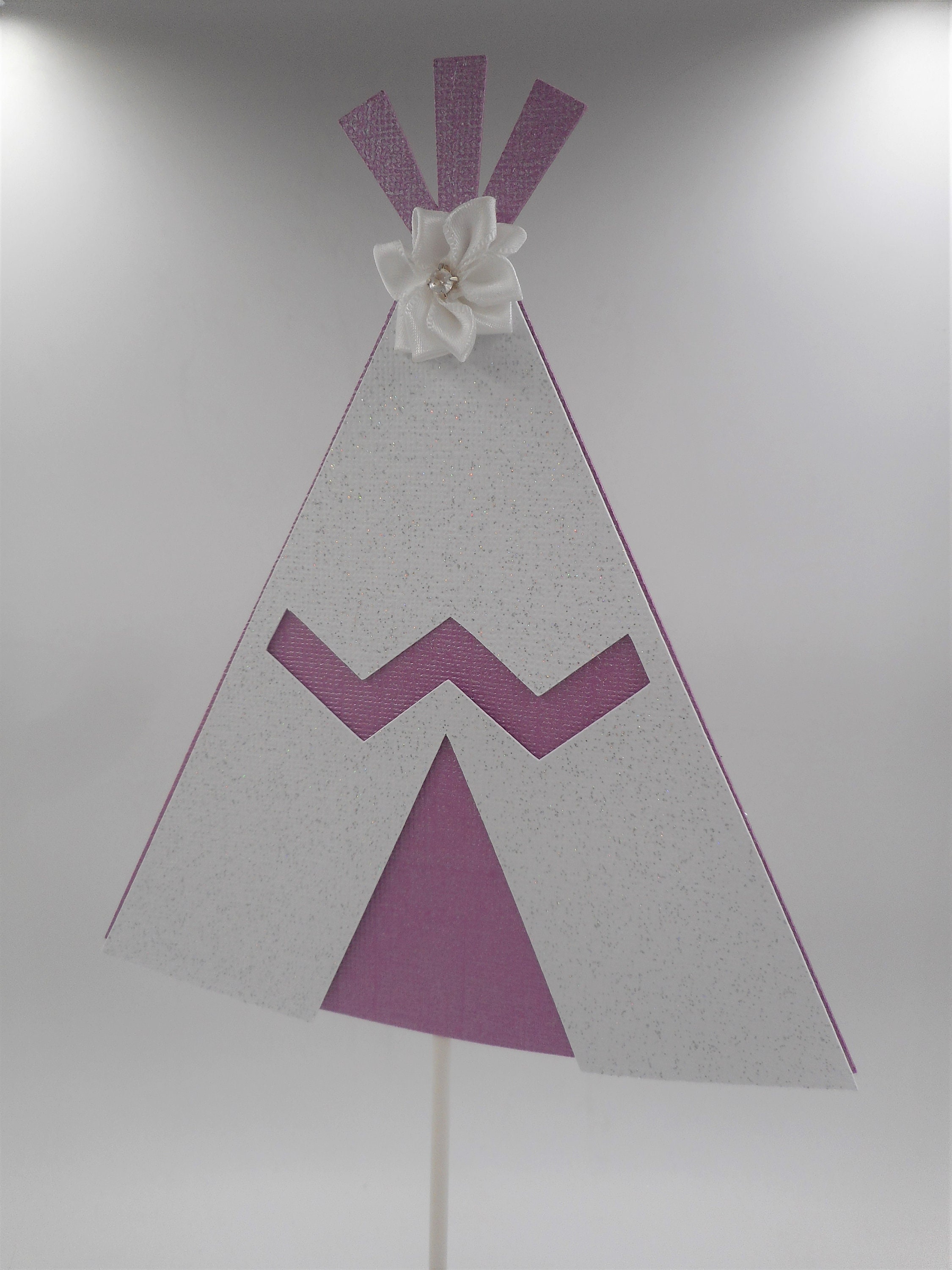White & Rose Quartz (Lavender tone) Cardstock Tepee Cake Topper