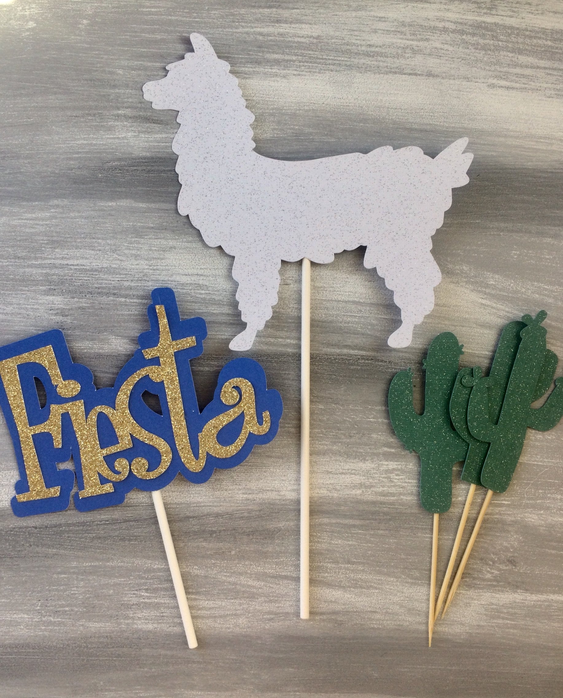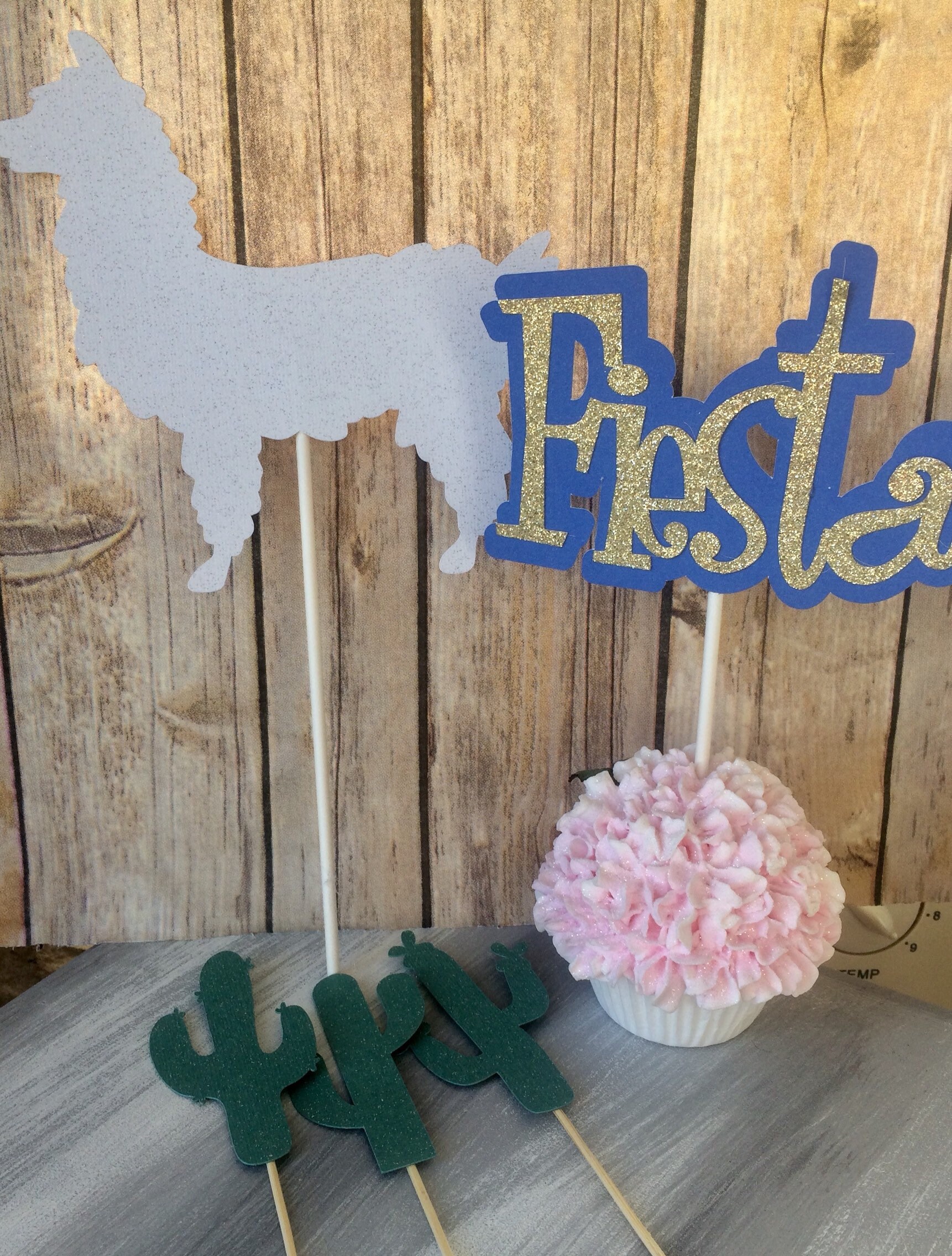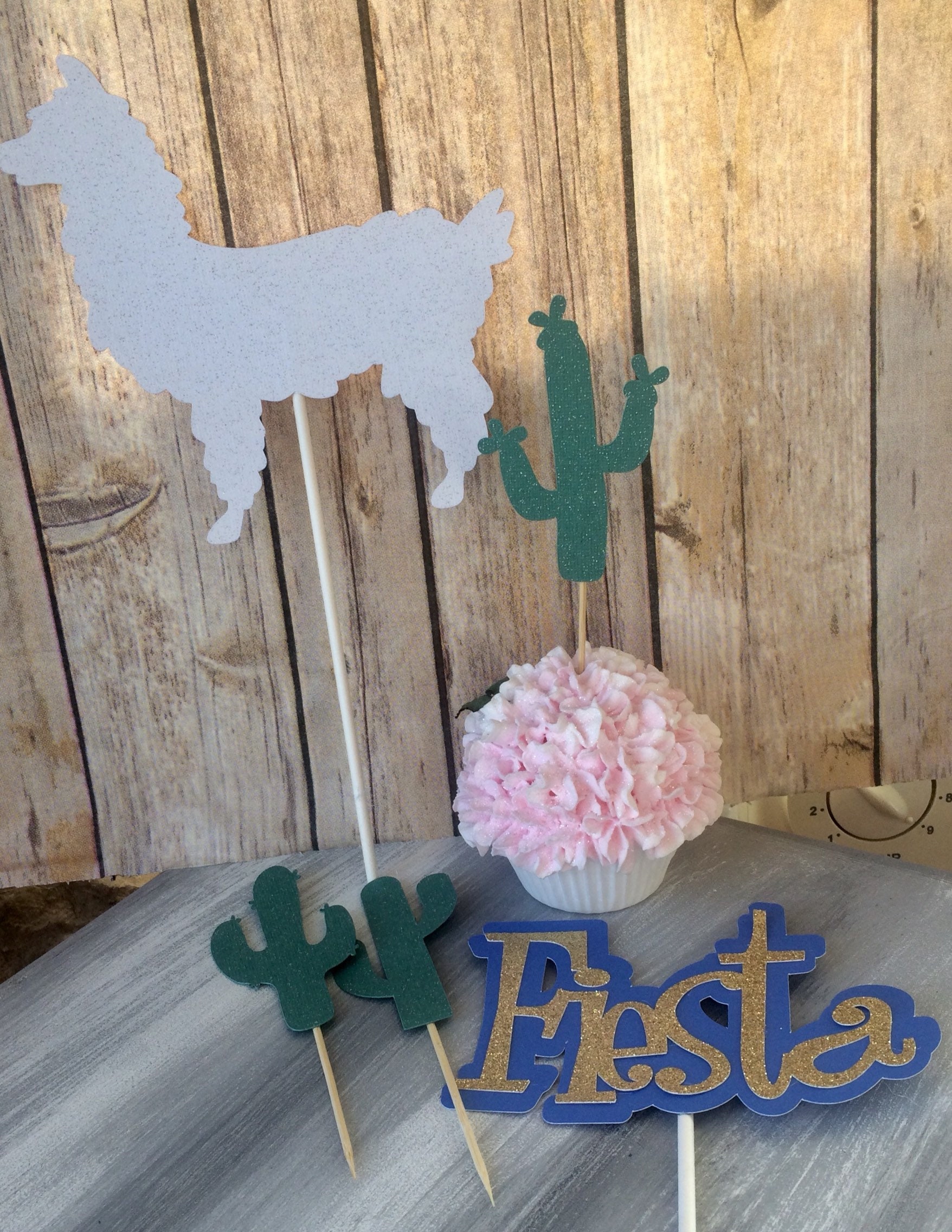Llama Birthday Cake Decoration, Llama Party Decor, Fiesta Cactus and Llama Cake Toppers, Birthday Llama Party,