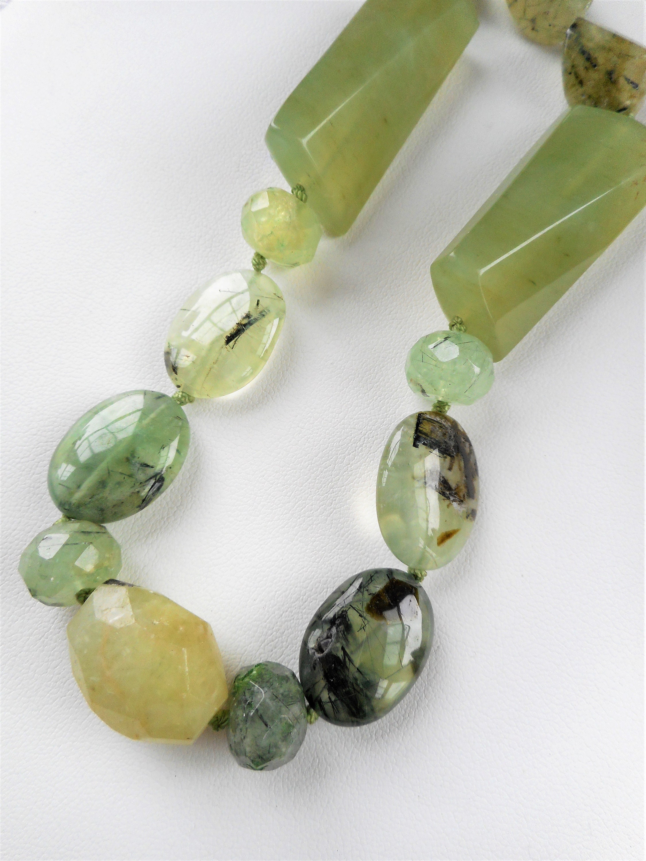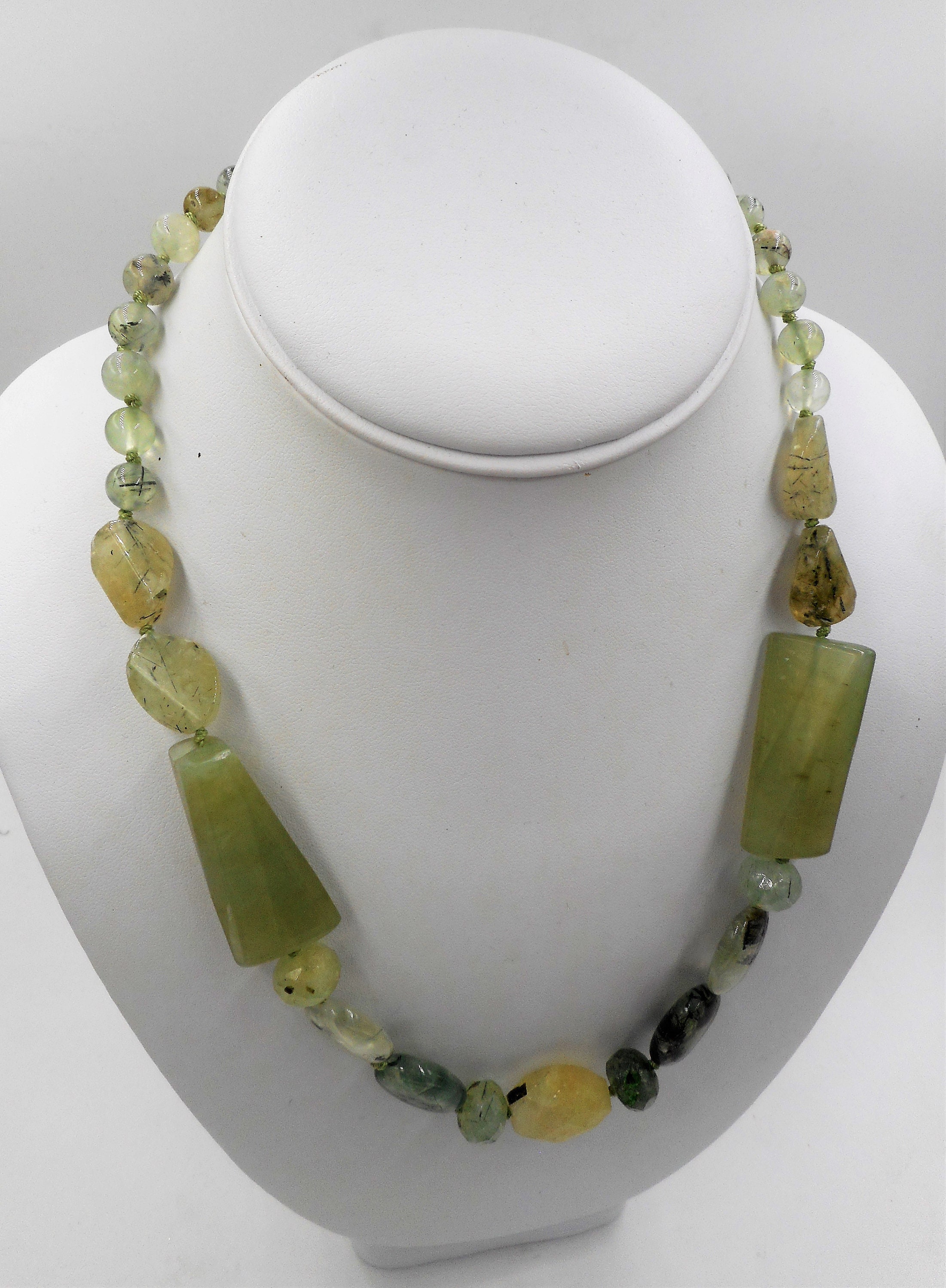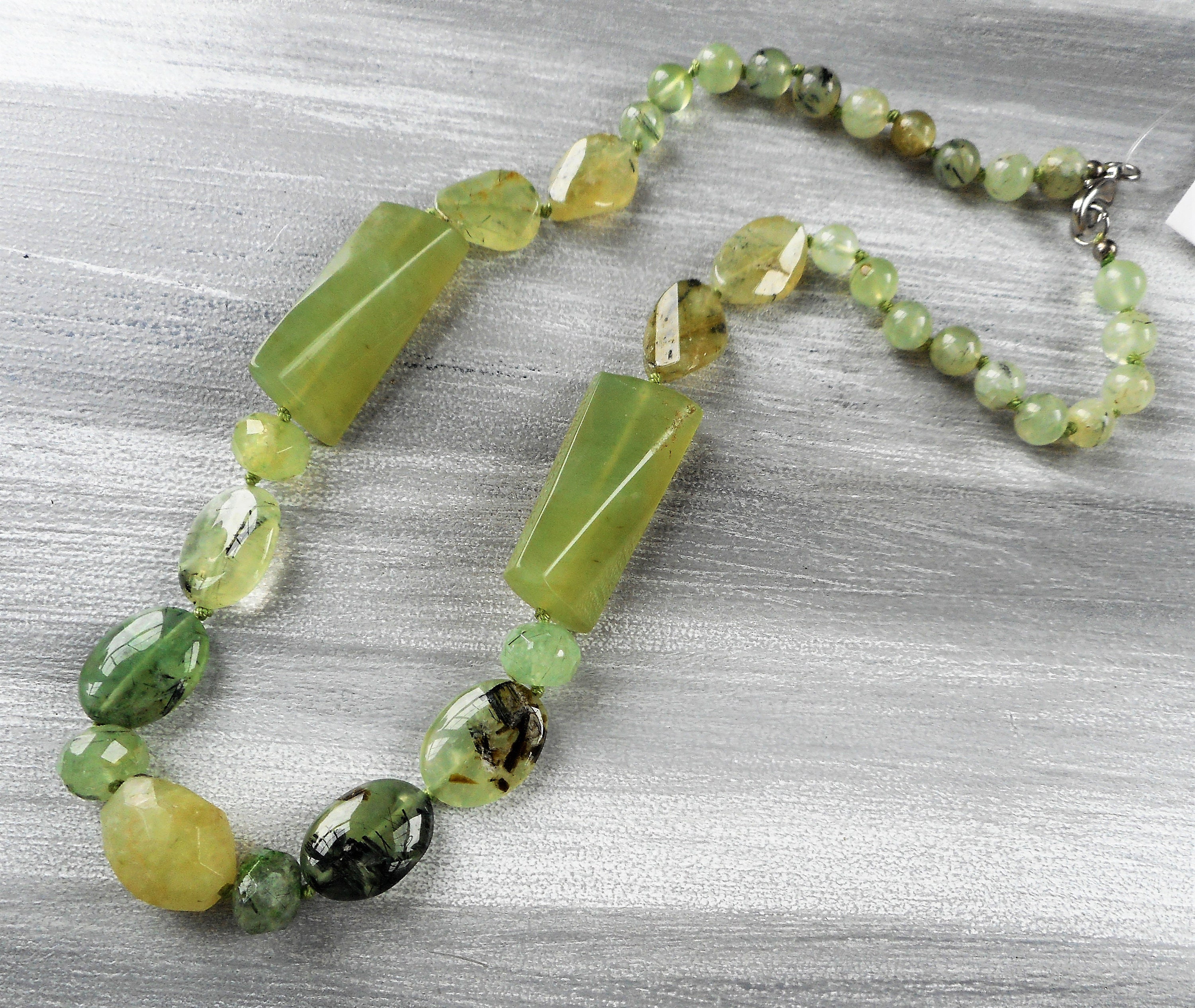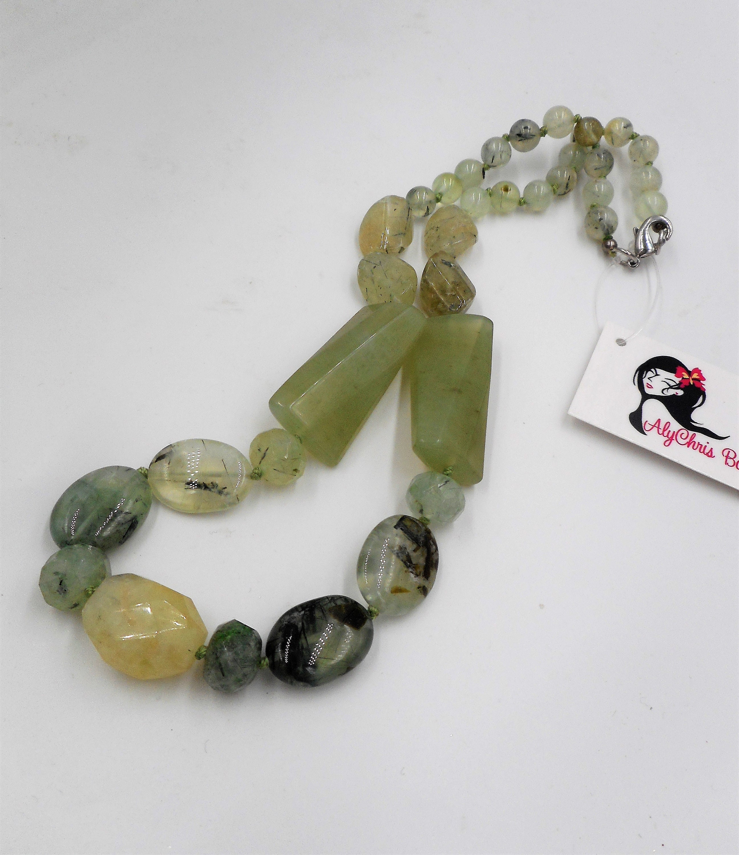 19" L Prehnite and Jade Beaded Chunky Statement Necklace.