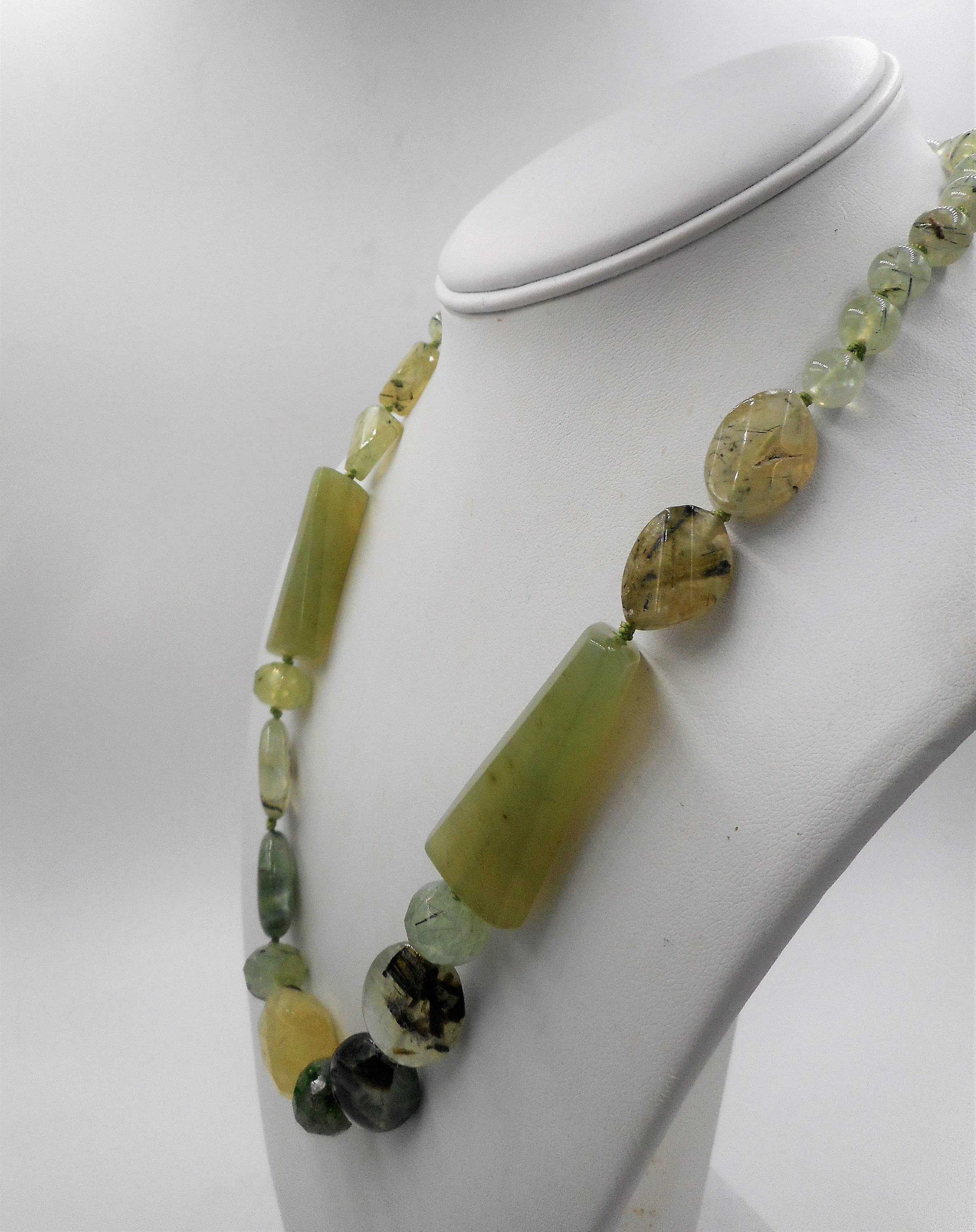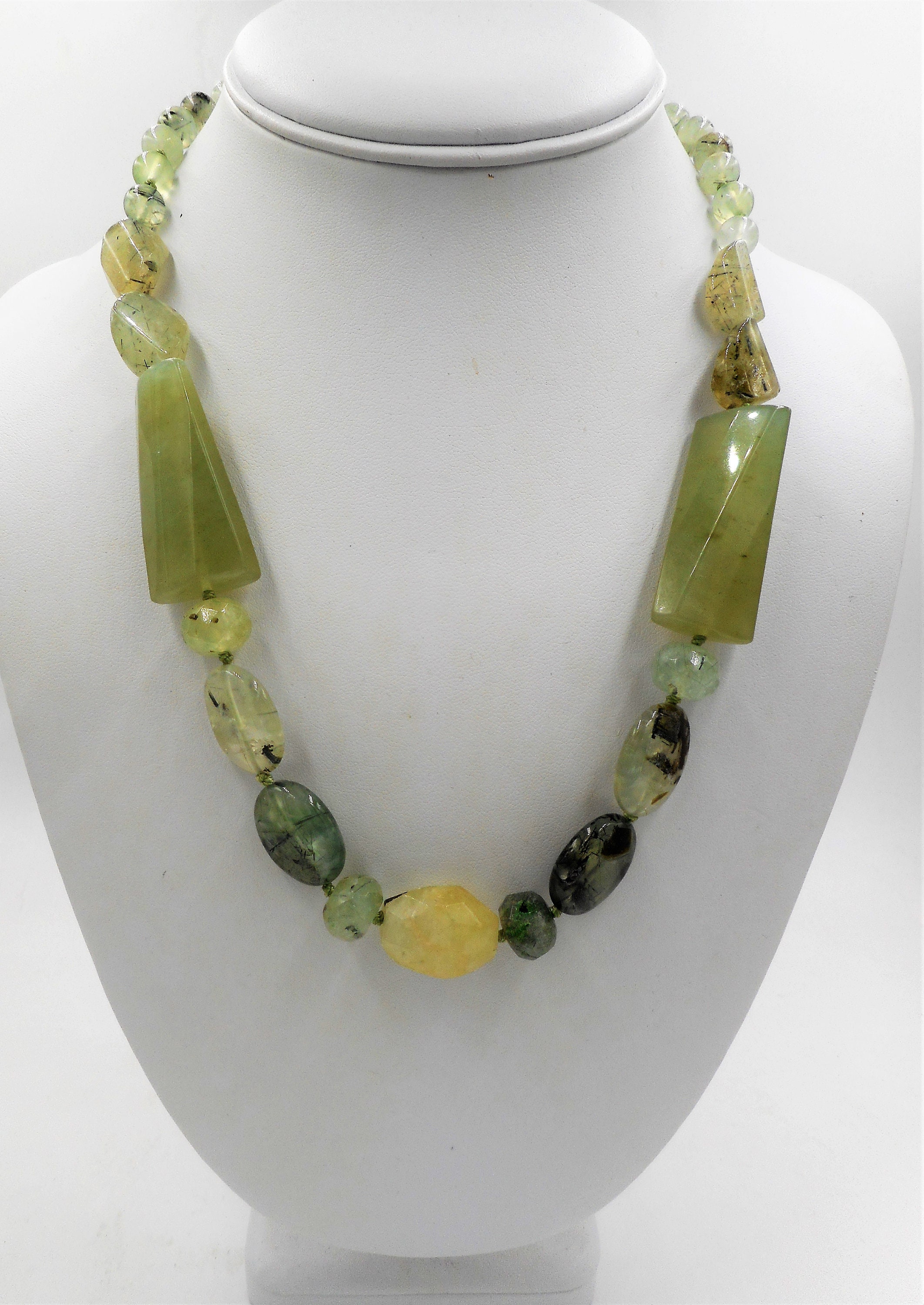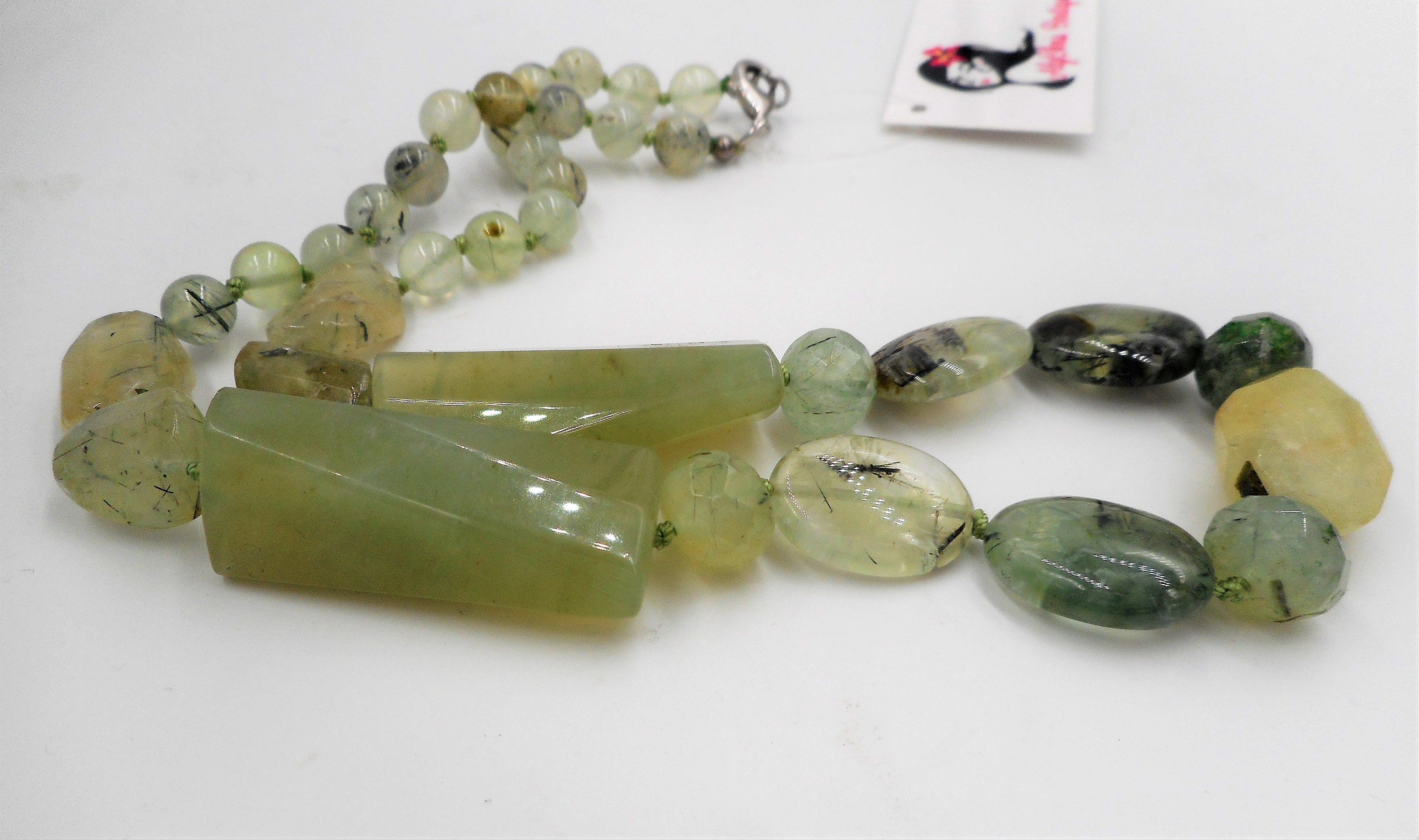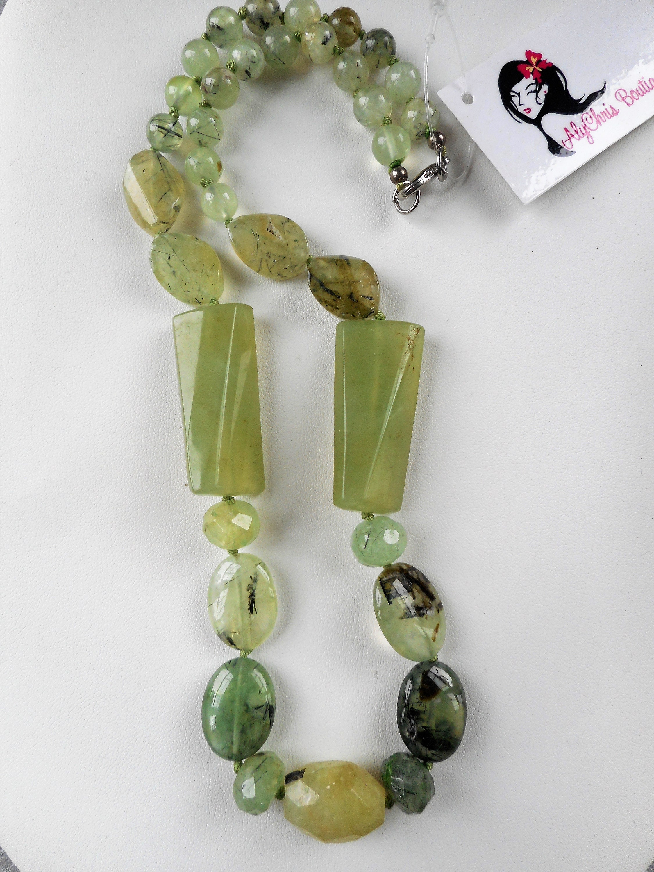 19" L Prehnite and Jade Beaded Chunky Statement Necklace.
