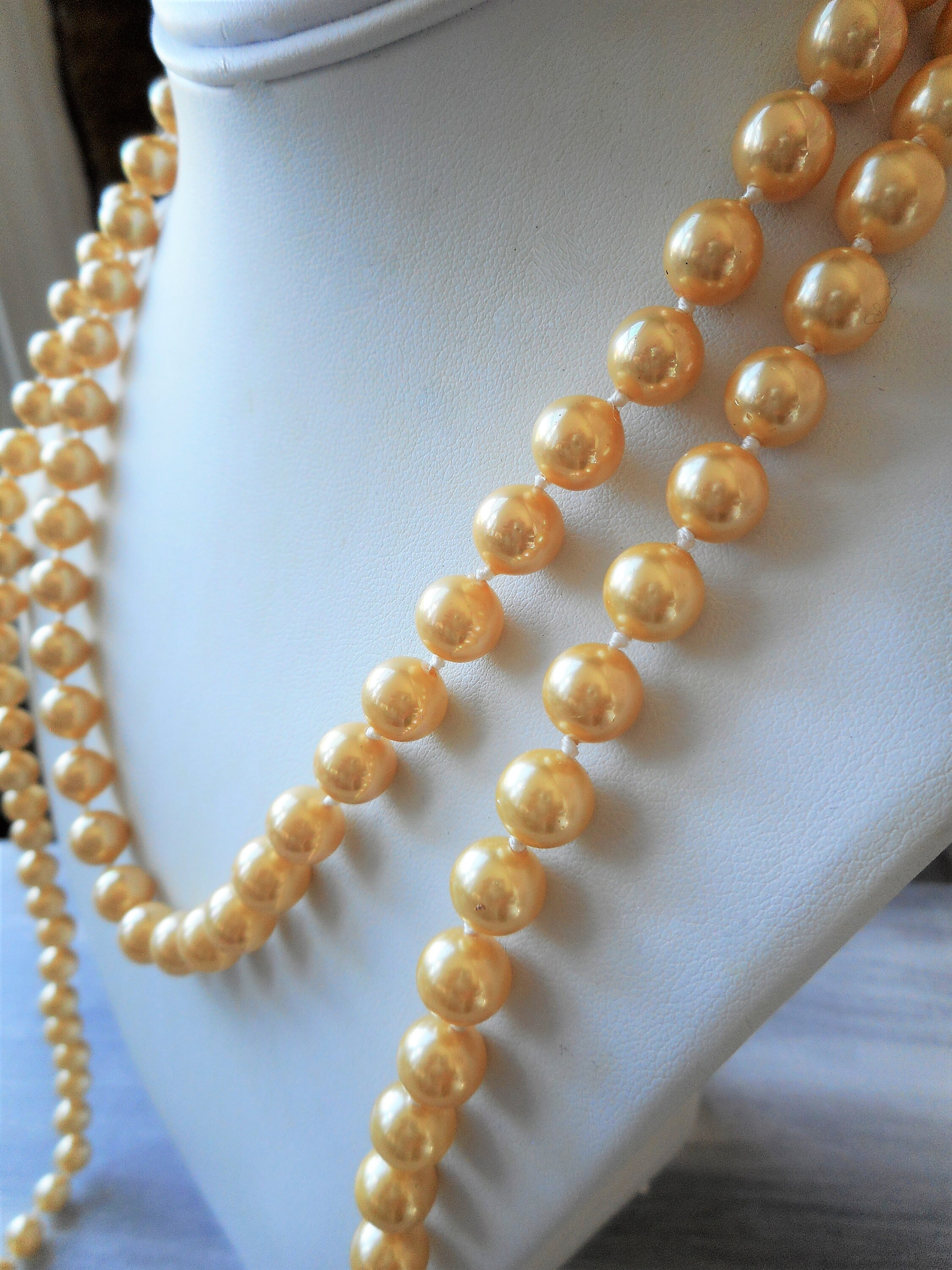 2 Piece Matching Light Gold Faux Pearl Necklaces