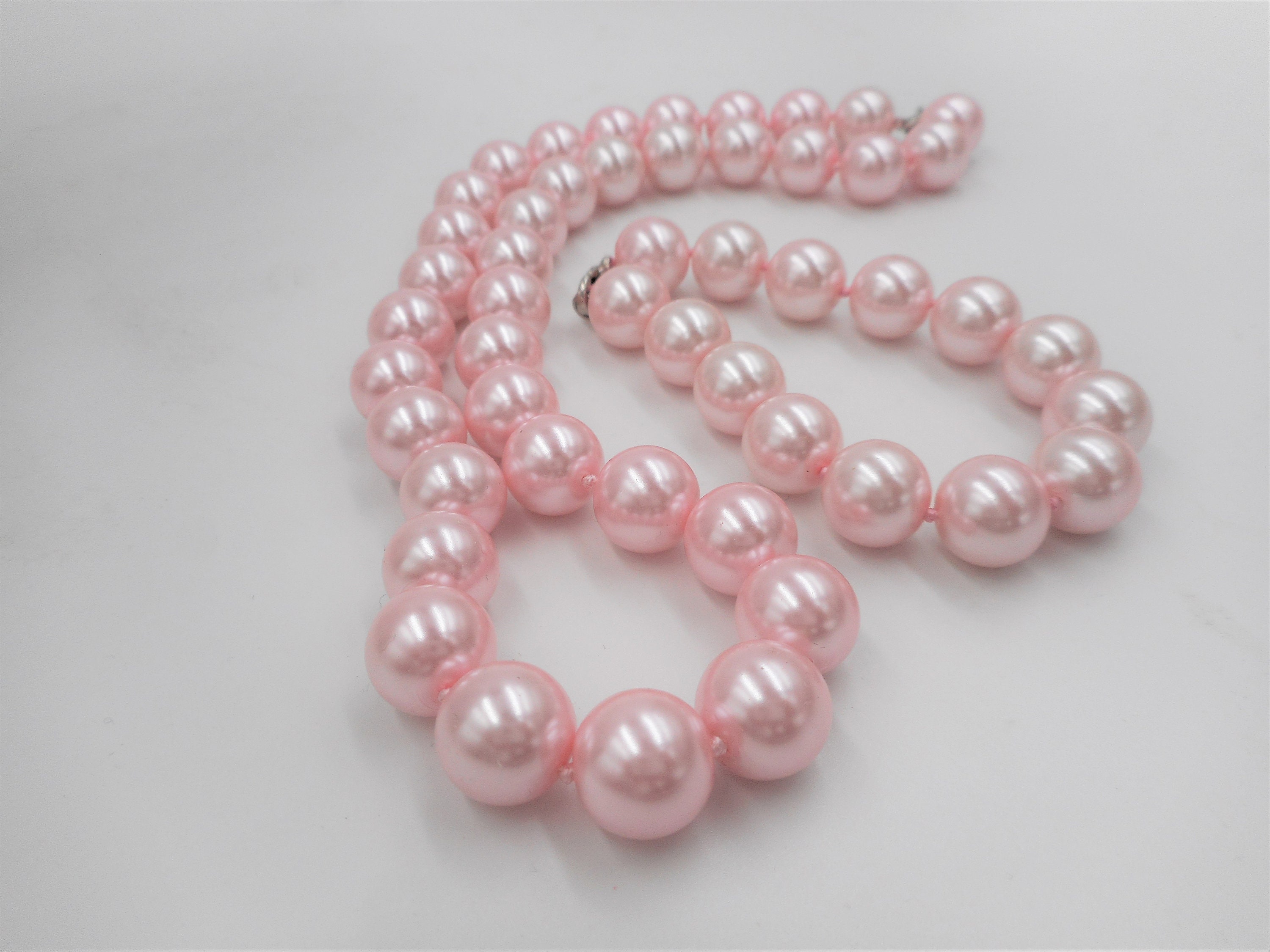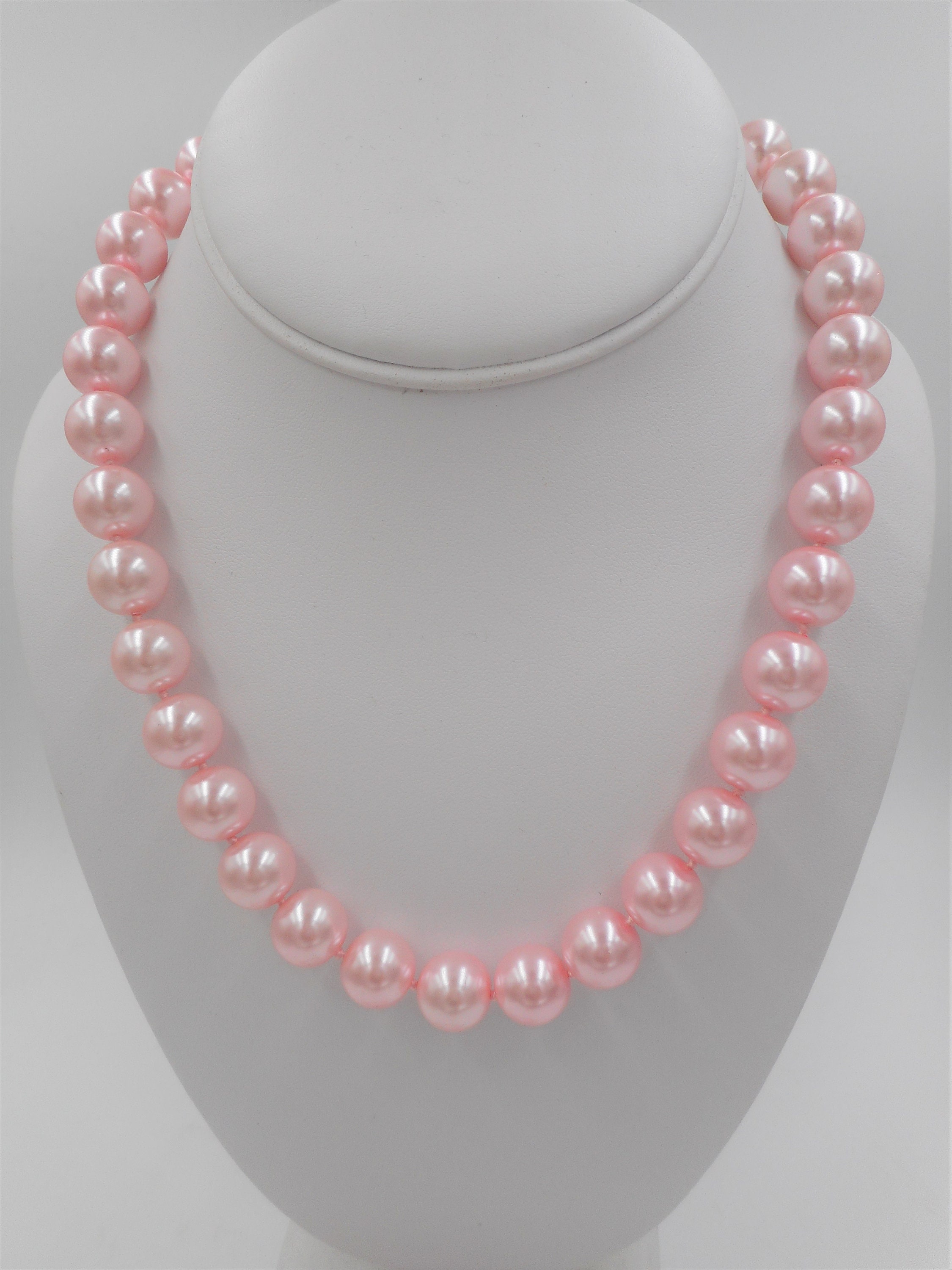 Necklace: 16"L 12mm pink faux pearl beads - lobster clasp closure