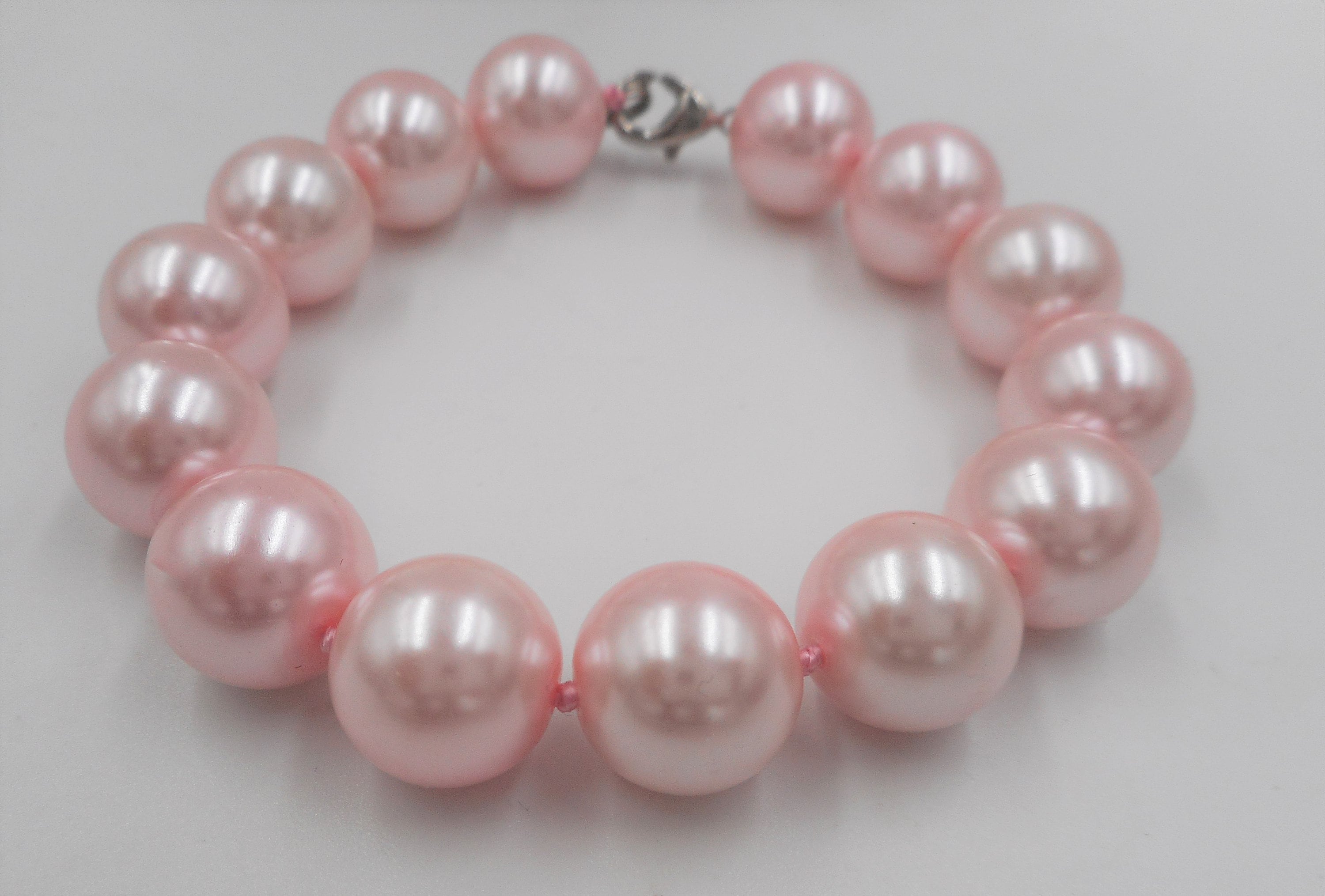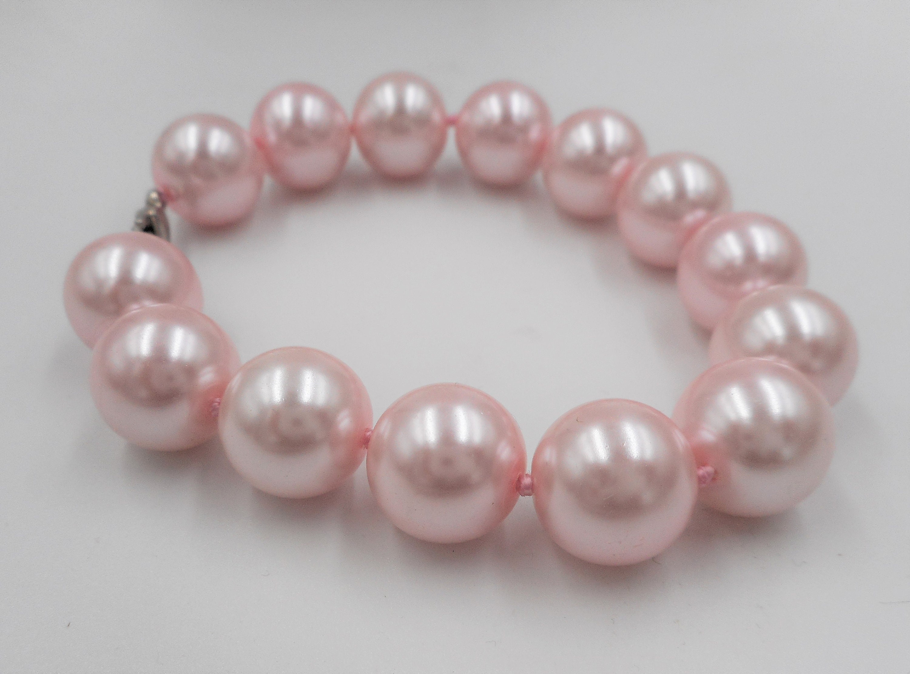 Bracelet: 5.75" 12mm pink faux pearl beads - lobster clasp closure