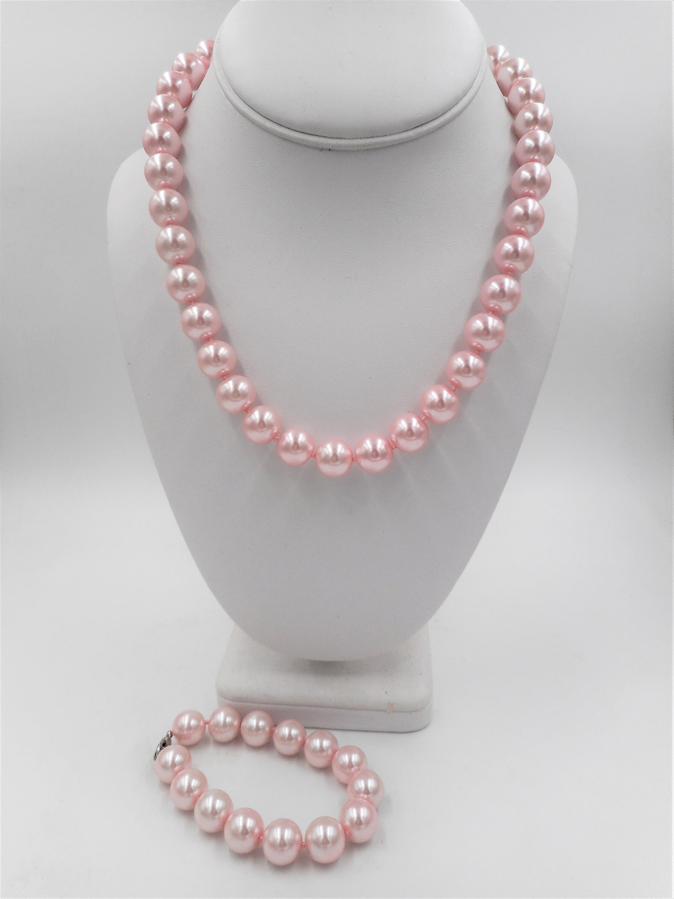 Light Pink Faux Pearl Bead Necklace and Bracelet Set