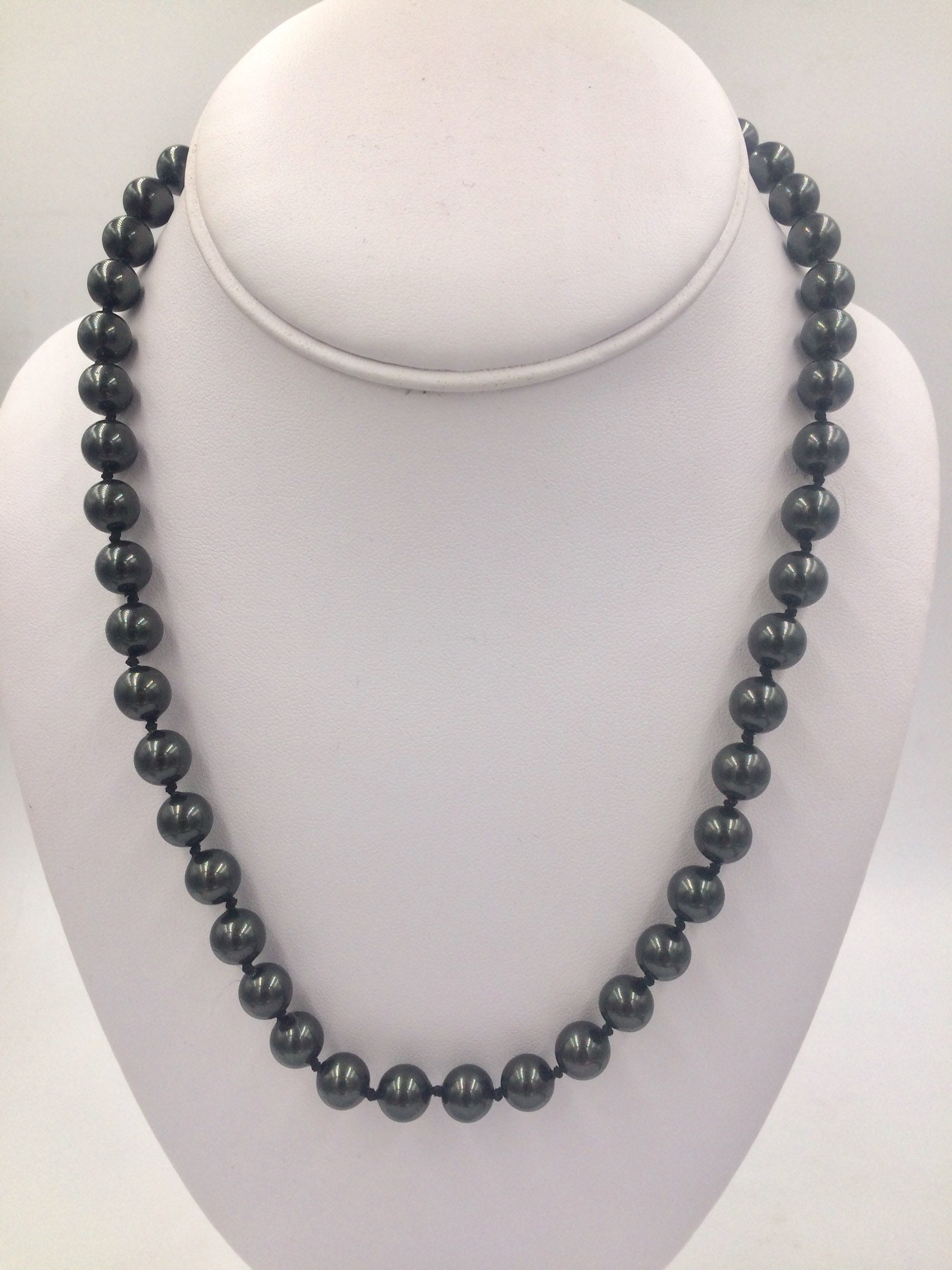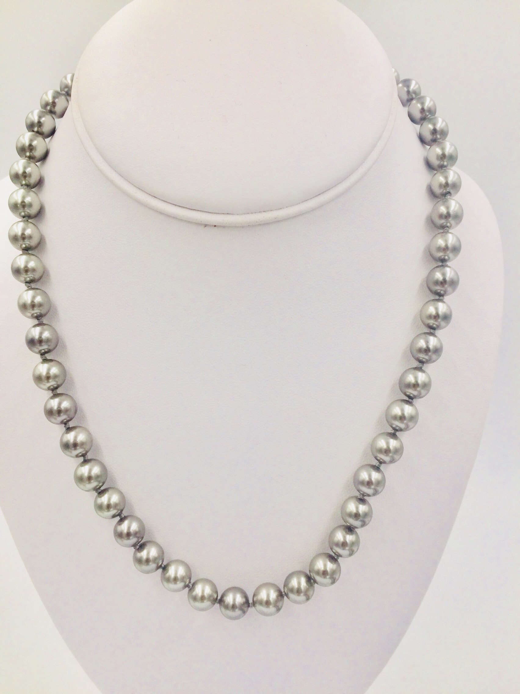 17"L 8mm Silver Grey Beaded Necklace with Box Clasp Closure