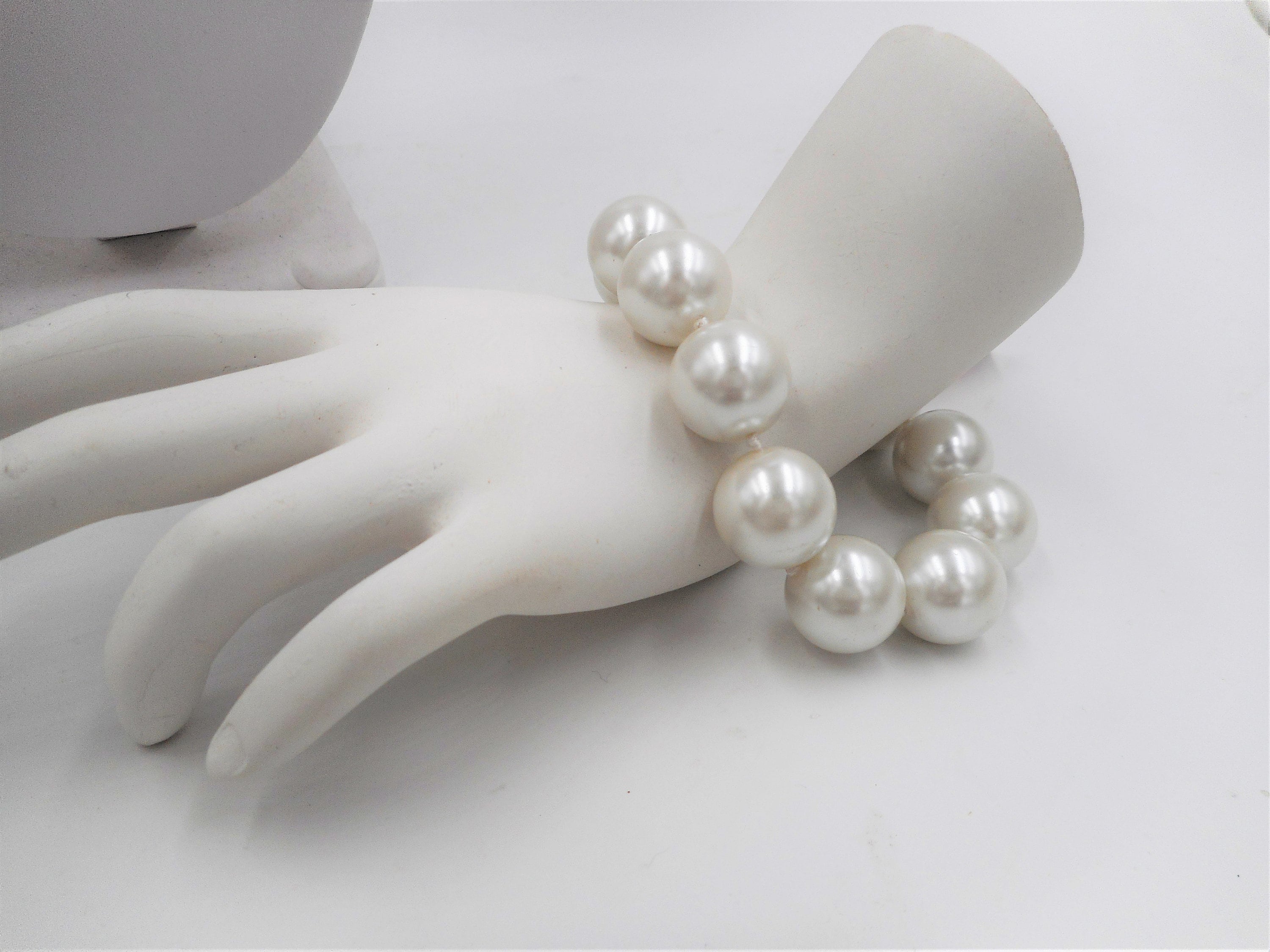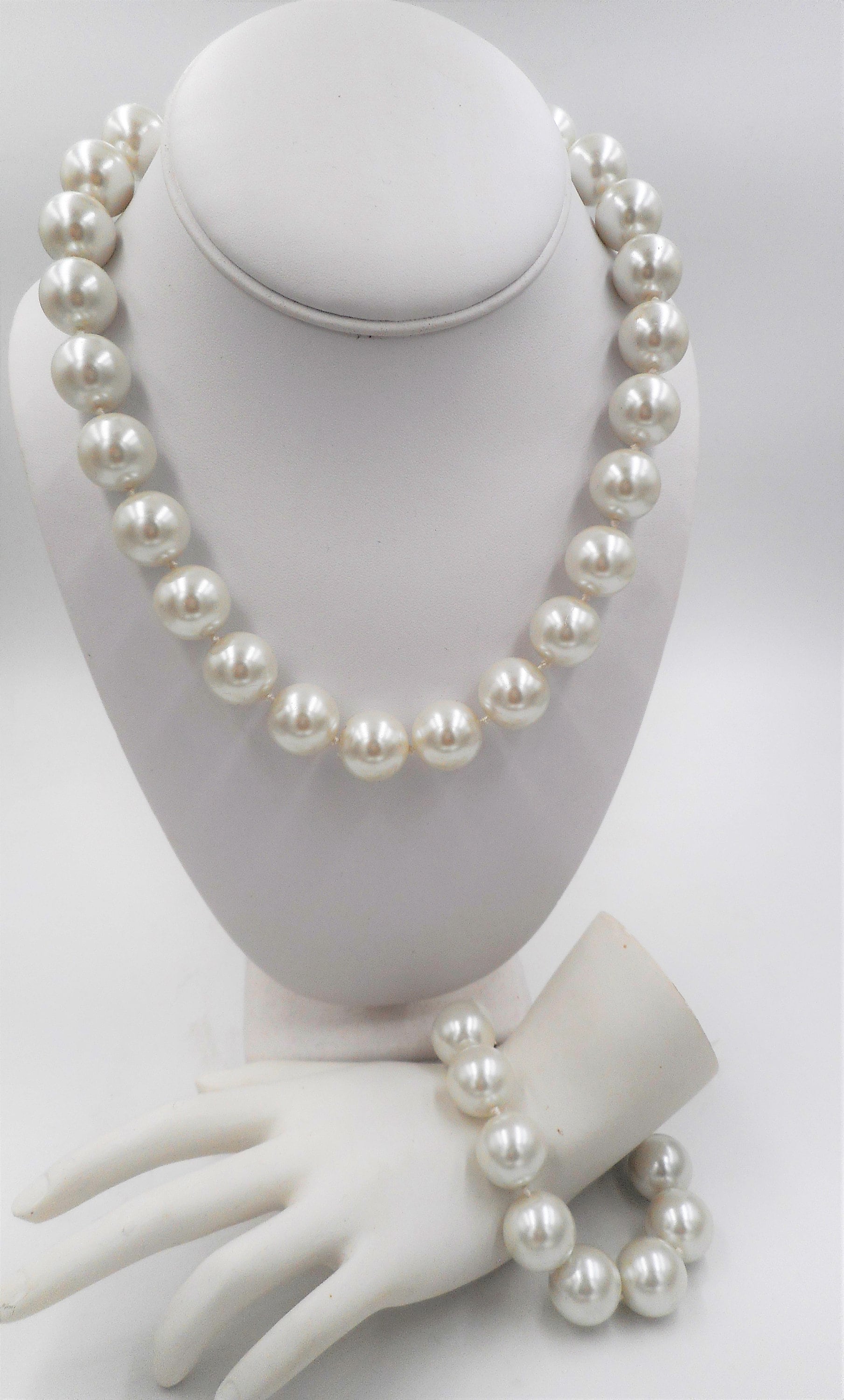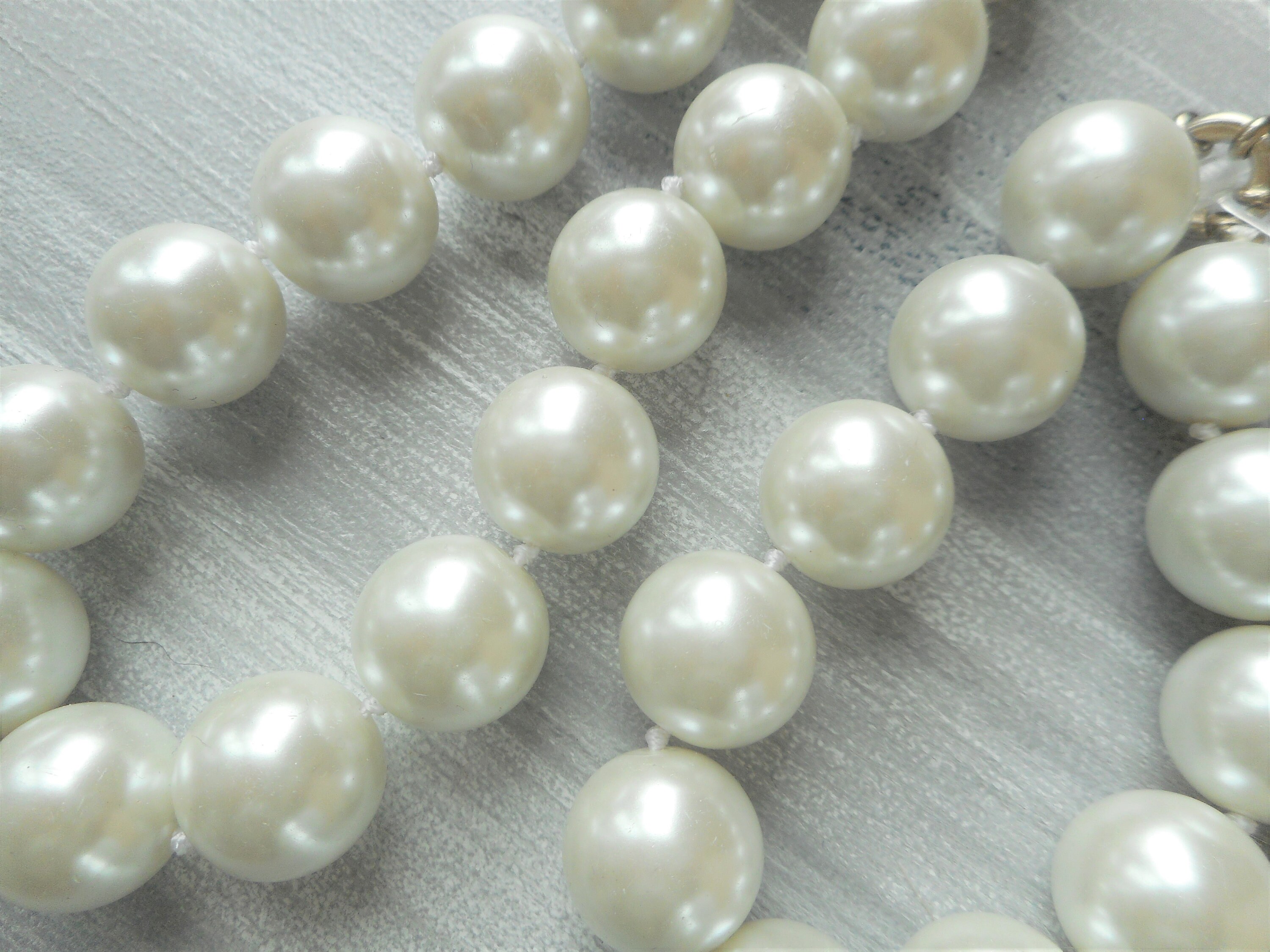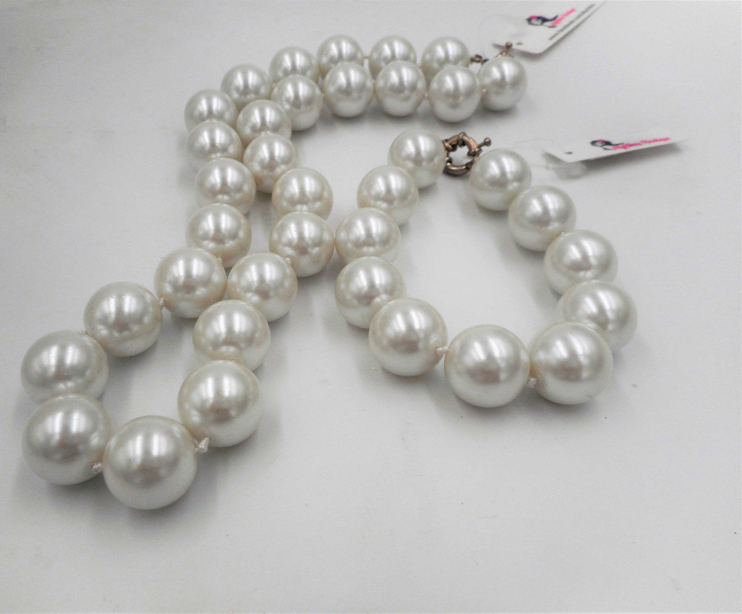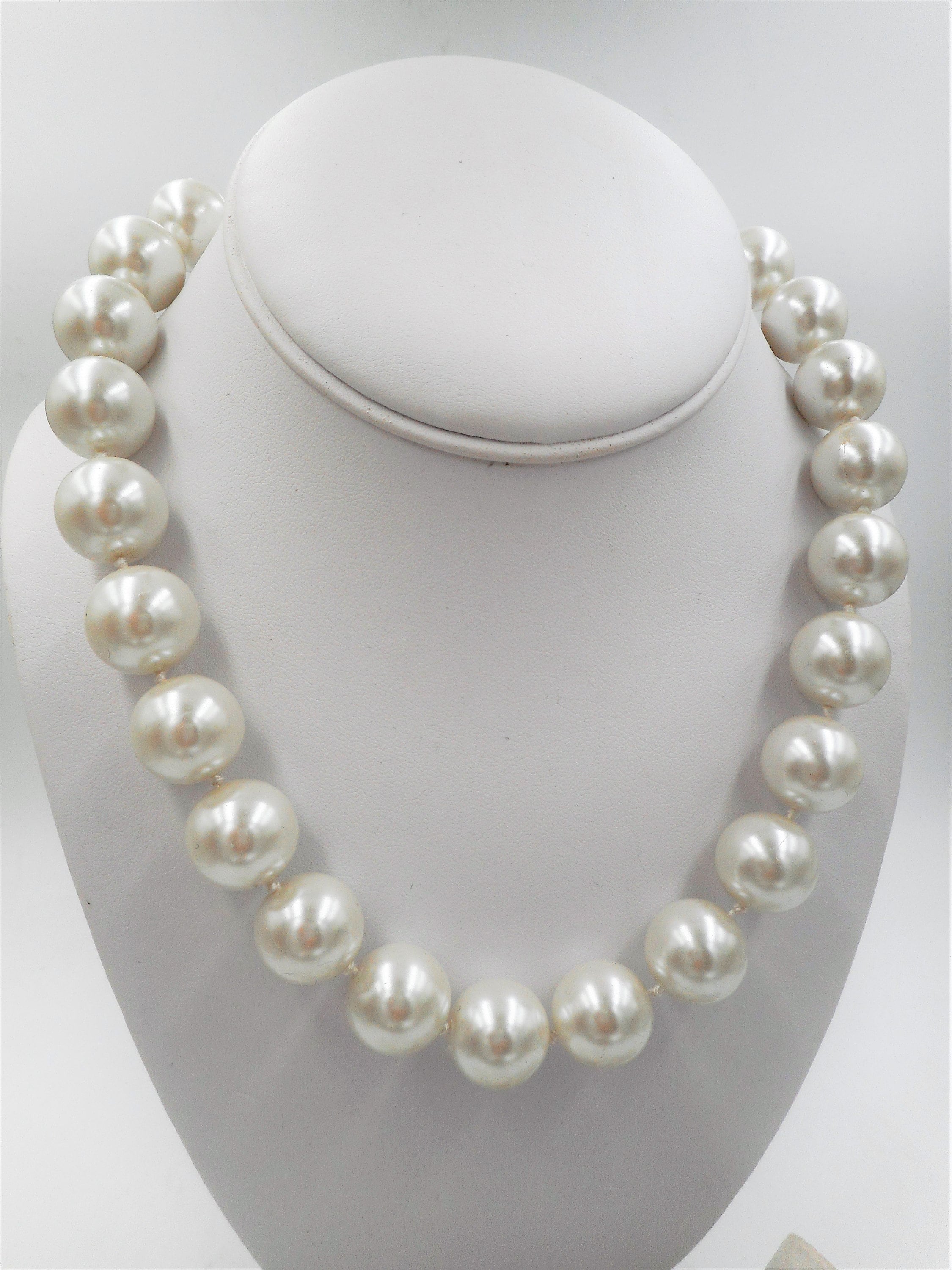Necklace: 16"L 16mm white faux pearl beads - spring ring closure