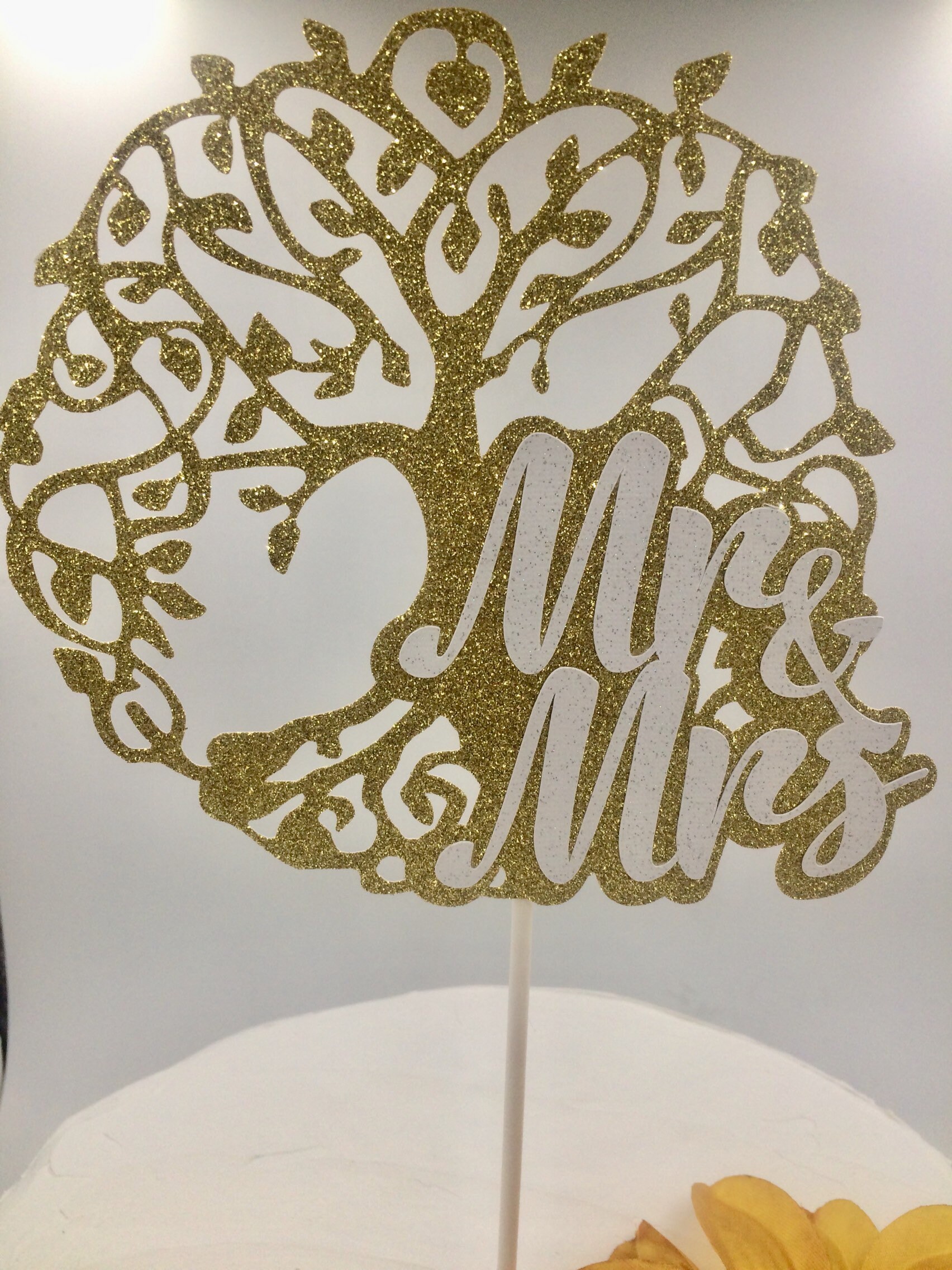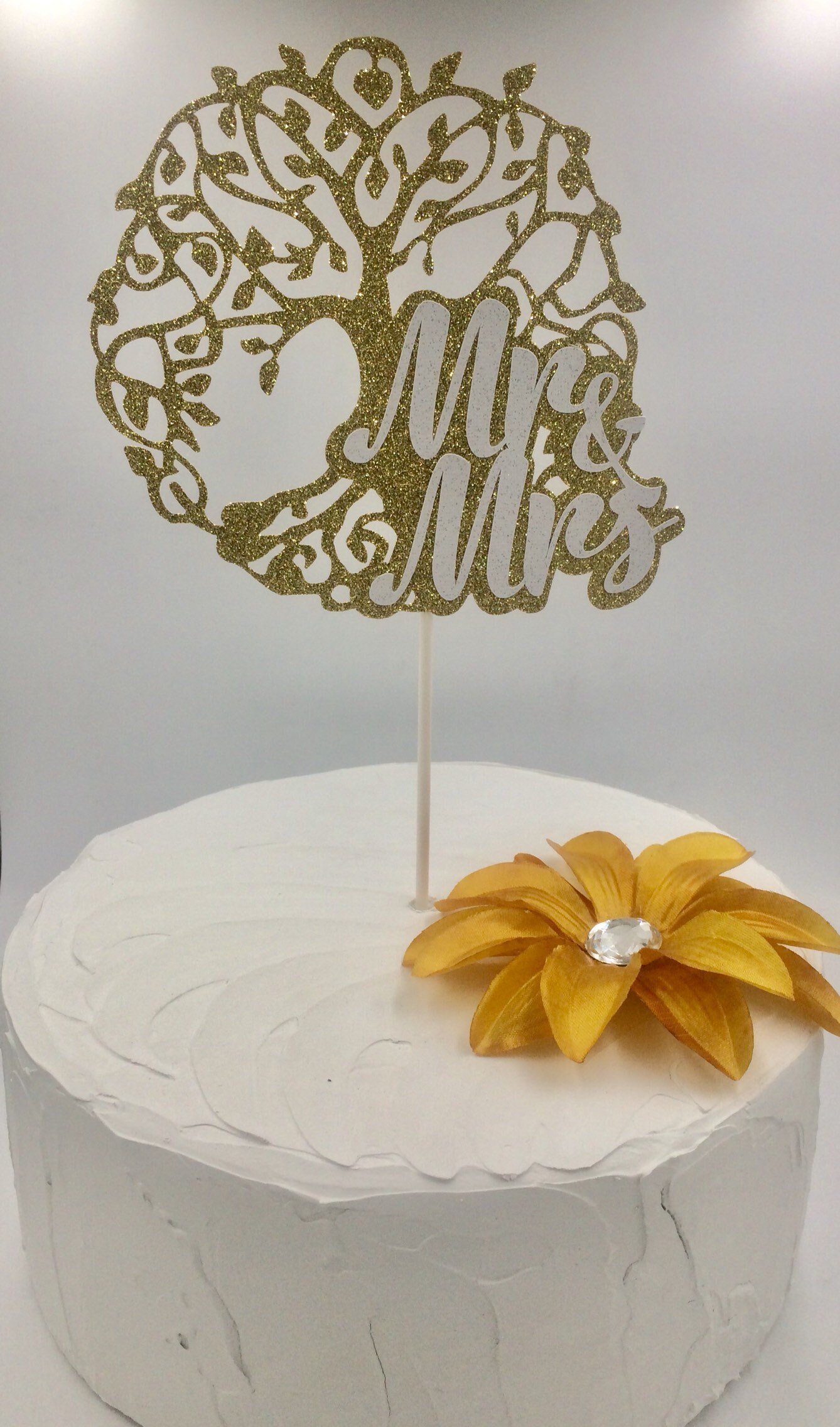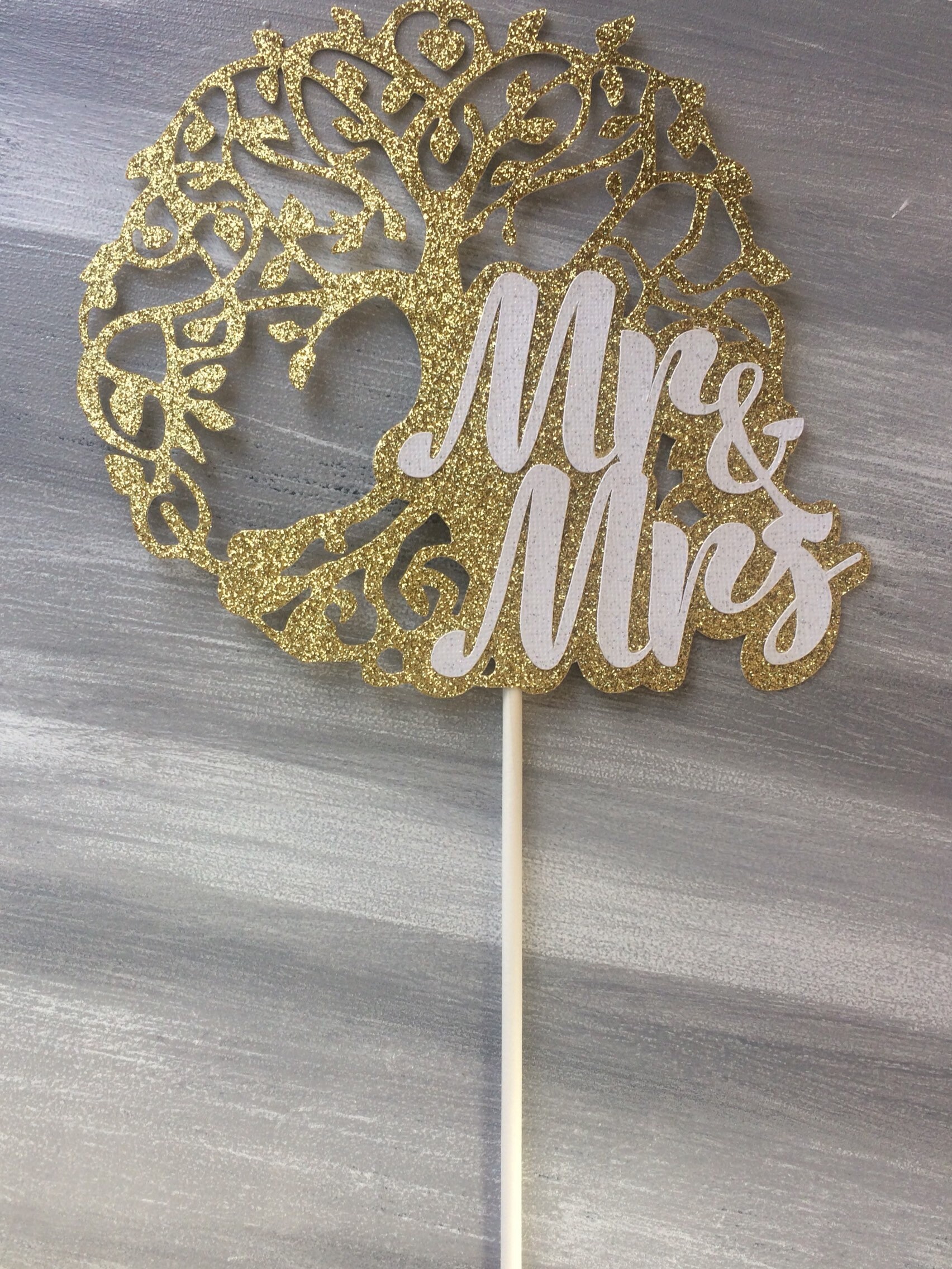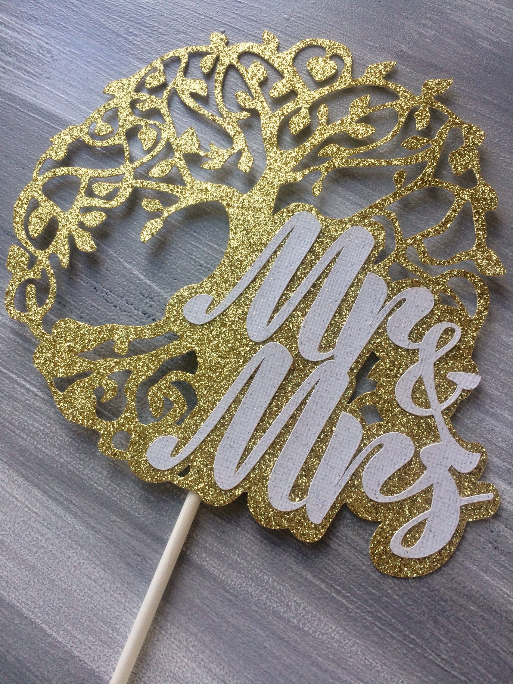 Tree of Life Cake Topper, Mr & Mrs Gold Glitter Cake Topper, Tree Theme, Wedding Cake Topper, Mr and Mrs Cake Topper, Gold Cake Decor