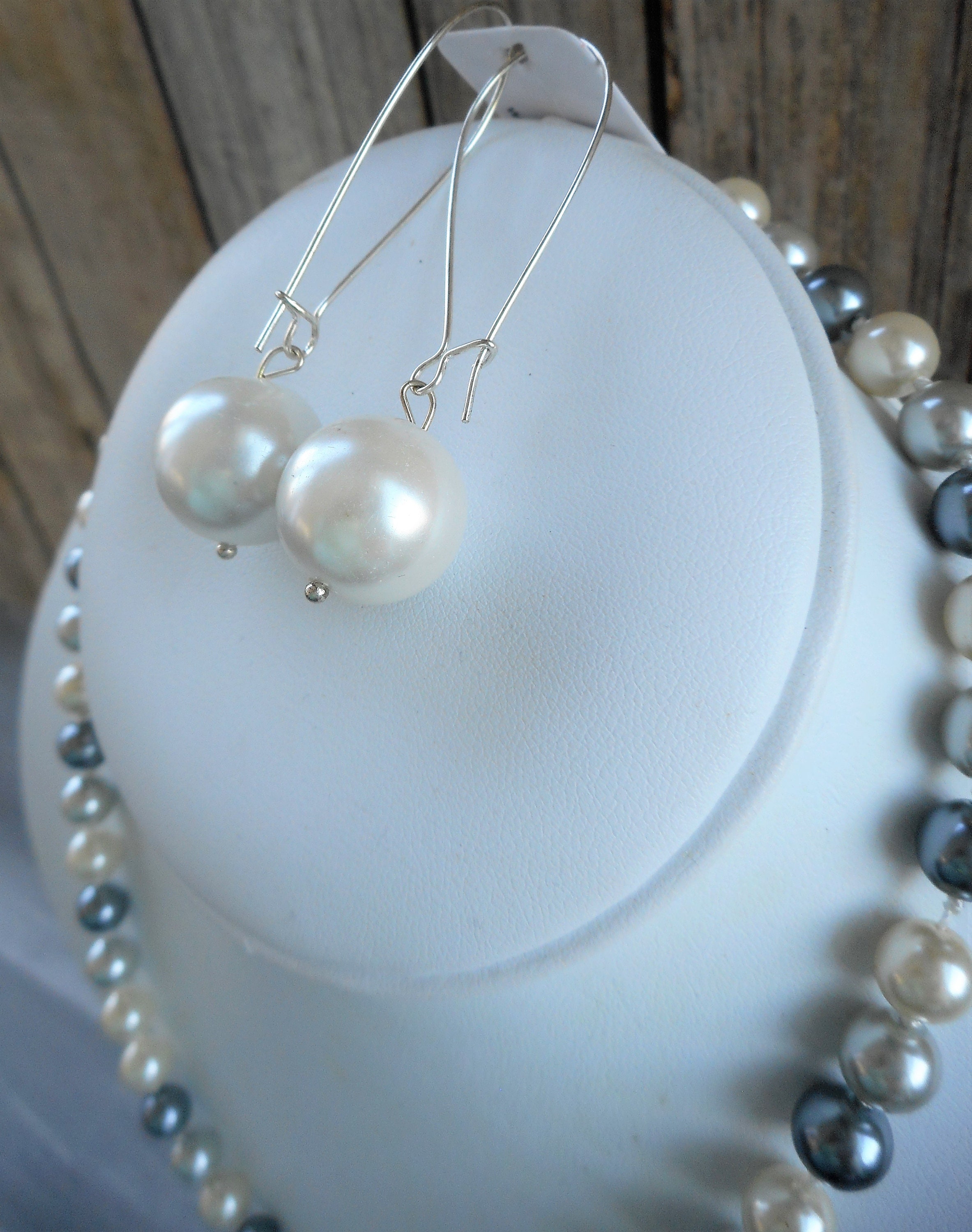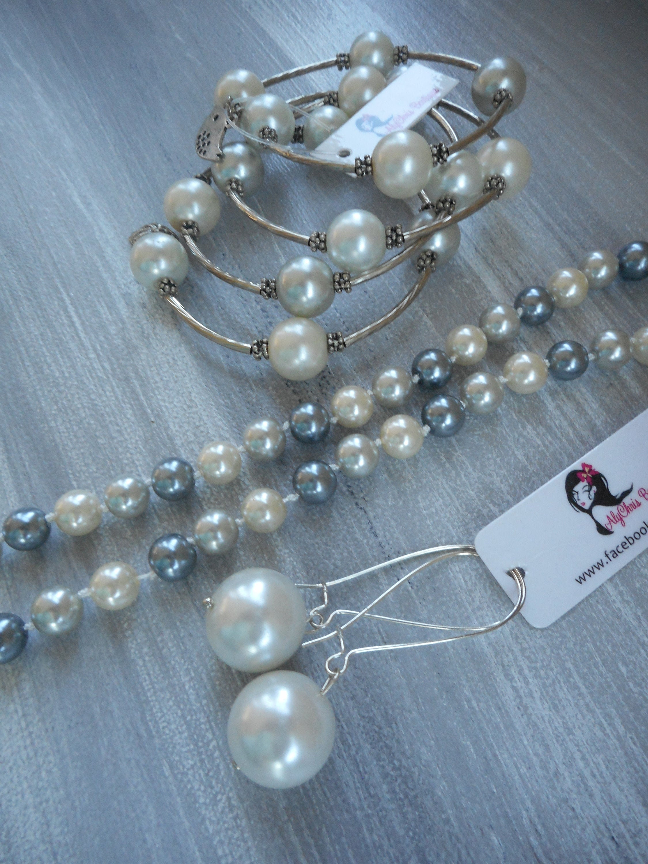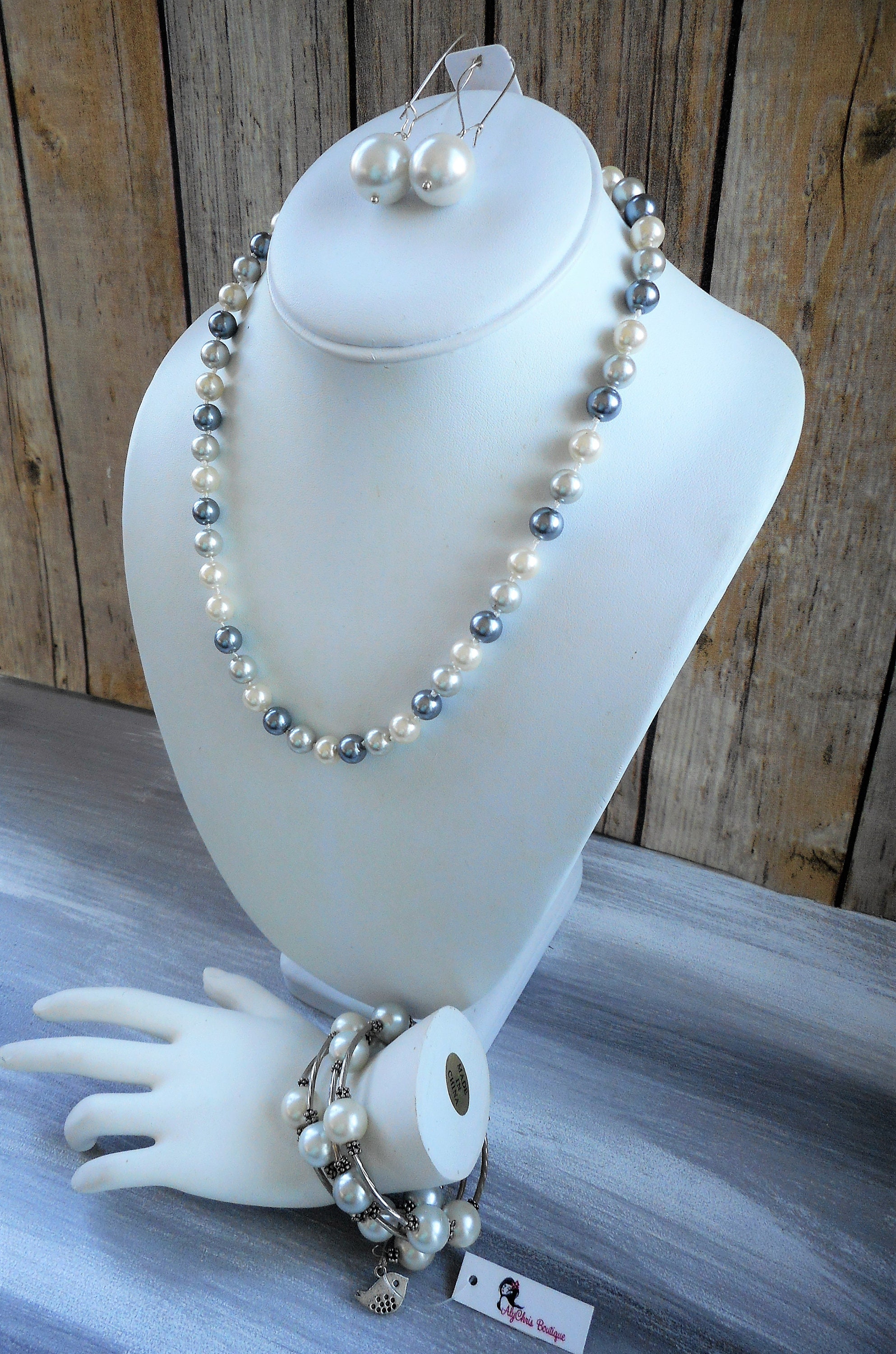 Faux Pearl Necklace Set, Grey and White Pearl Necklace, Bridal Jewelry, Prom Jewelry Set, Pearl Beaded Necklace, Glass Pearl Jewelry