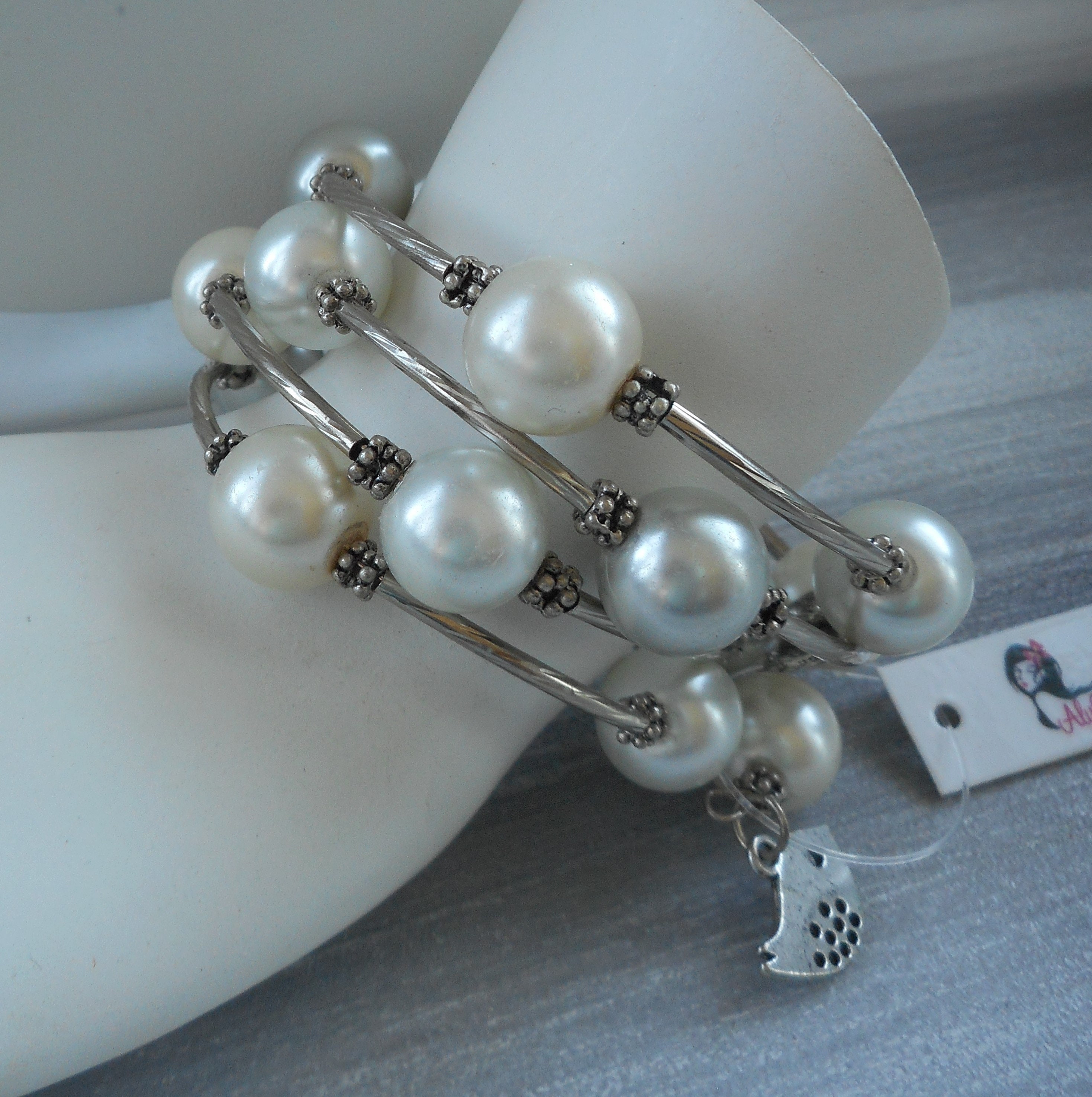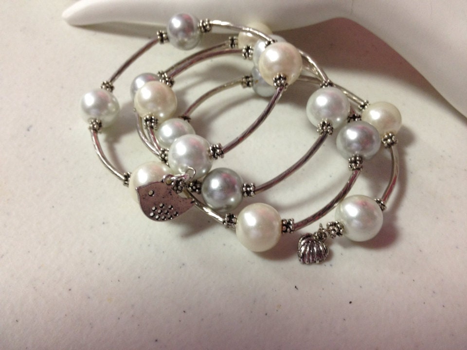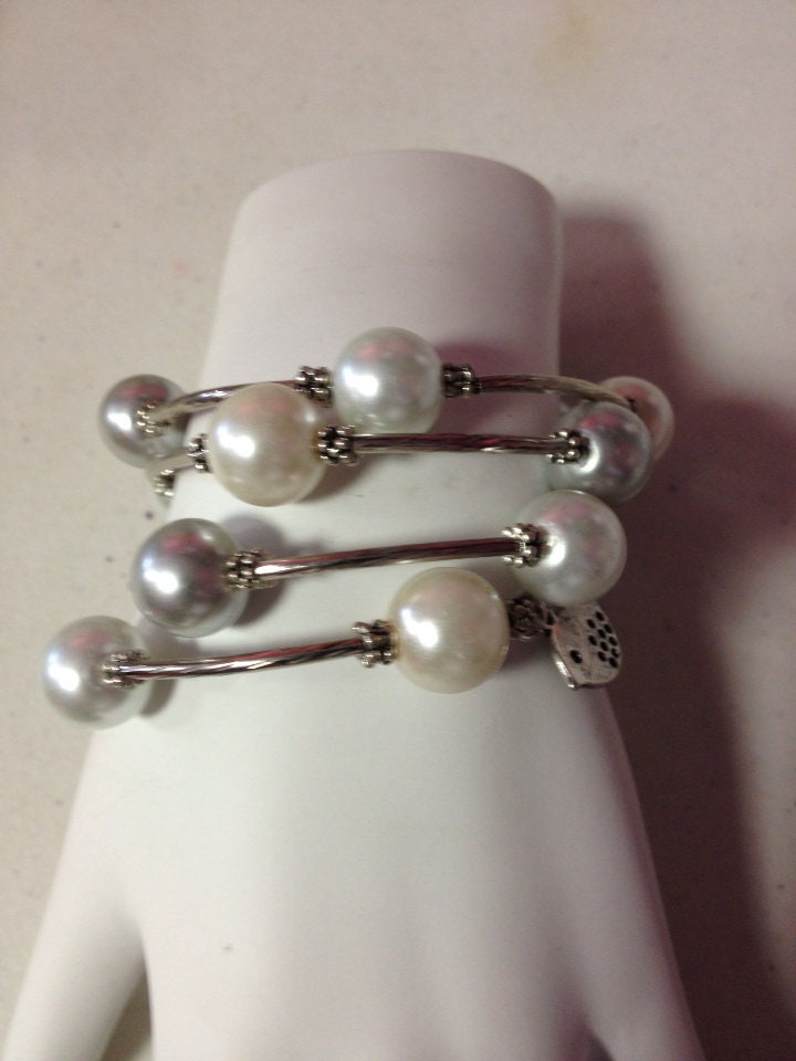 Wire Wrap Bracelet: 12mm beads in white & light grey