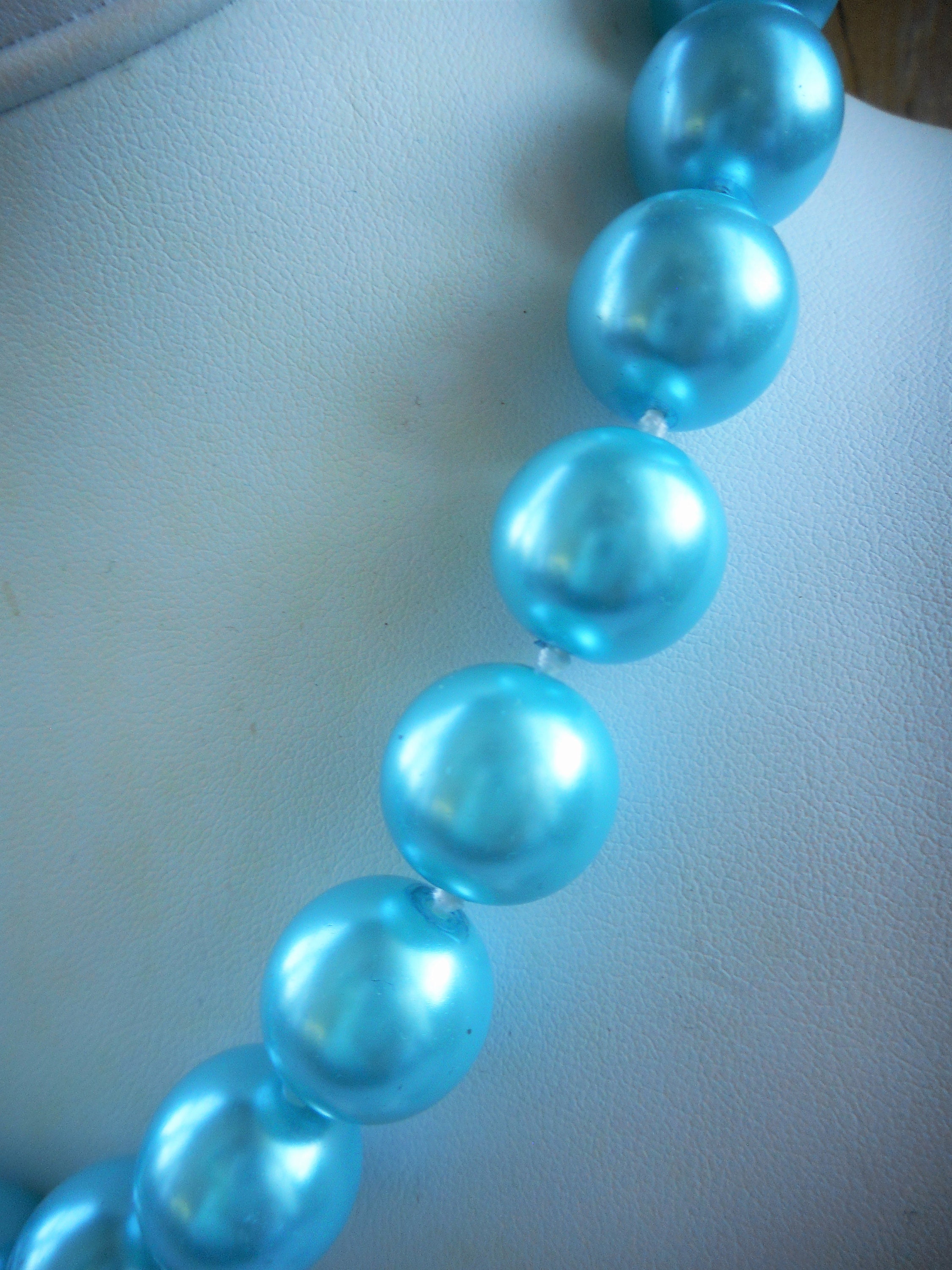 Necklace: 16"L 16mm beads in Metallic Robin Egg blue