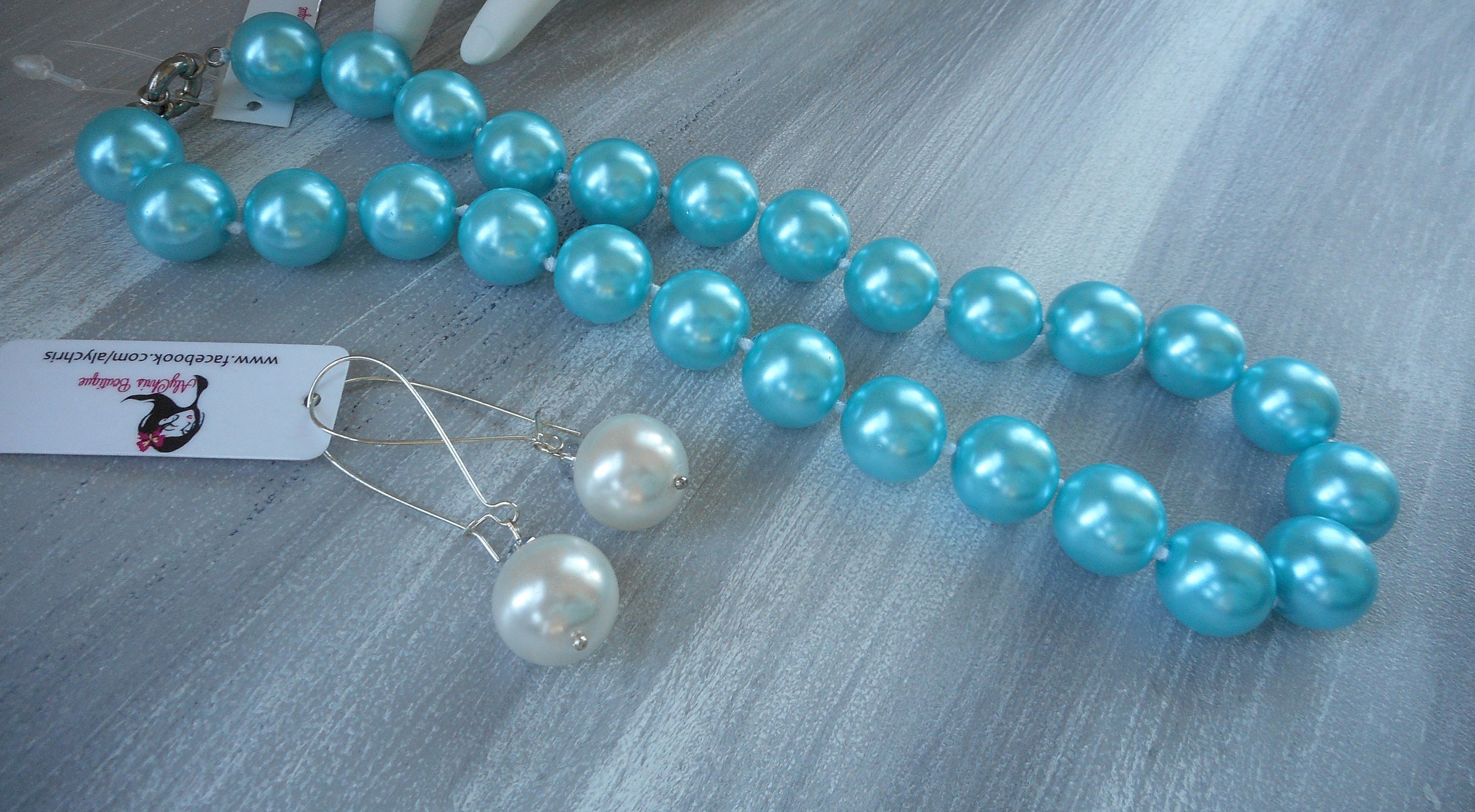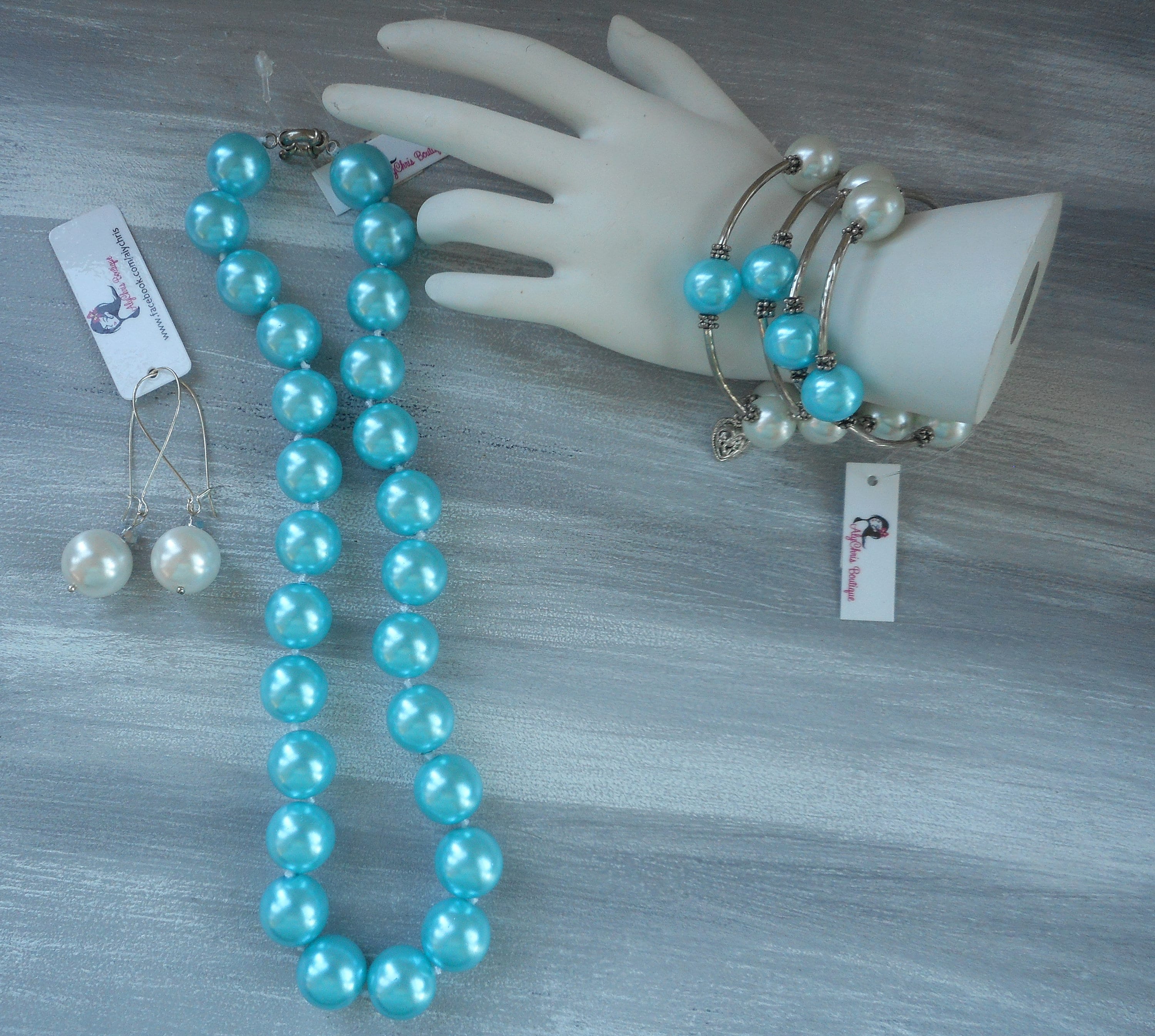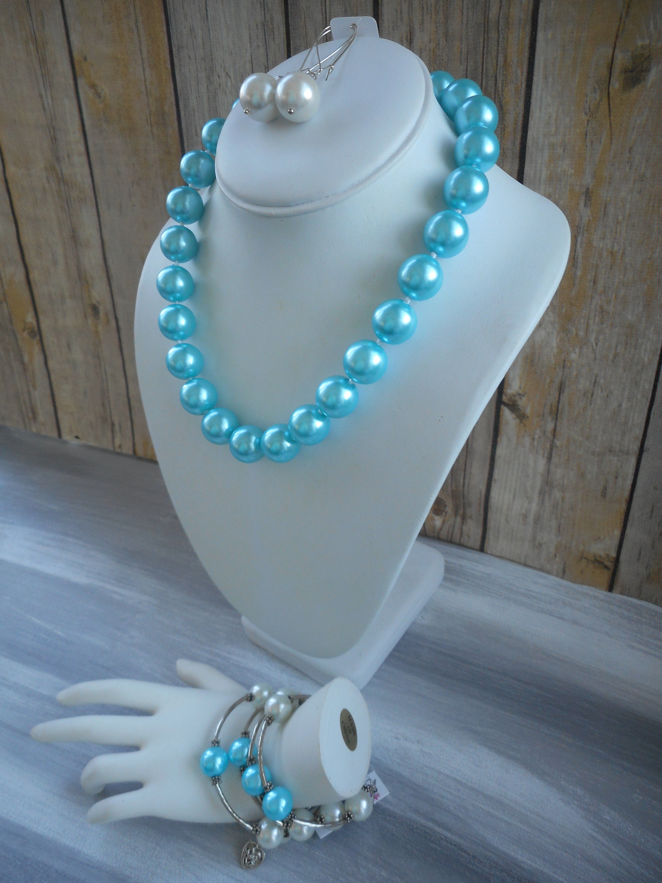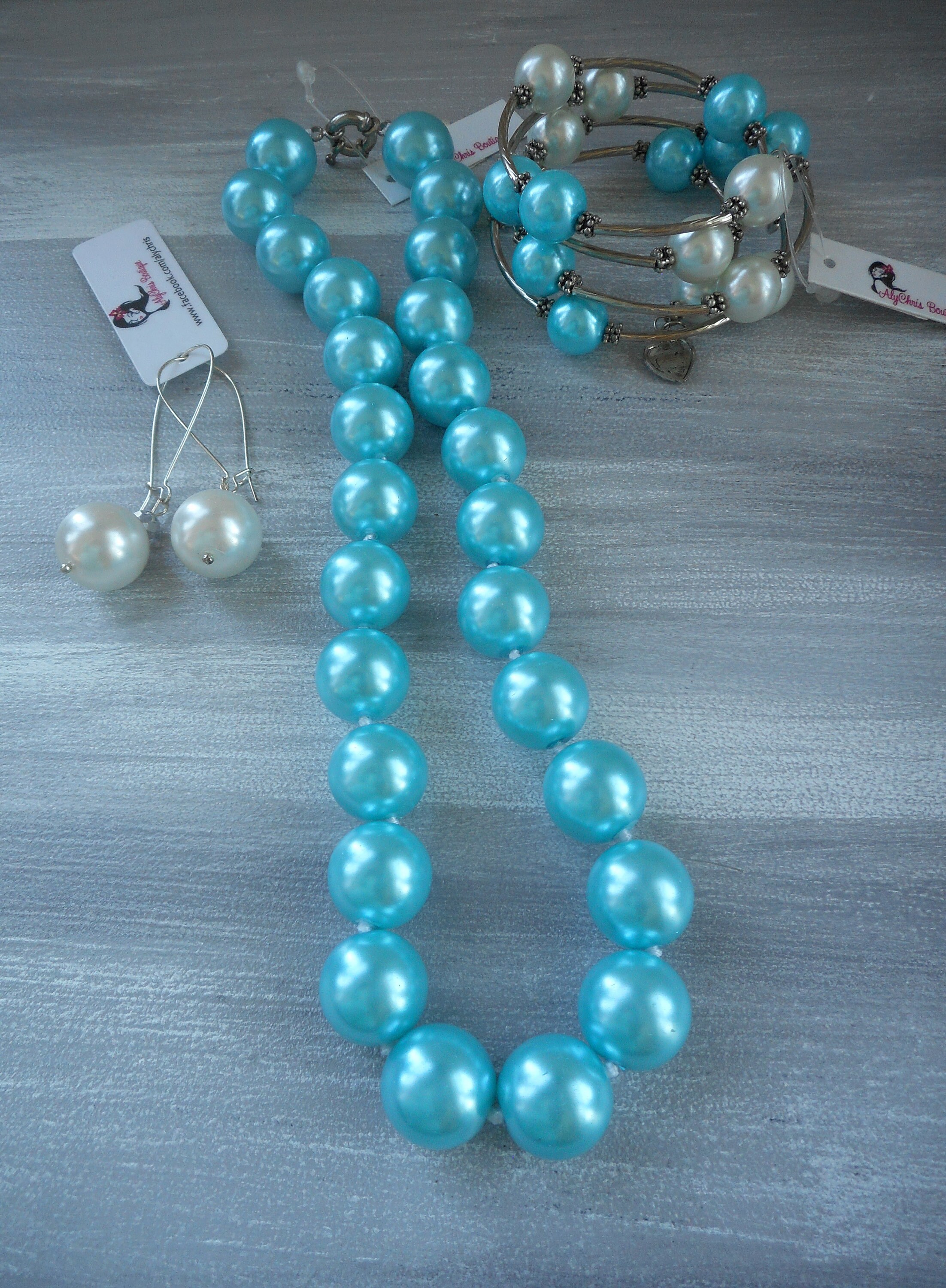 Faux Pearl Necklace Set, Metallic Robin Egg Blue Pearl Necklace, Bridal Jewelry, Prom Jewelry Set, Pearl Beaded Necklace, Pearl Jewelry