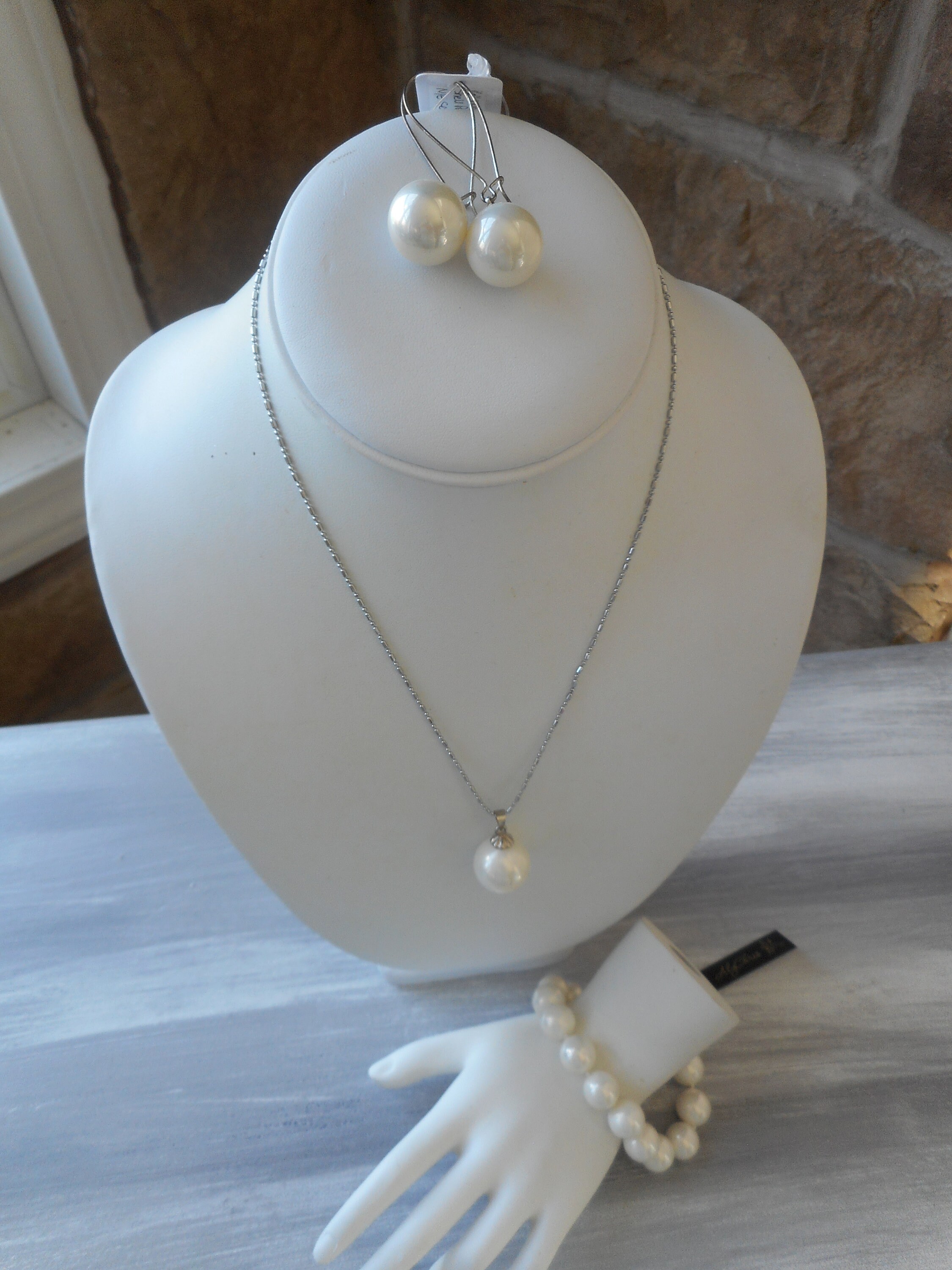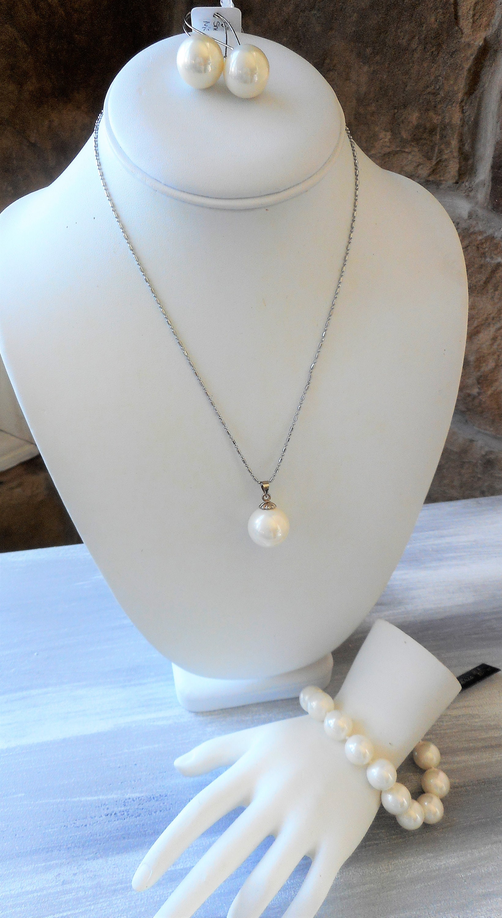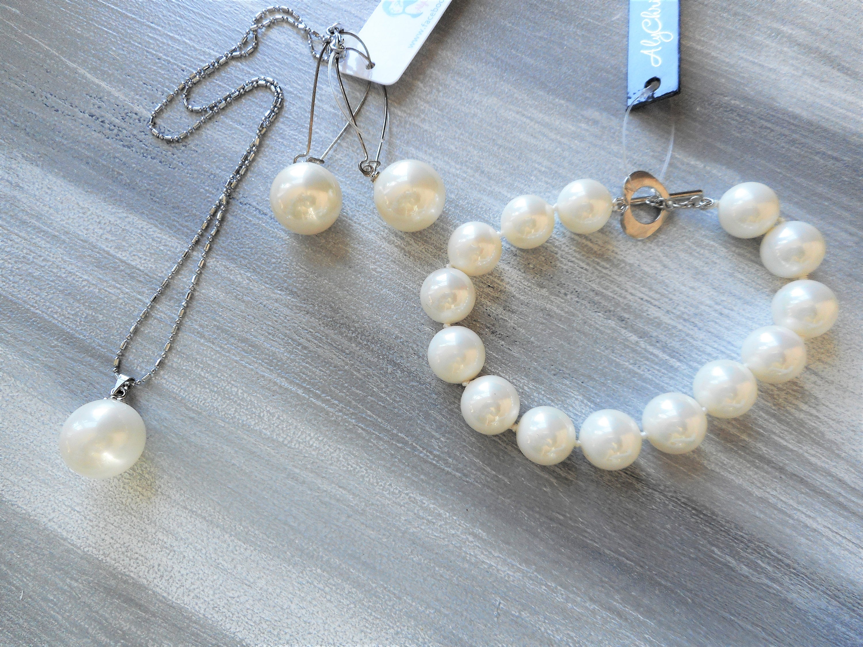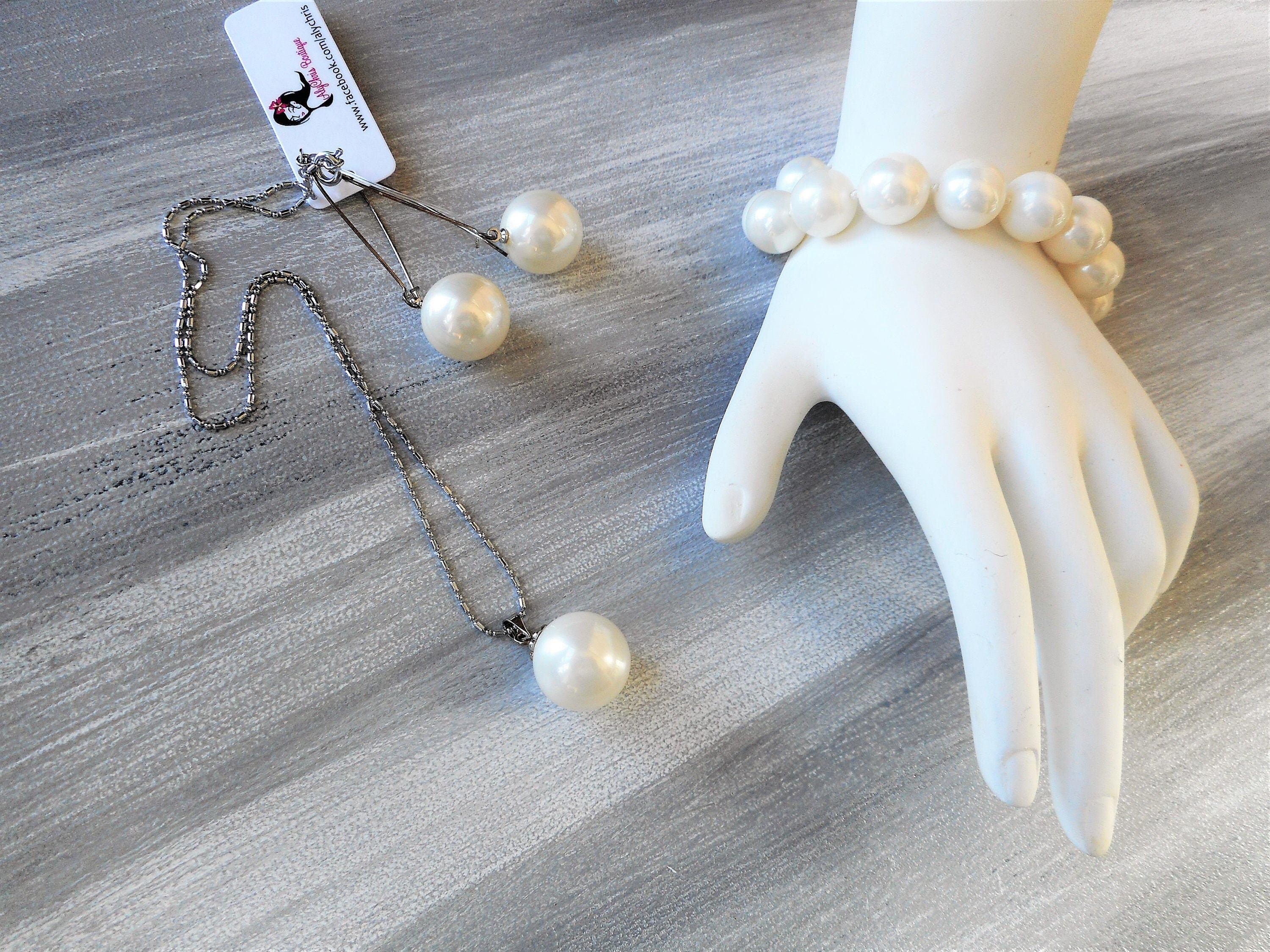 White Faux Pearl Pendant Necklace Set, Pearl Necklace, Bridal Jewelry, Prom Jewelry Set, Pearl Beaded Necklace, Sweet Sixteen Jewelry