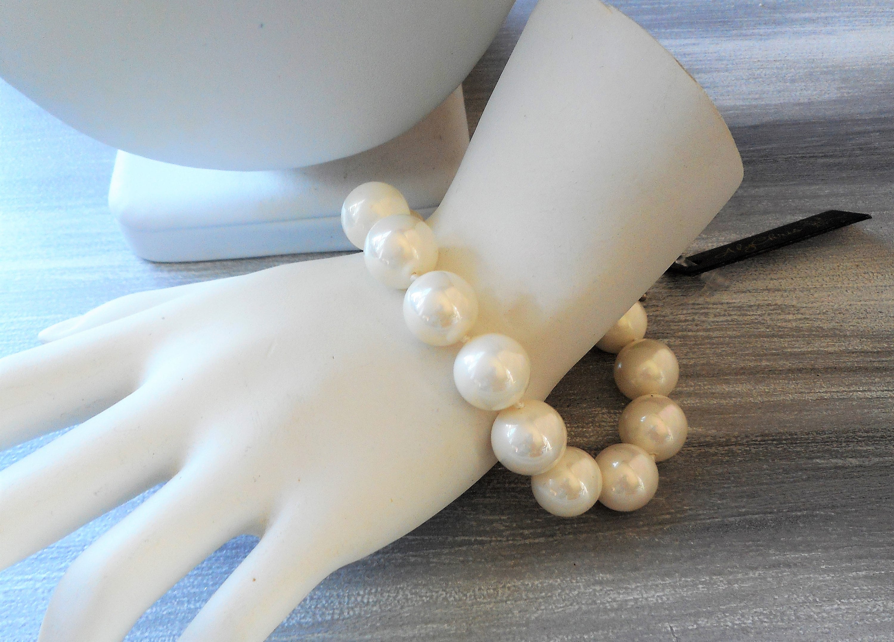 Bracelet: 7" 12mm white faux pearl beads with toggle clasp closure