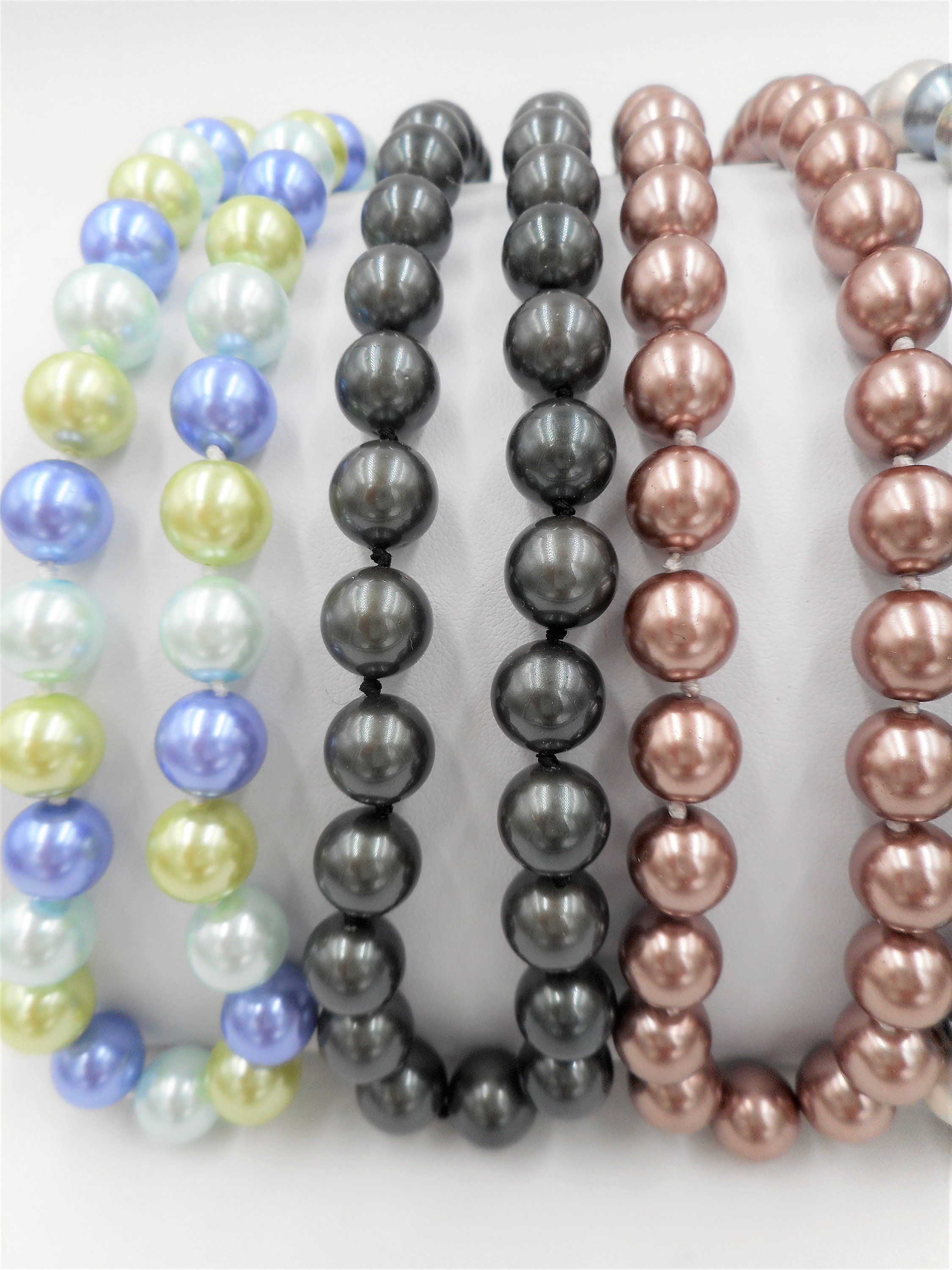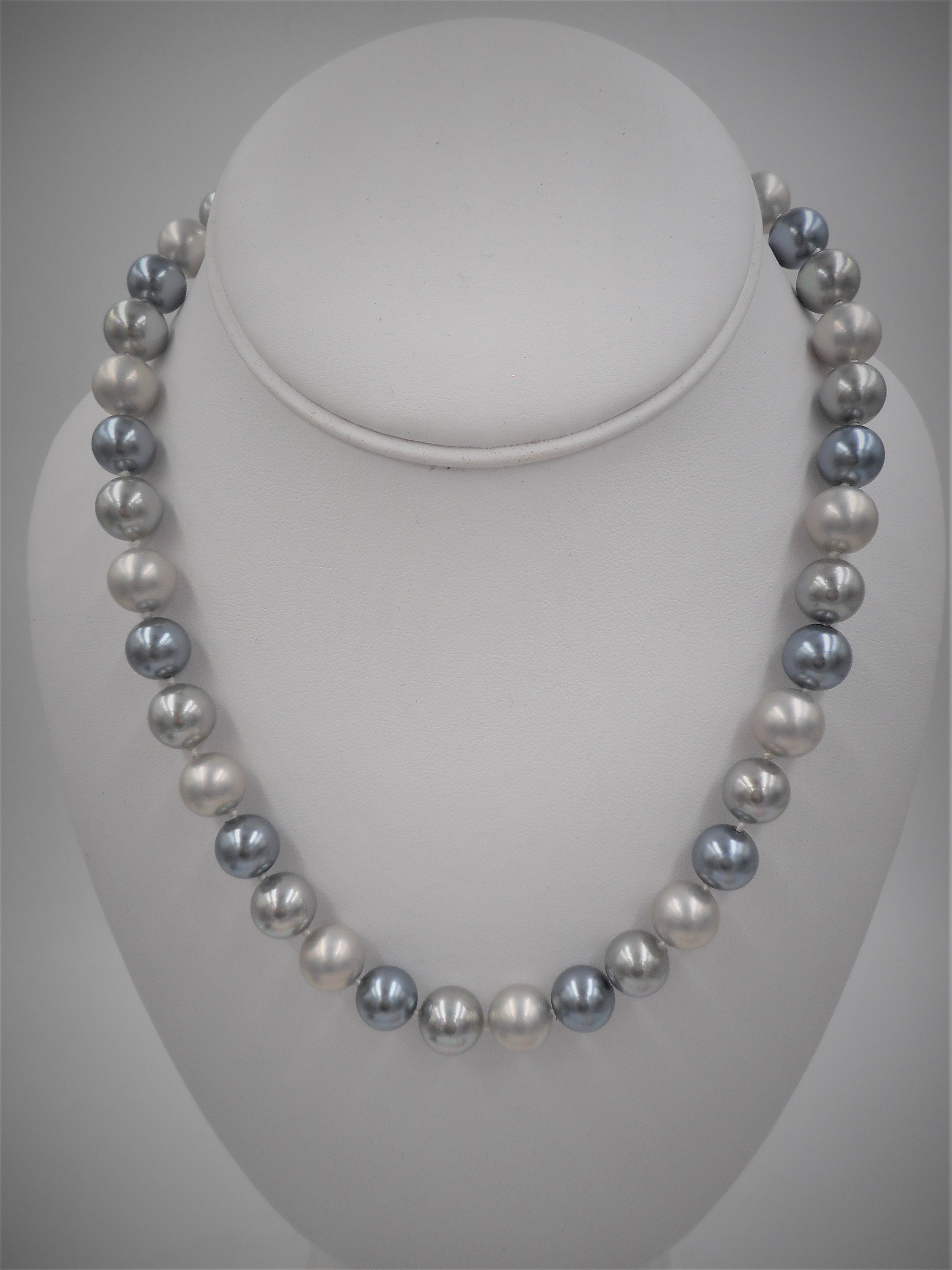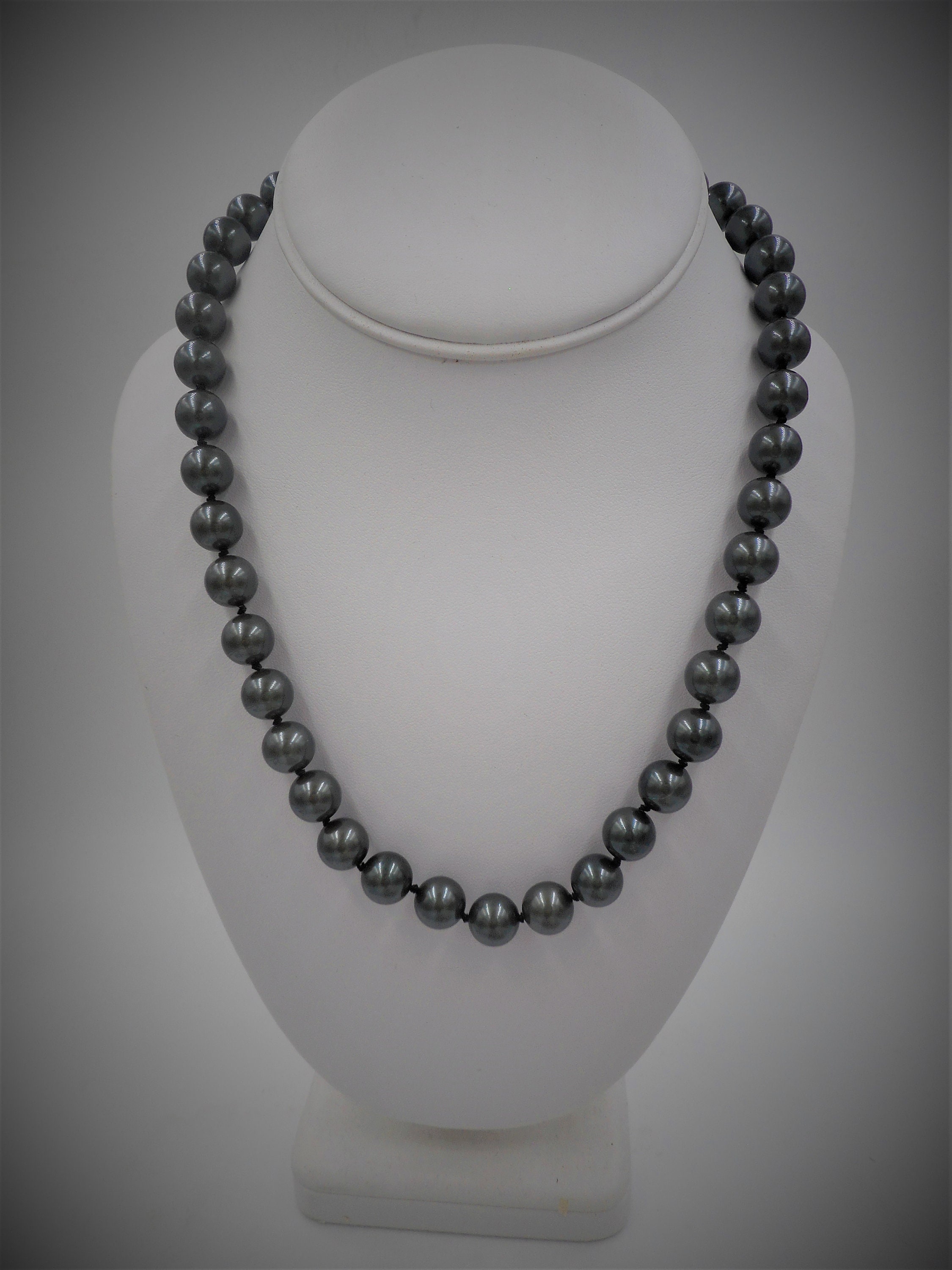 16"L 10mm Light Grey, Medium Grey and Dark Grey Beaded Necklace with Spring Ring Closure