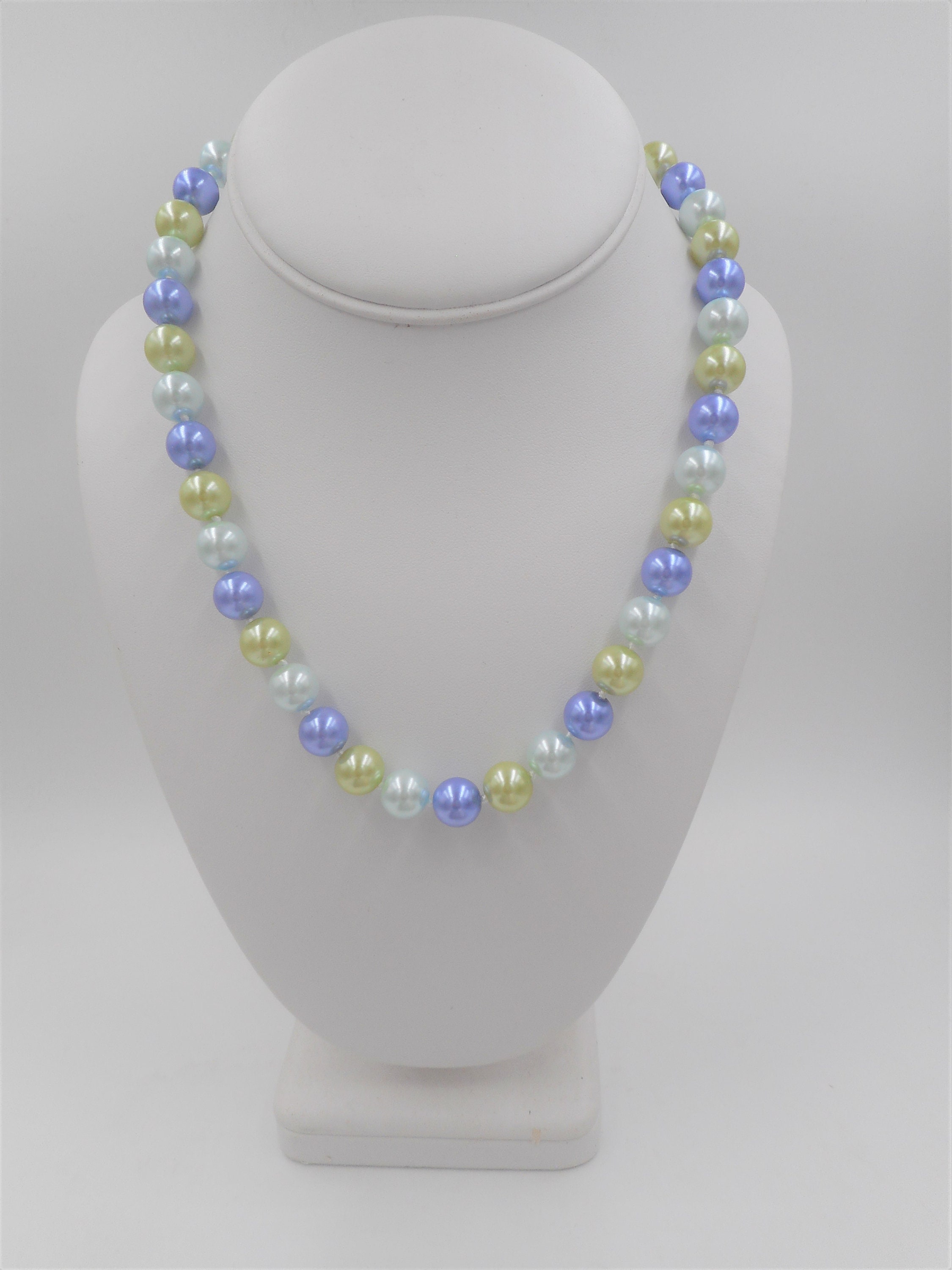 16"L 10mm Blue, Lime & Mint Beaded Necklace