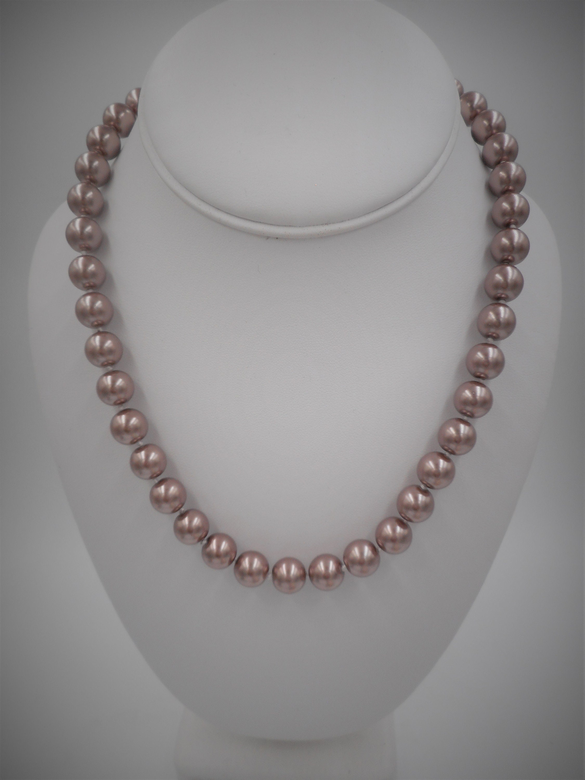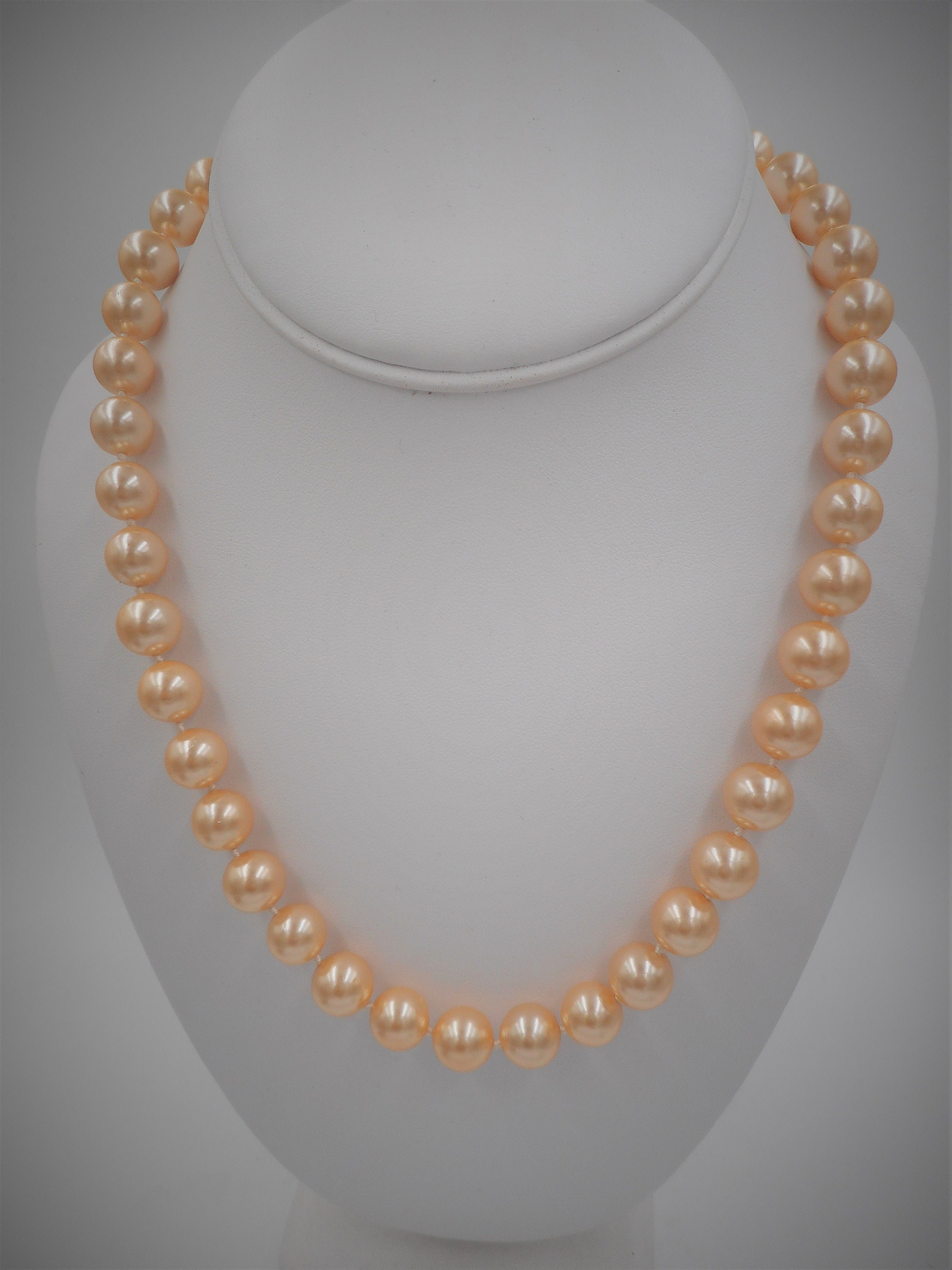 16"L 10mm Champagne Beaded Necklace with Spring Ring Closure