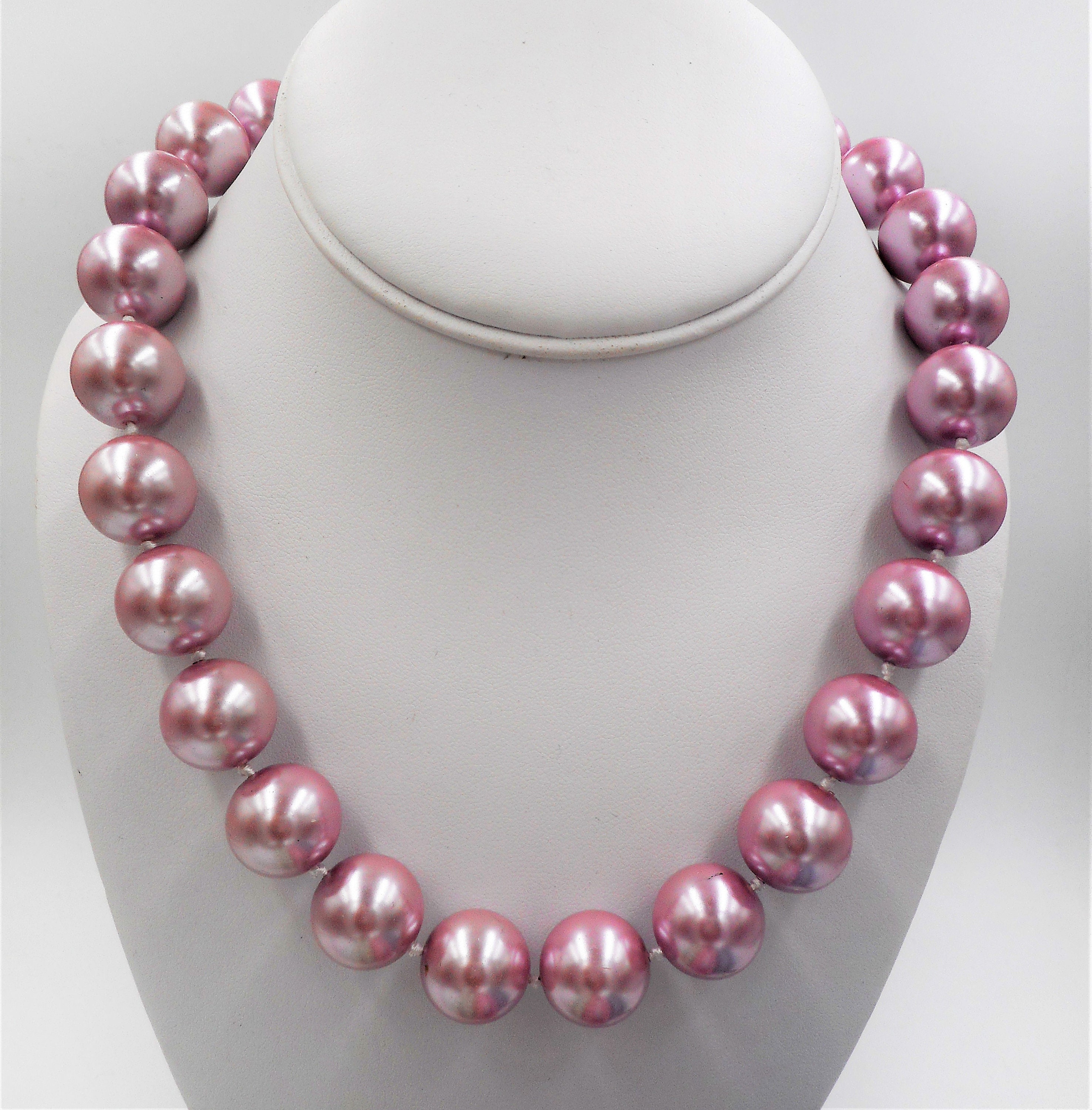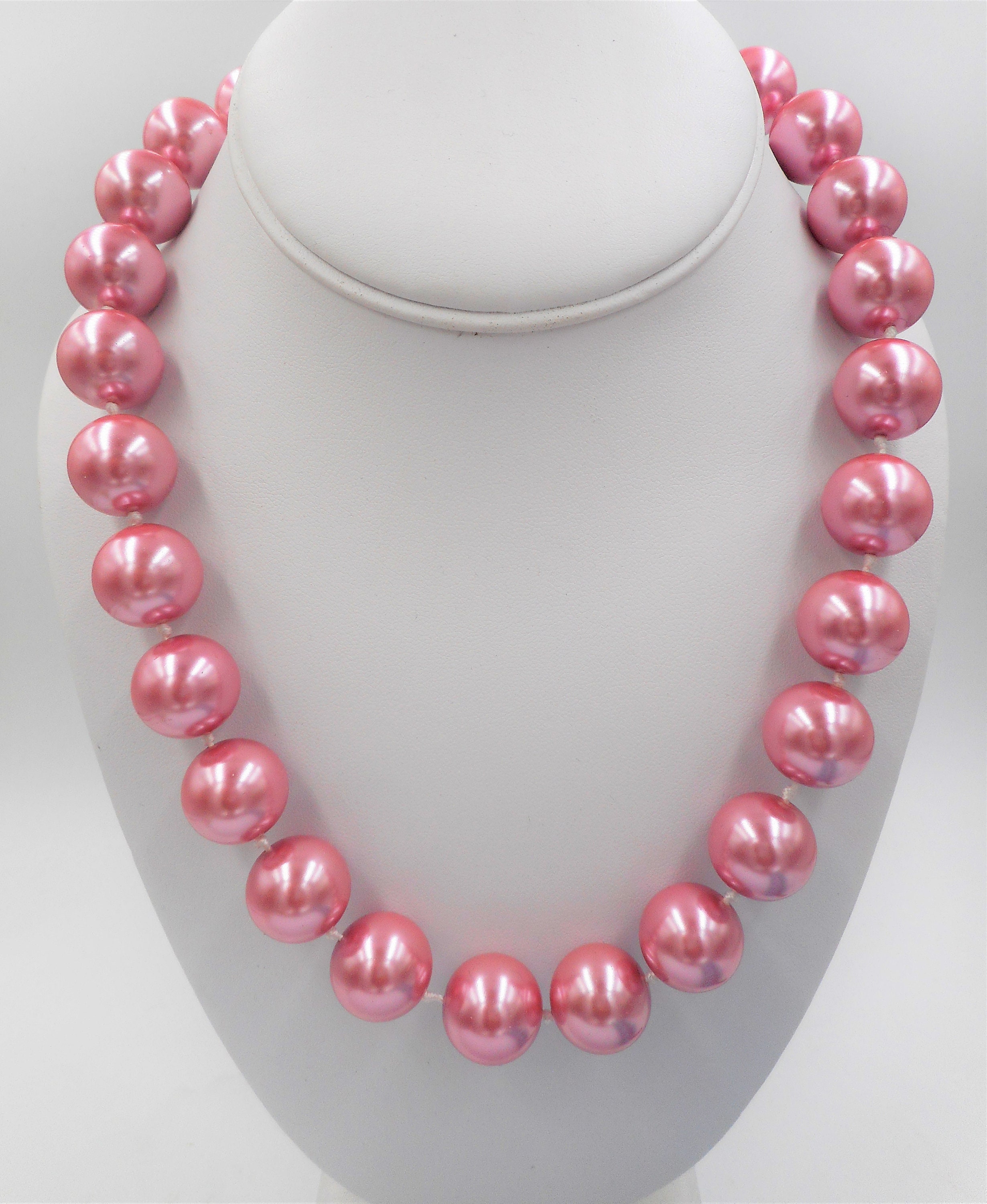 18"L 16mm Rose Pink Beaded Necklace with spring ring closure