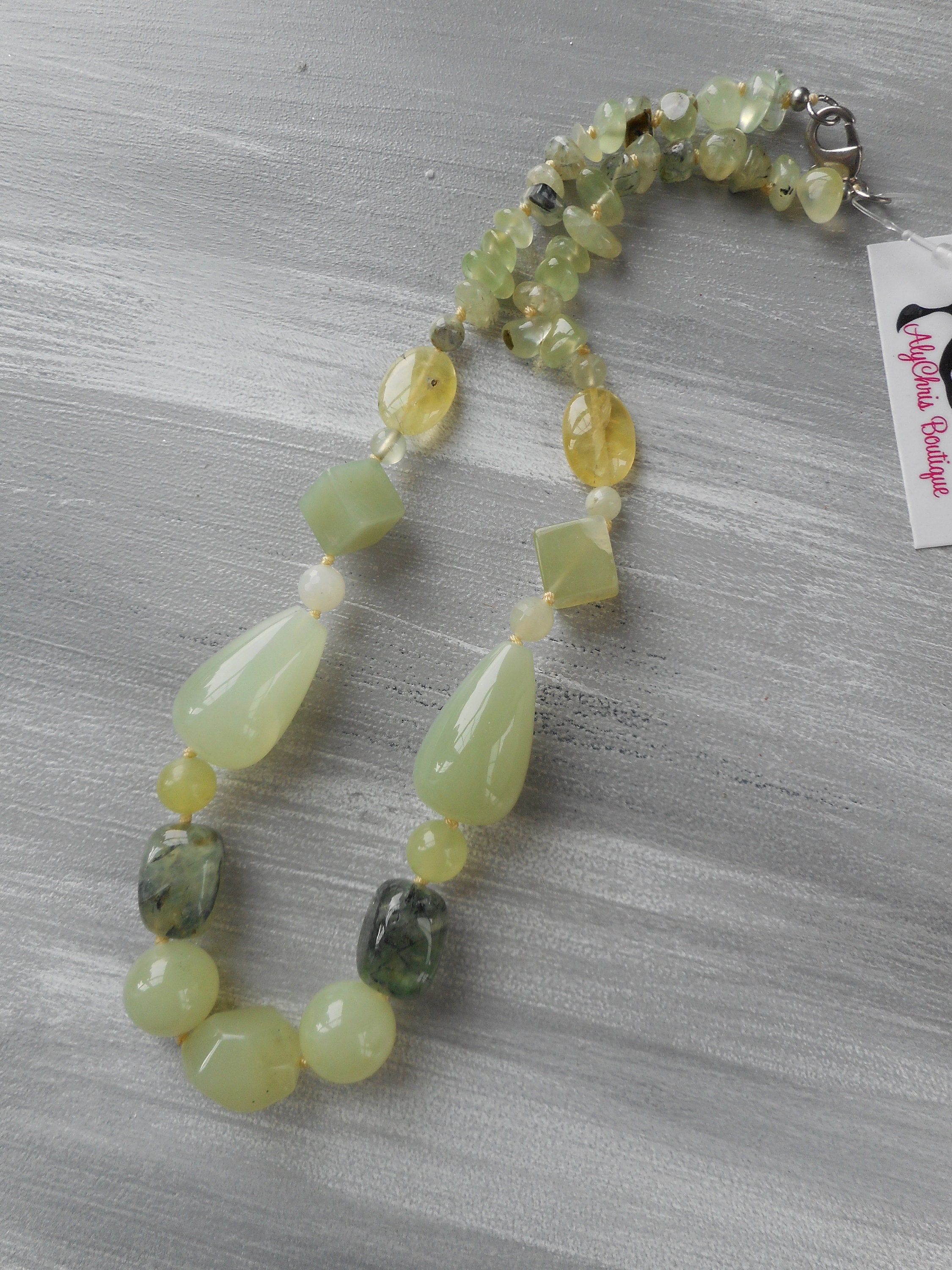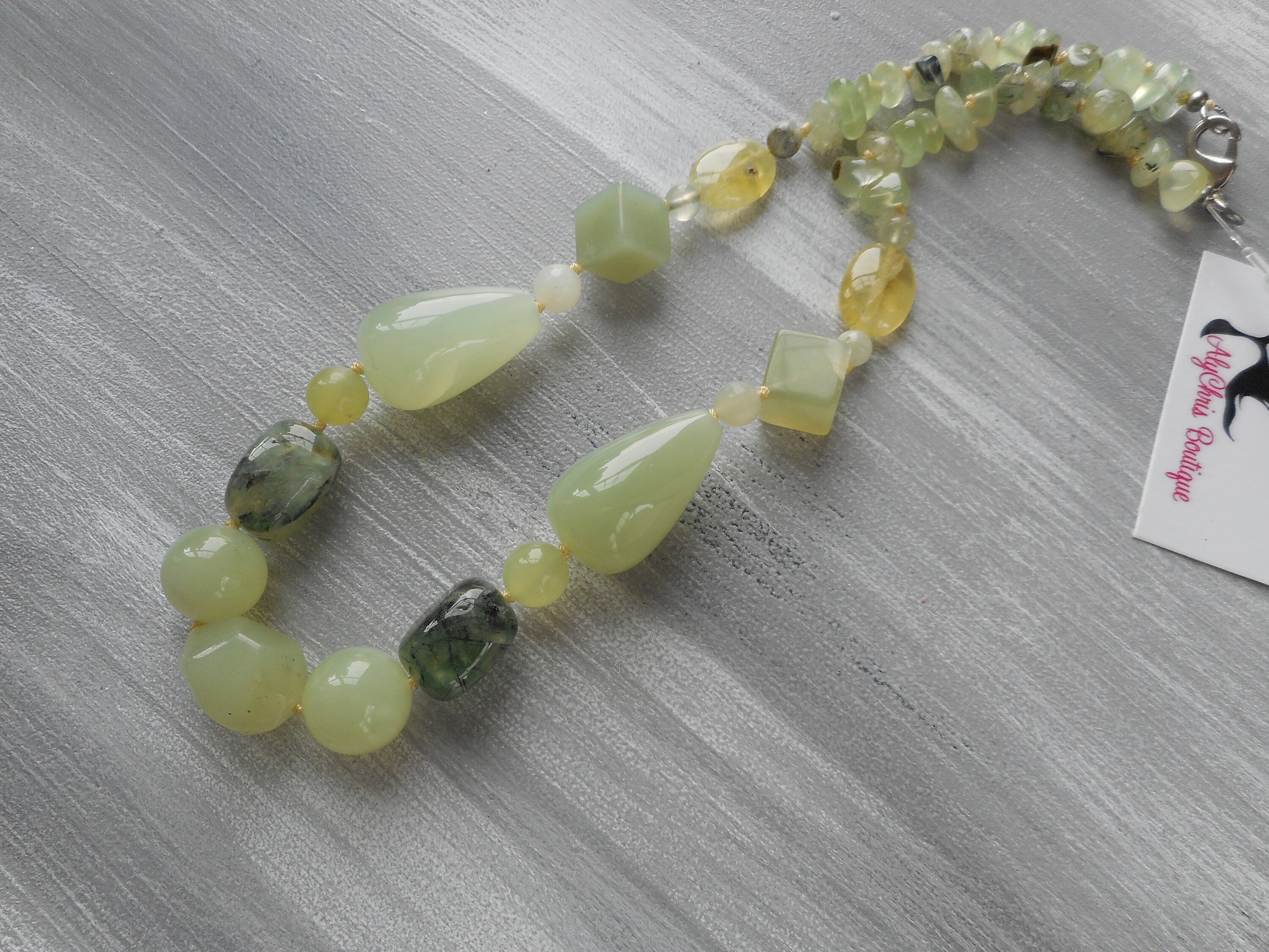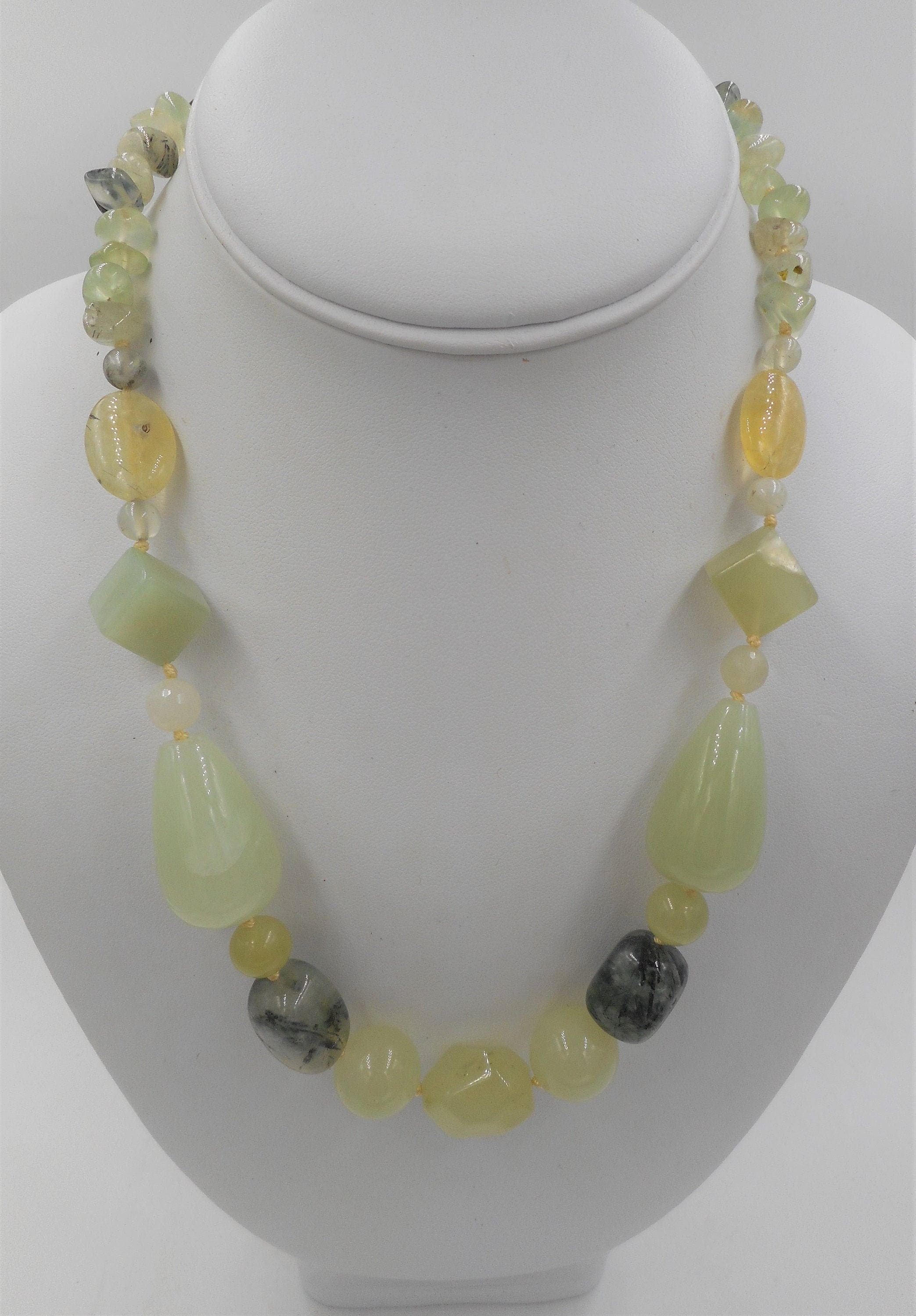 Prehnite Statement Necklace, Necklace, Prehnite Jewelry, Gemstone Necklace, Prehnite Jade Beaded Necklace, Green Stone Necklace