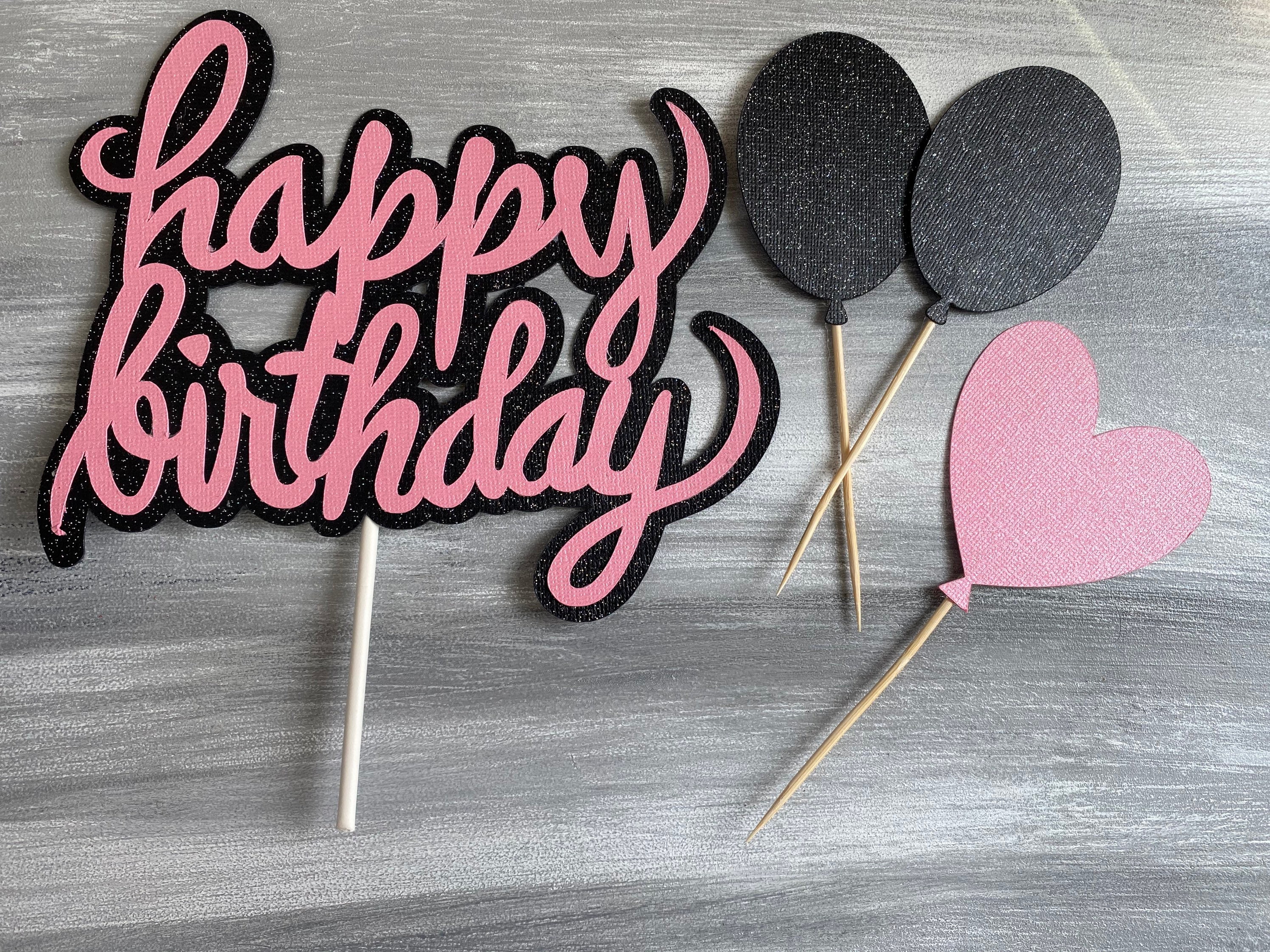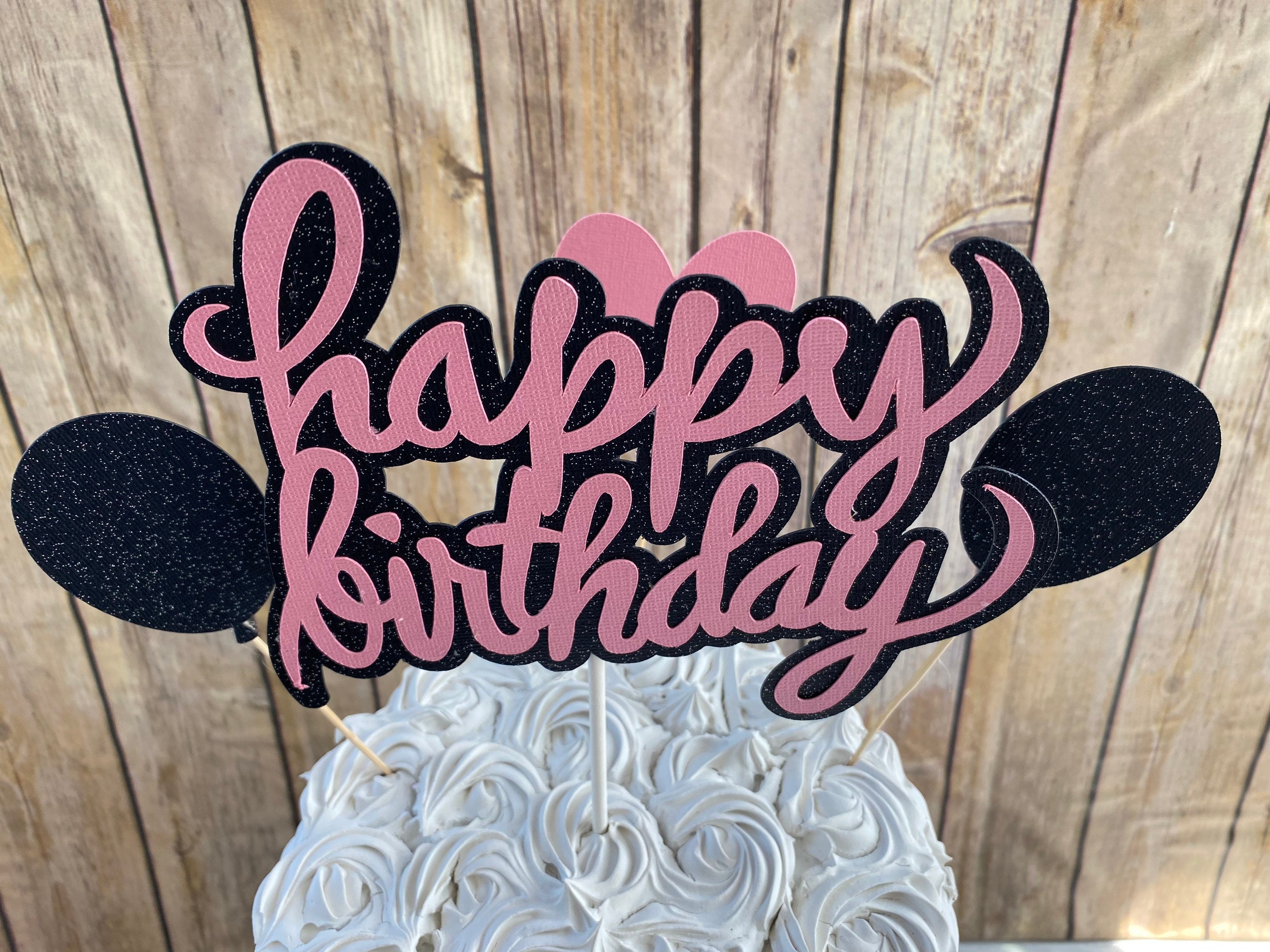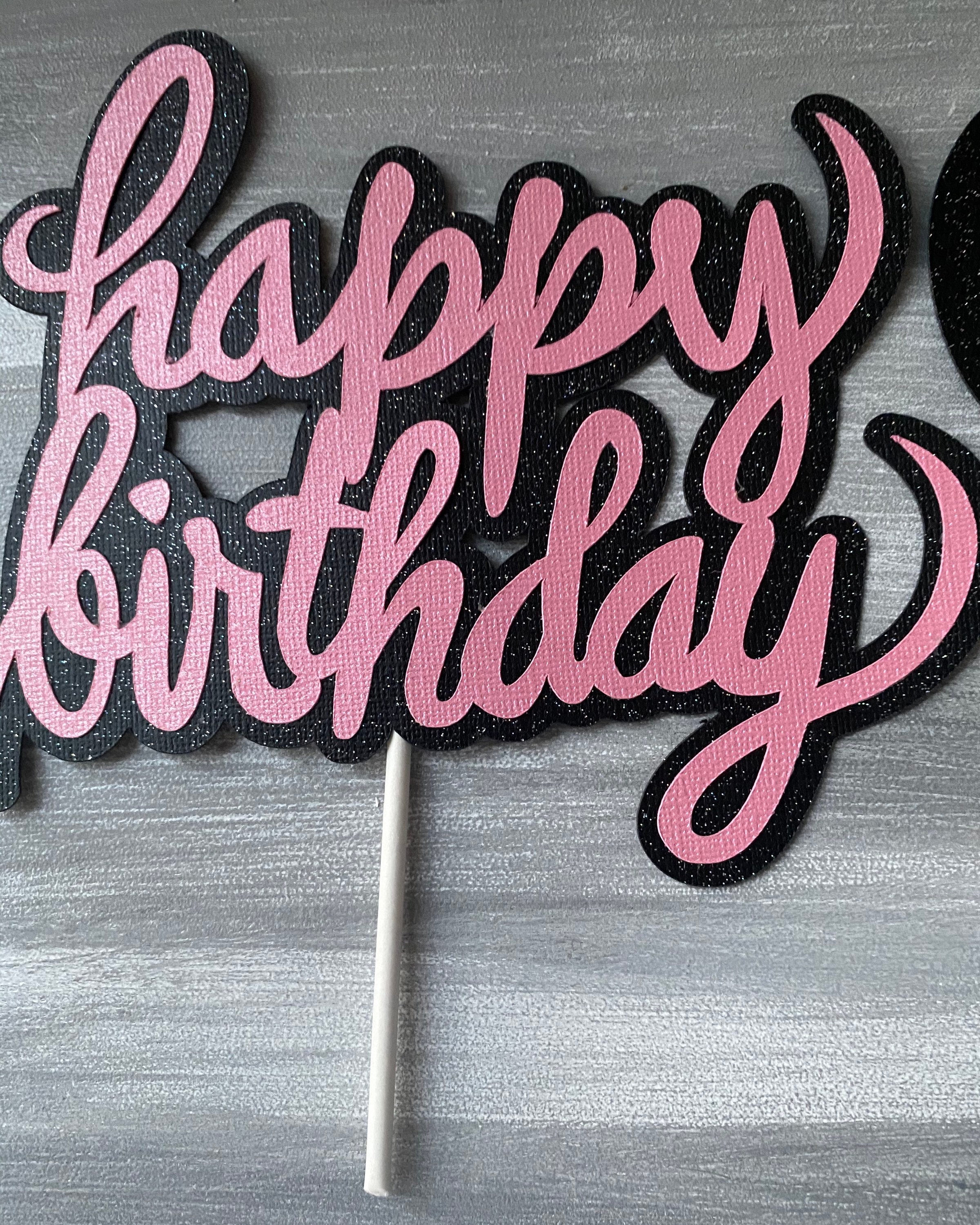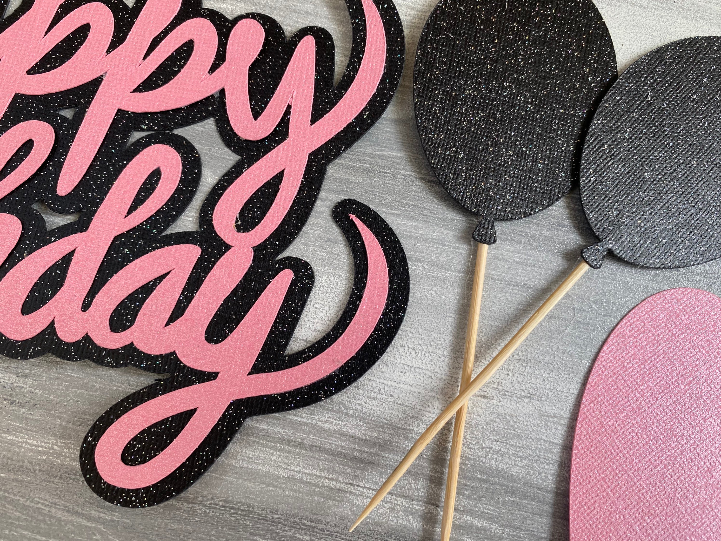 Happy Birthday Cake Topper, Pink and Black Cake Topper, Girl Birthday Cake Topper, Glitzy Cake Topper, Girl Cake Topper, Girl Birthday Decor