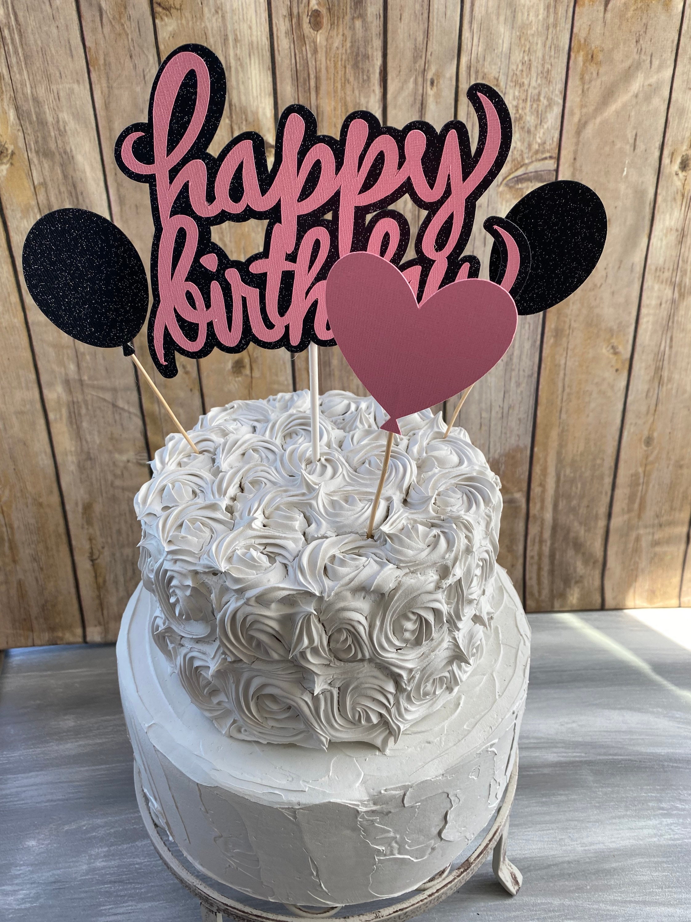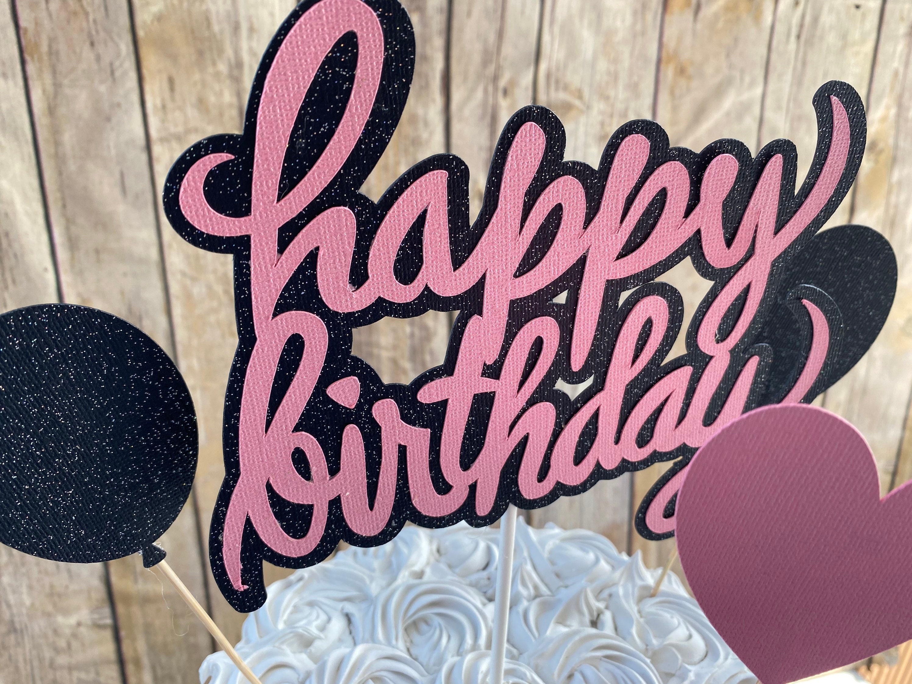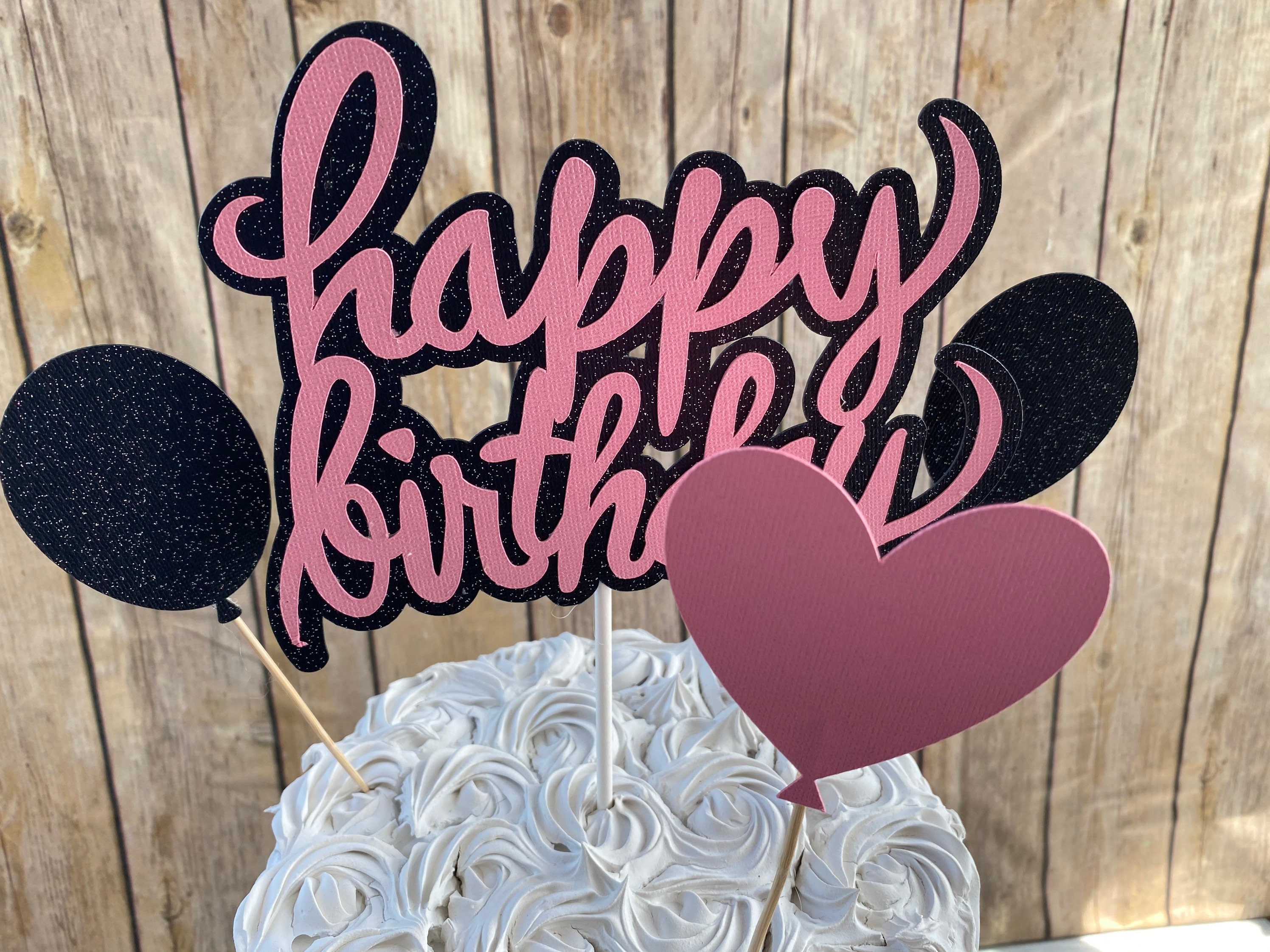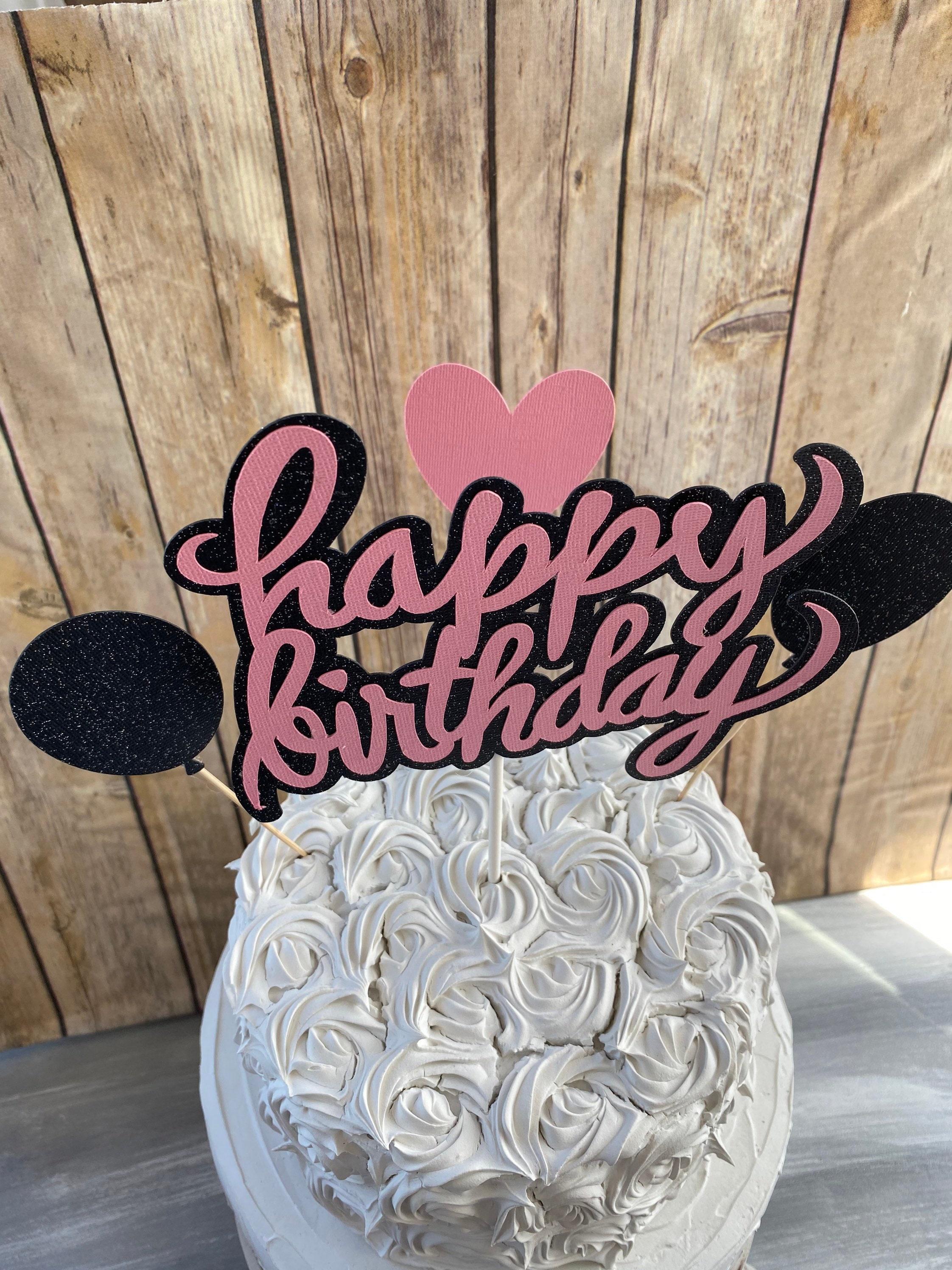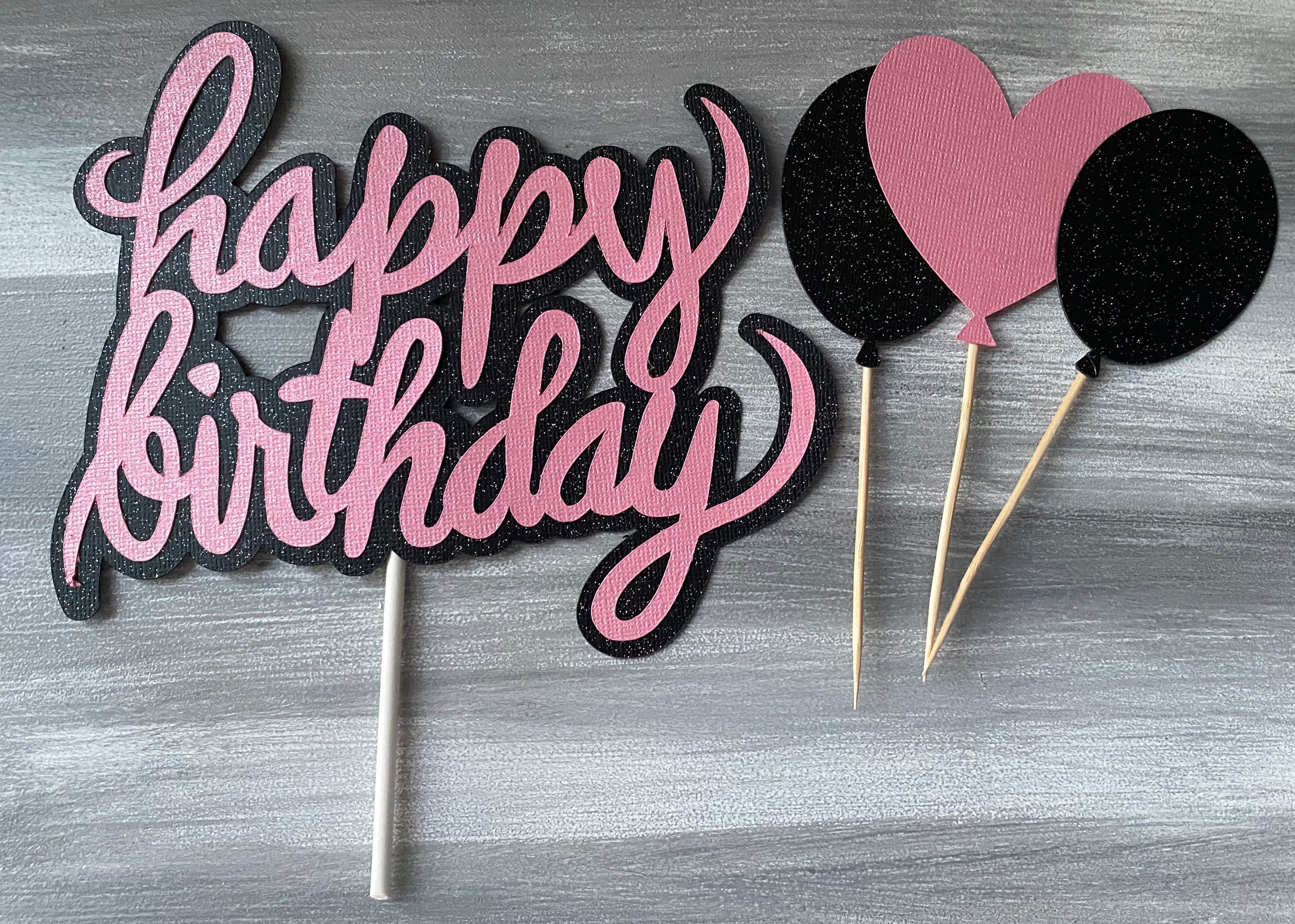 Happy Birthday Cake Topper, Pink and Black Cake Topper, Girl Birthday Cake Topper, Glitzy Cake Topper, Girl Cake Topper, Girl Birthday Decor