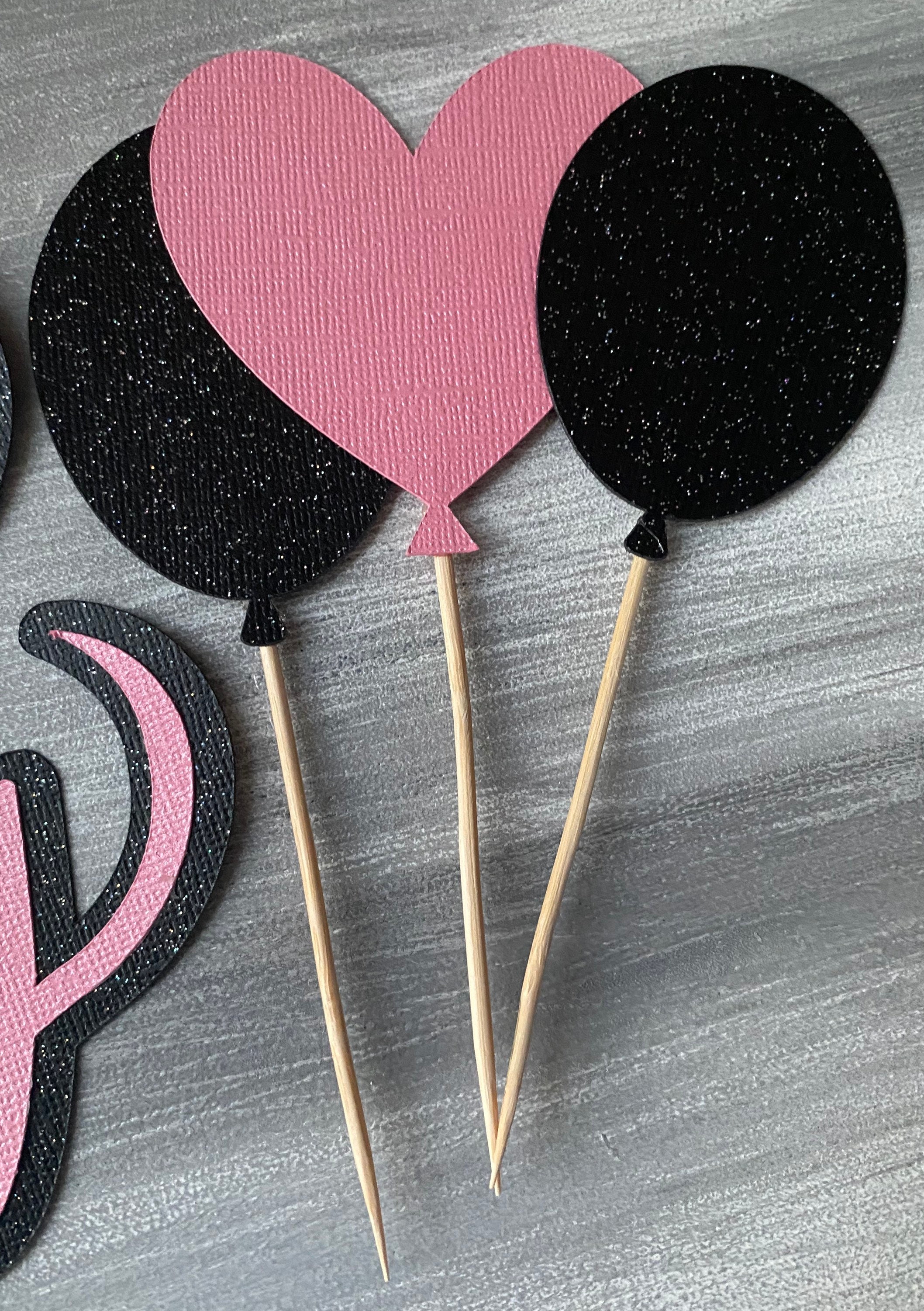 2-Black Balloons & 1- Pink Heart Balloon pick