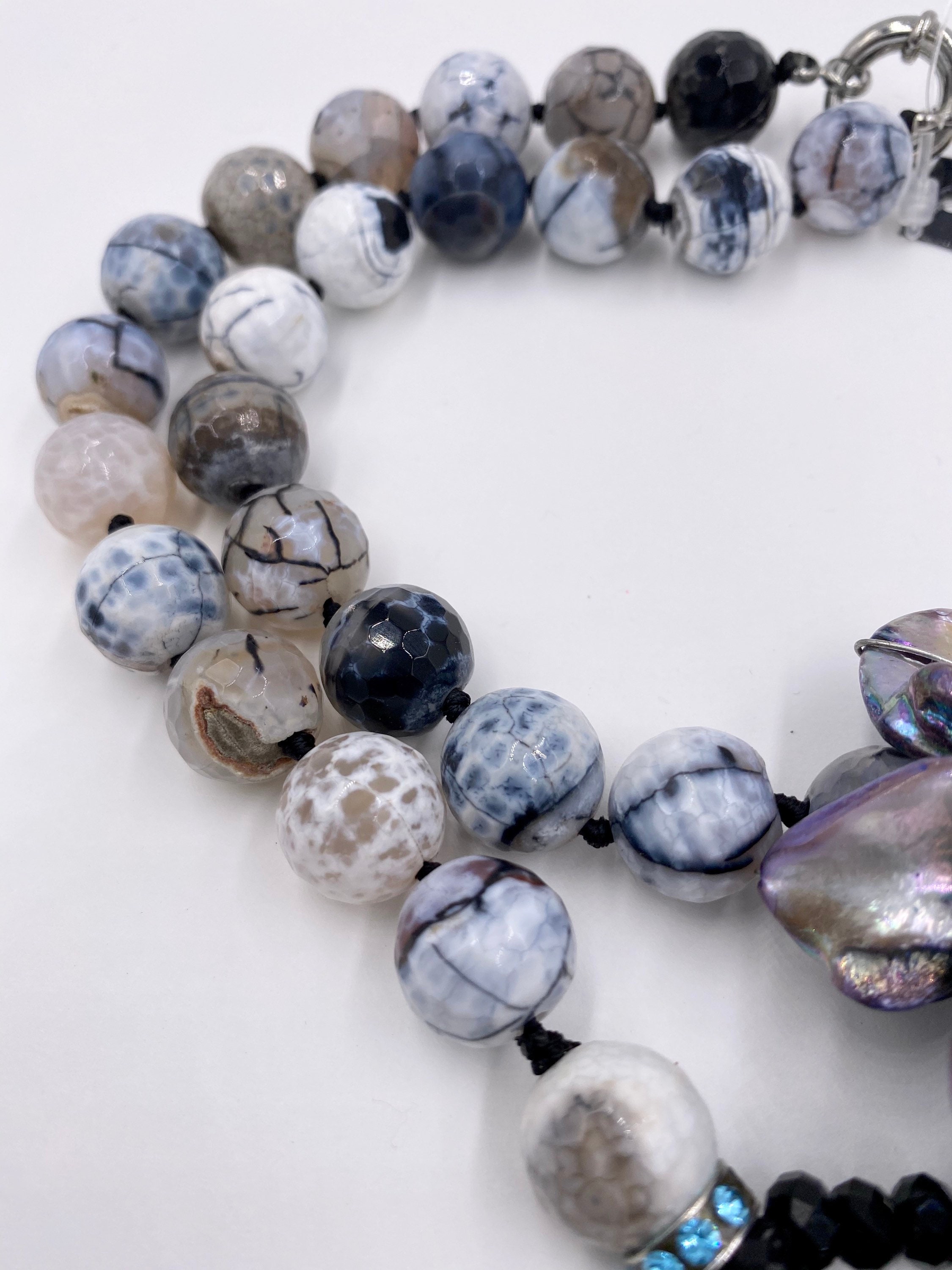 Agate & Mother of Pearl Beaded Multi Strand Necklace, Layered Necklace, Boho necklace, Chunky necklace, Long necklace, Crystal Necklace