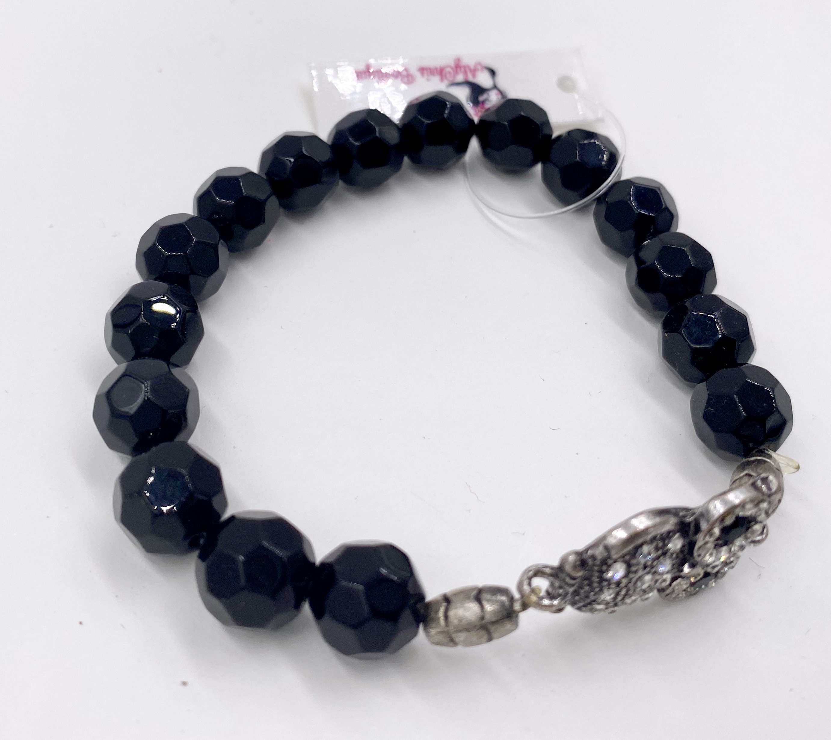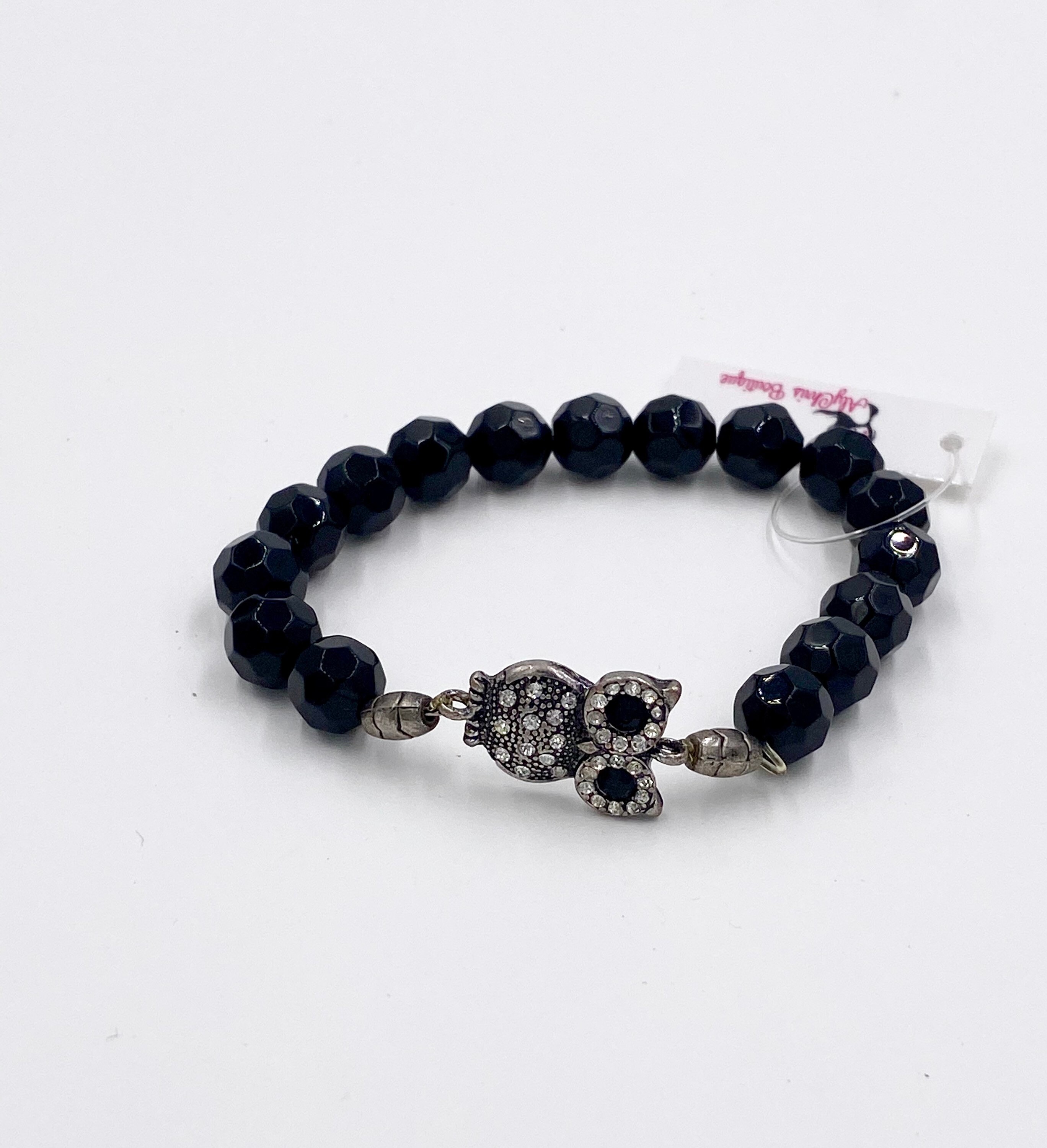 6 1/2" Owl Charm Black Onyx stretch bracelet