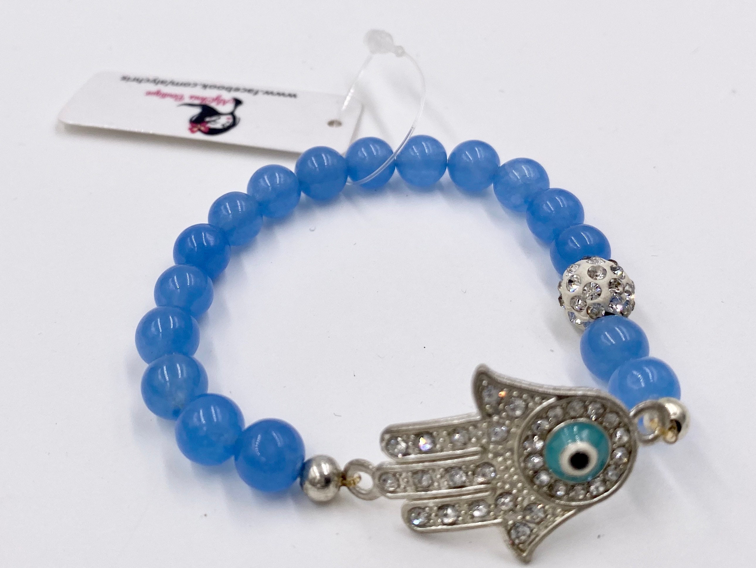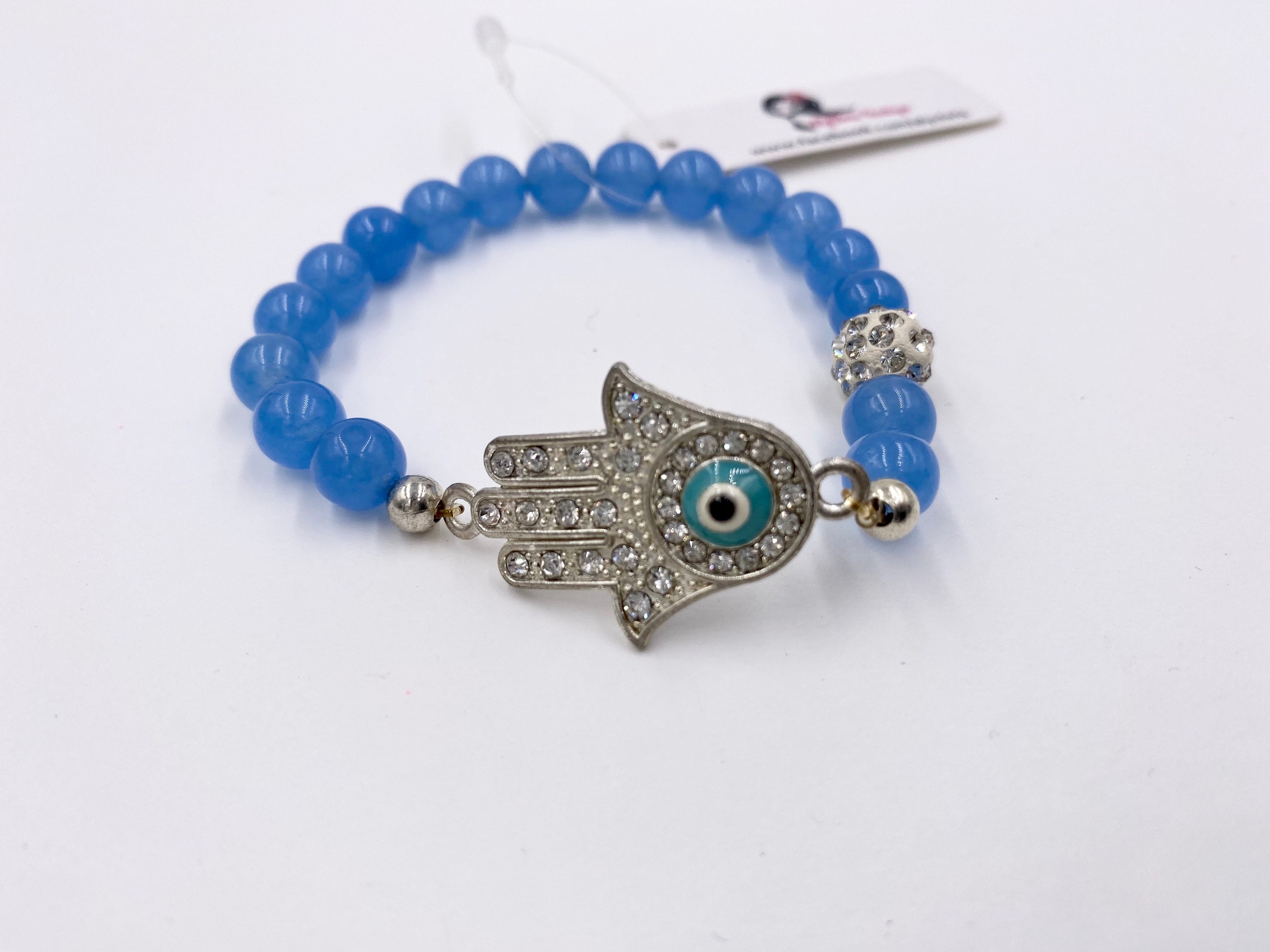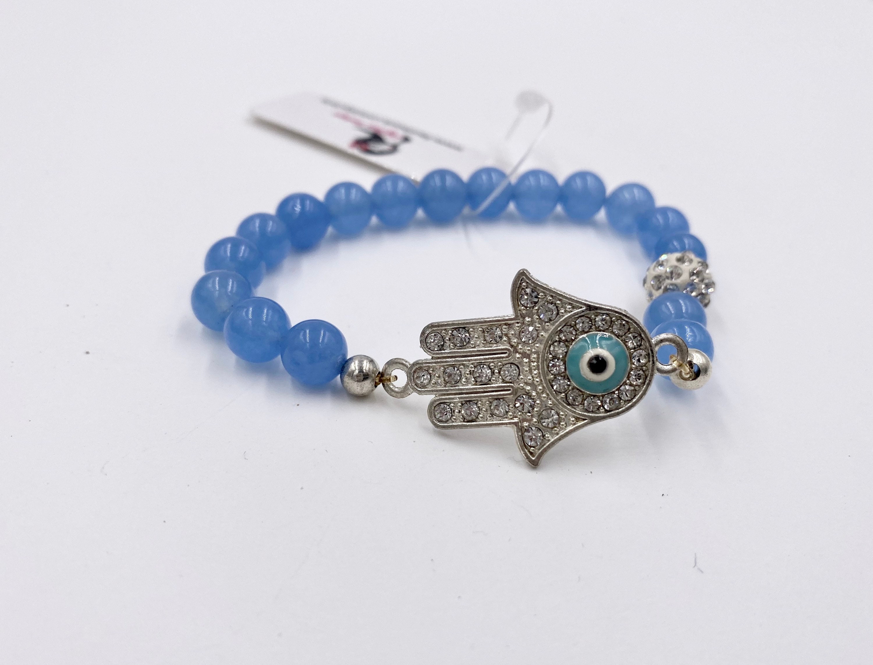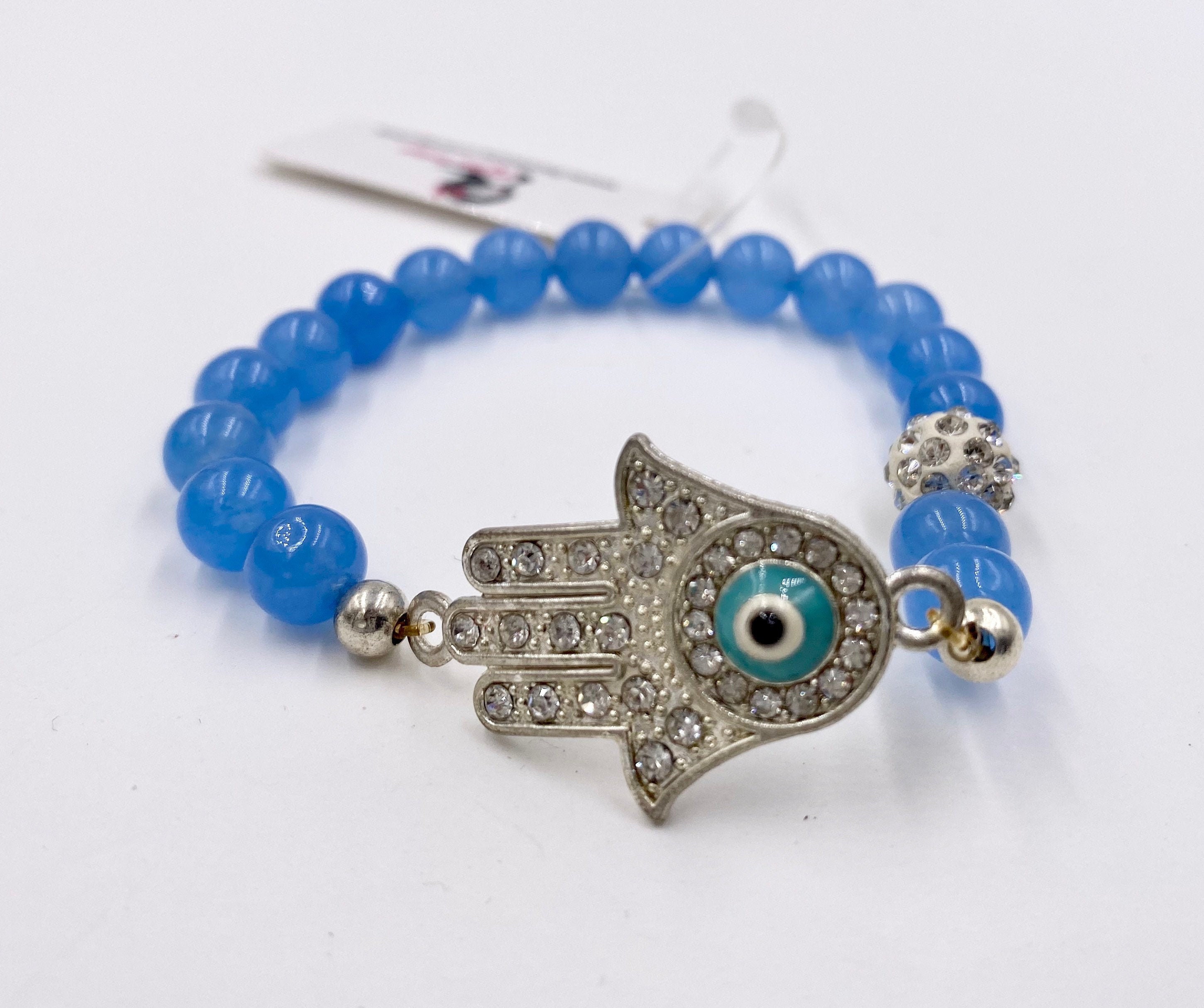 Rhinestone Hamsa Evil Eye Charm Hand of Fatima Stretch Bracelet