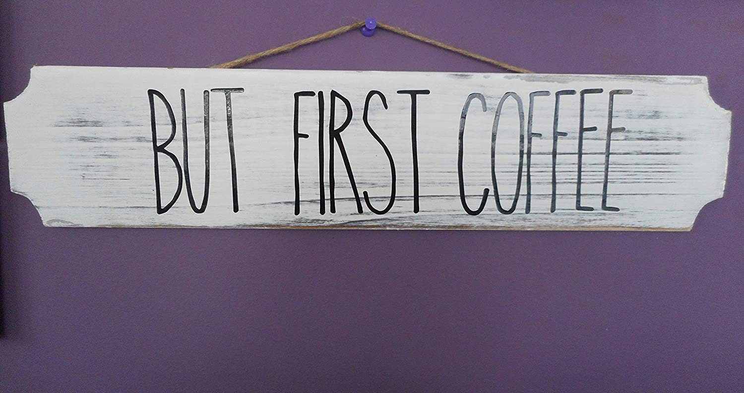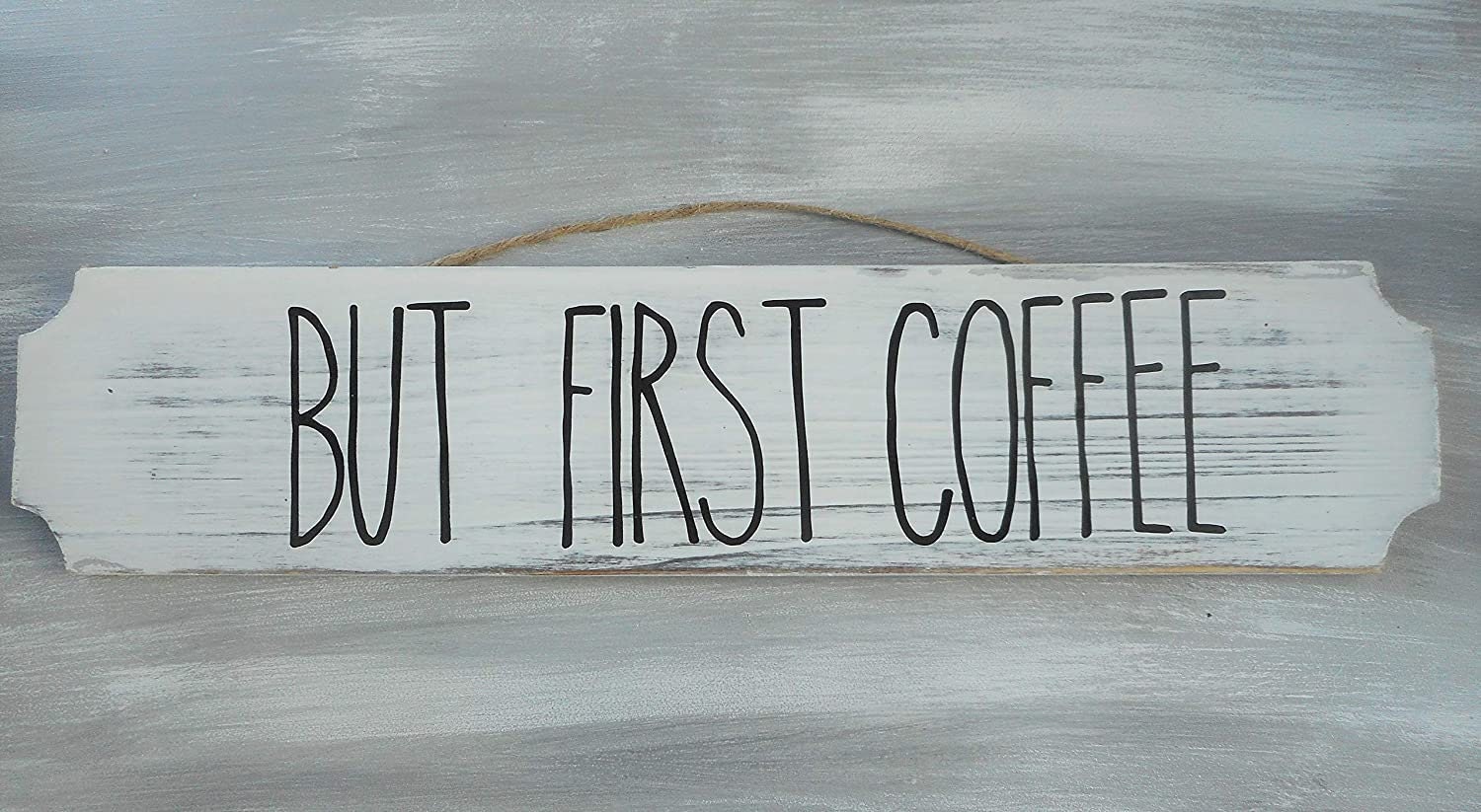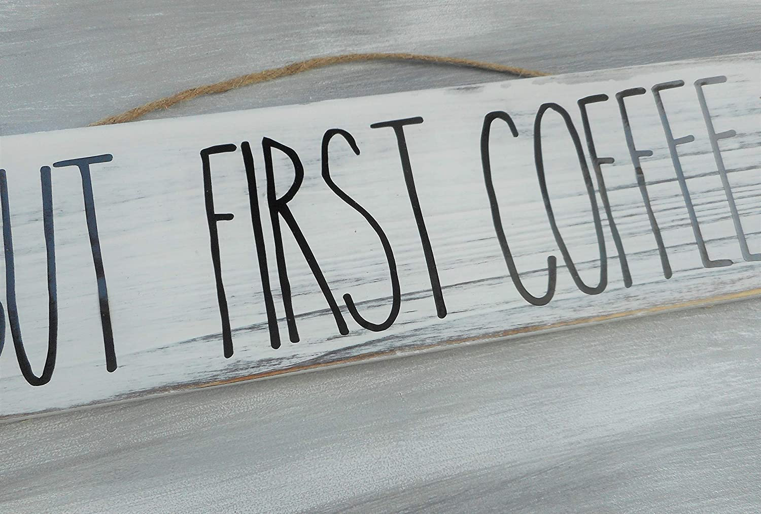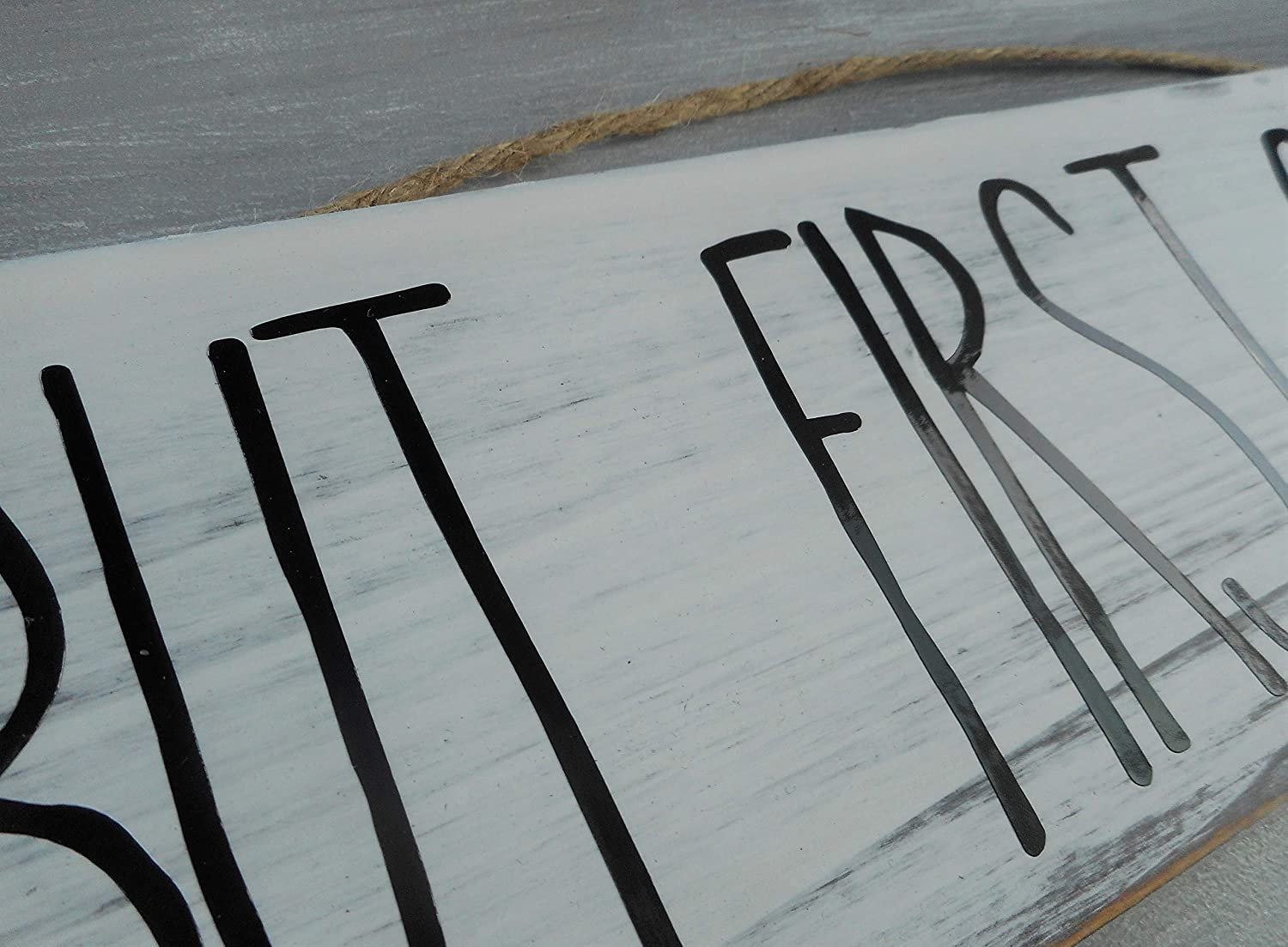 But First Coffee Wood Sign, Coffee Station Kitchen Farmhouse Style Decor, Whitewashed Rustic Wood Sign, Coffee Sign, Cafe Decor